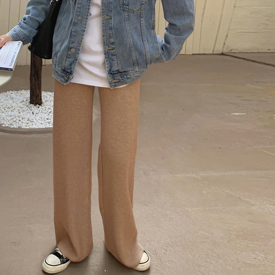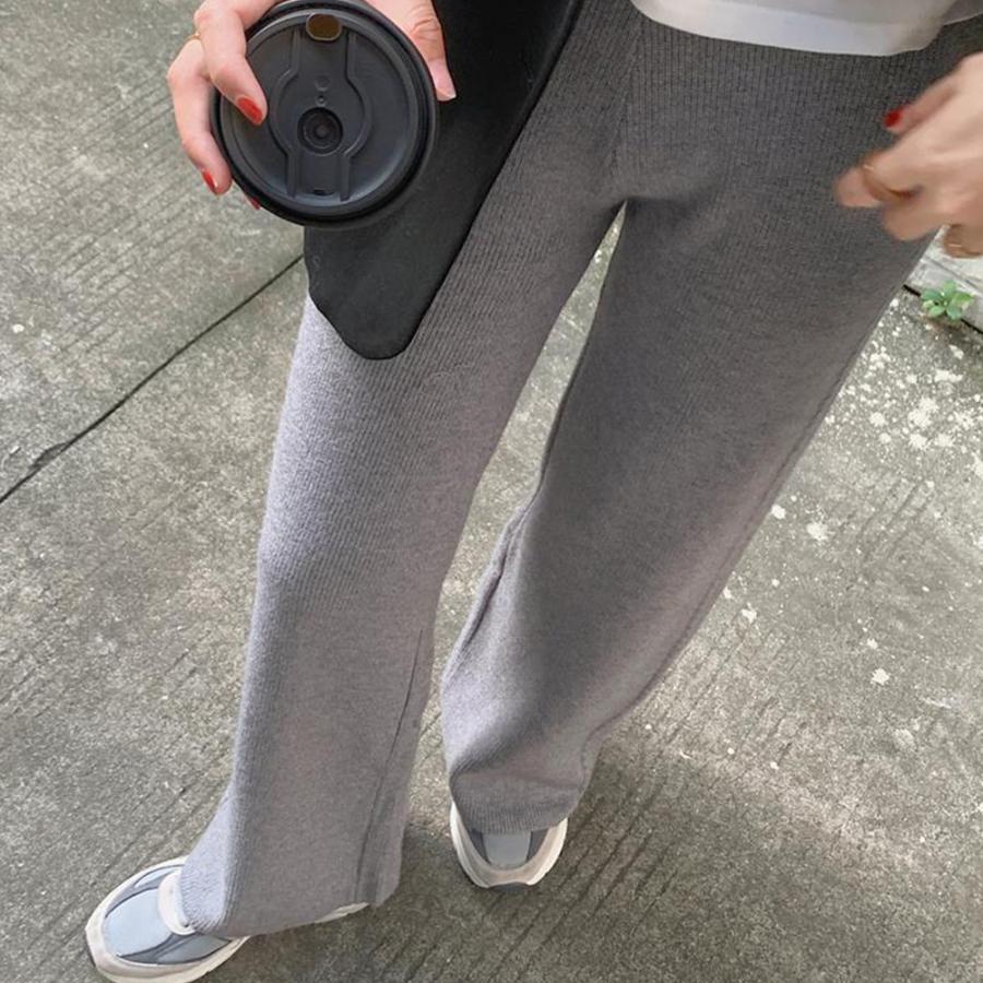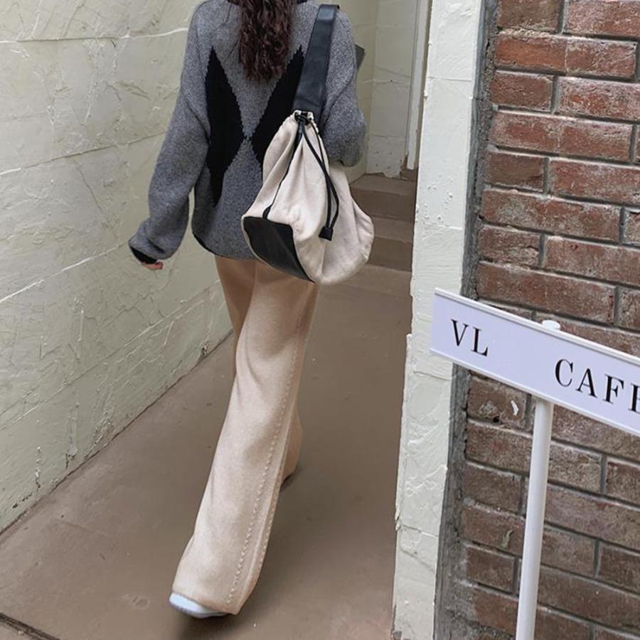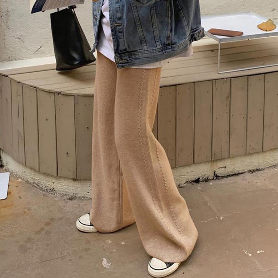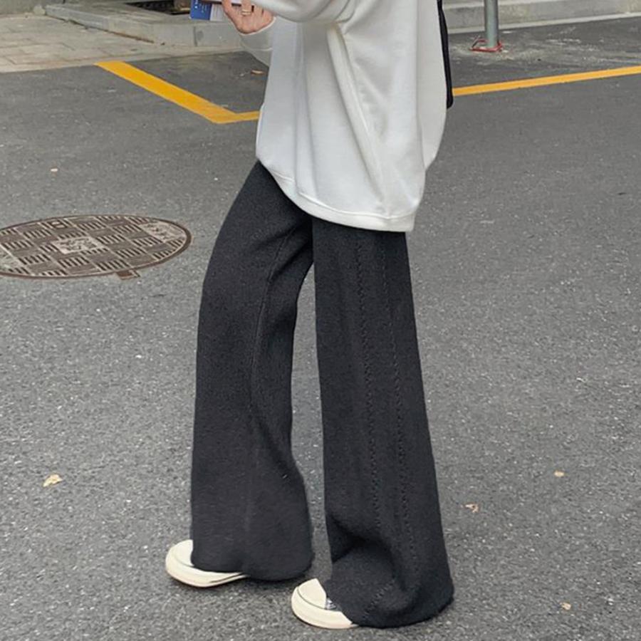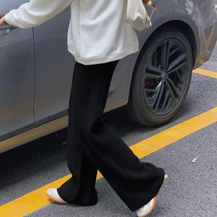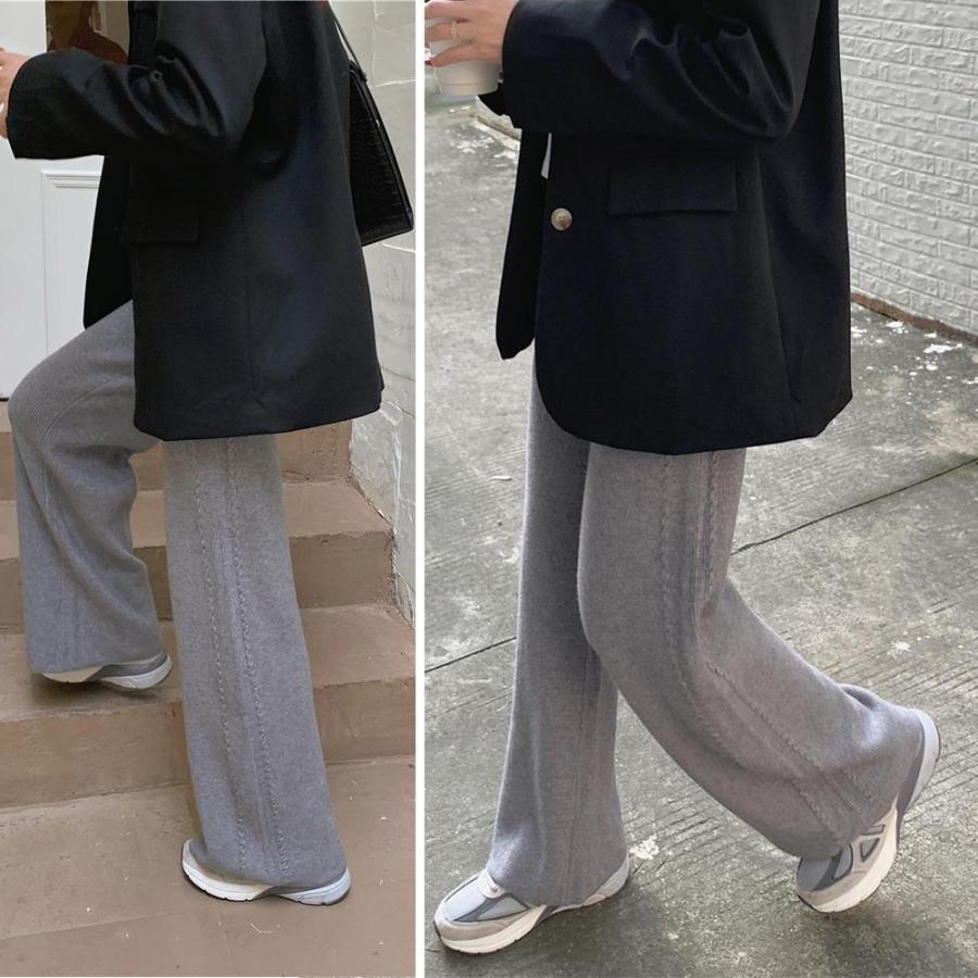サイドに施した表情豊かなケーブル編みが目を惹くニットワイドパンツ