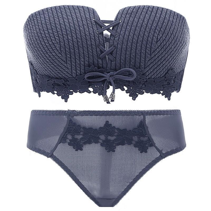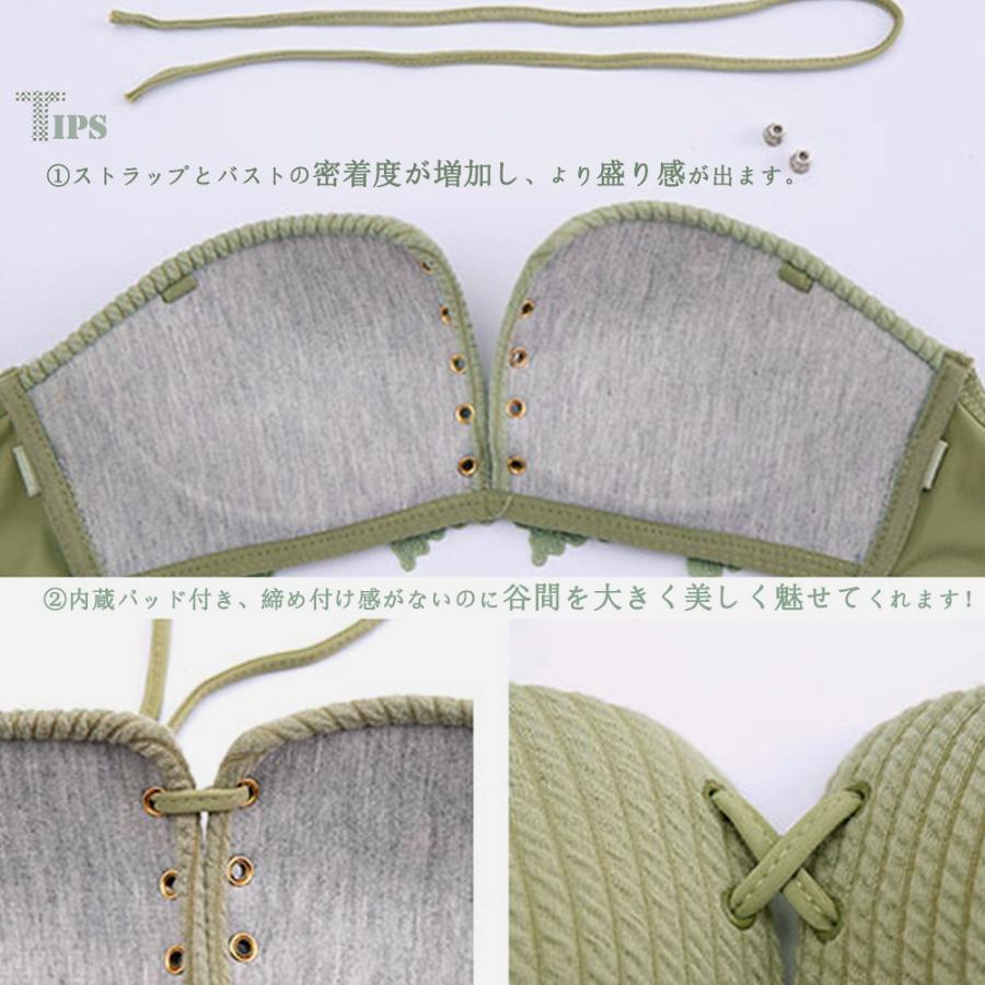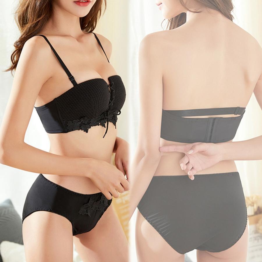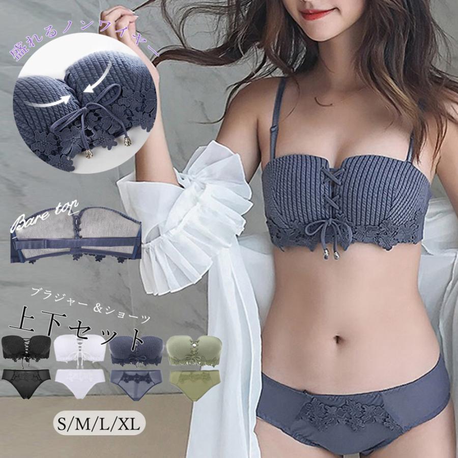 盛れる ブラトップ ベアトップ チューブトップ セクシーランジェリー 下着セット 大人韓国 レースアップ ブラセット安い