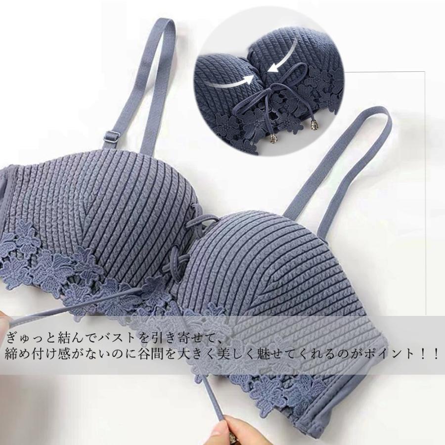 ブラジャーはレースアップ仕様、ぎゅっと結んでバストを引き寄せて、さらにノンワイヤー