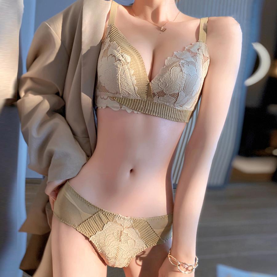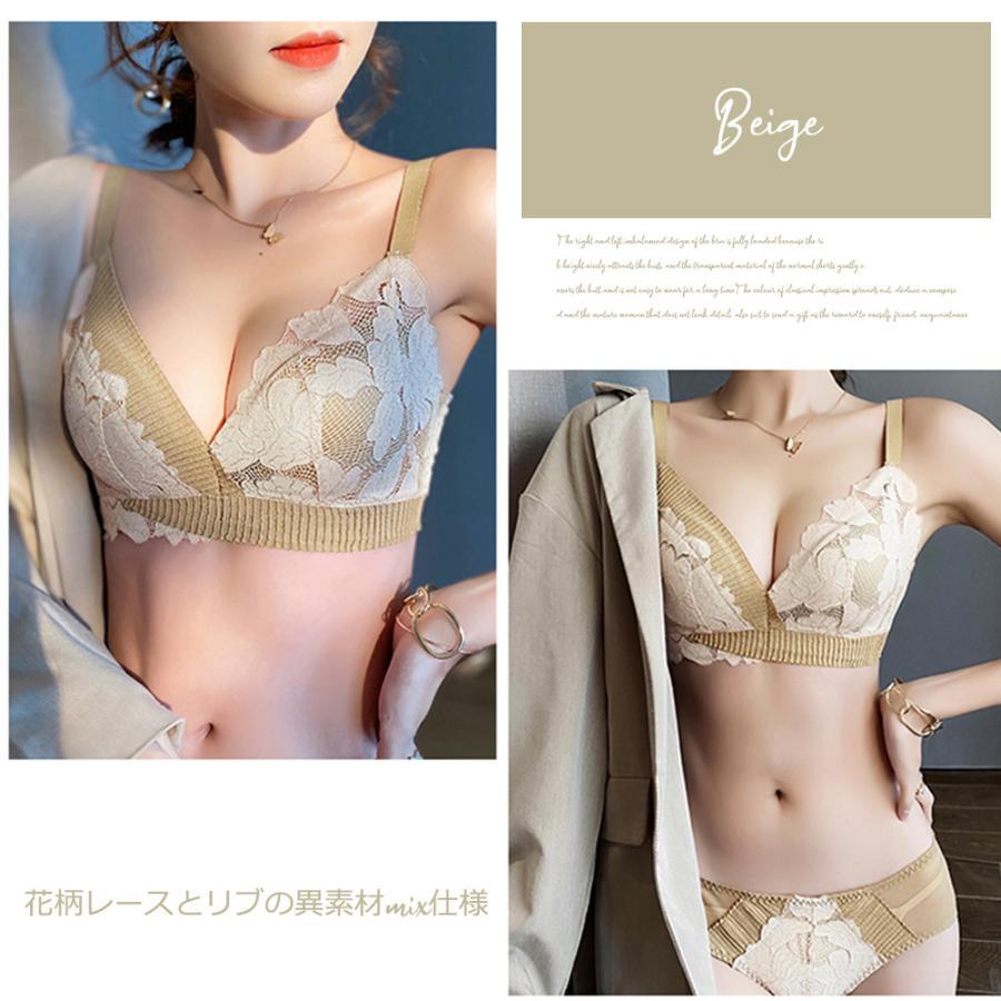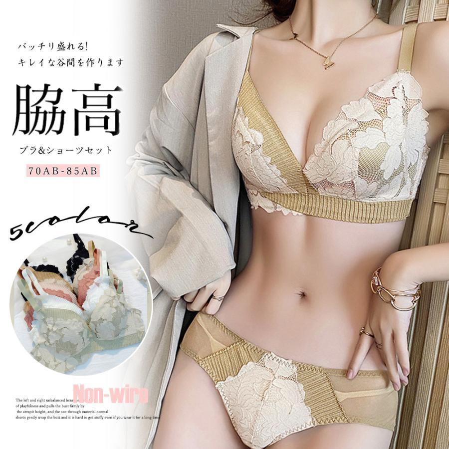 レディース ノンワイヤーレースブラ ショーツ セット 脇高ブラ 盛れる 谷間 ブラジャー らくちん ショーツ 透け透け