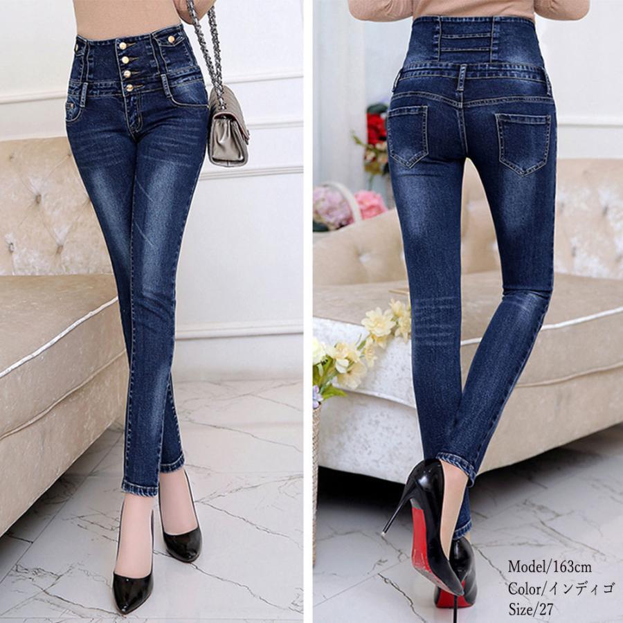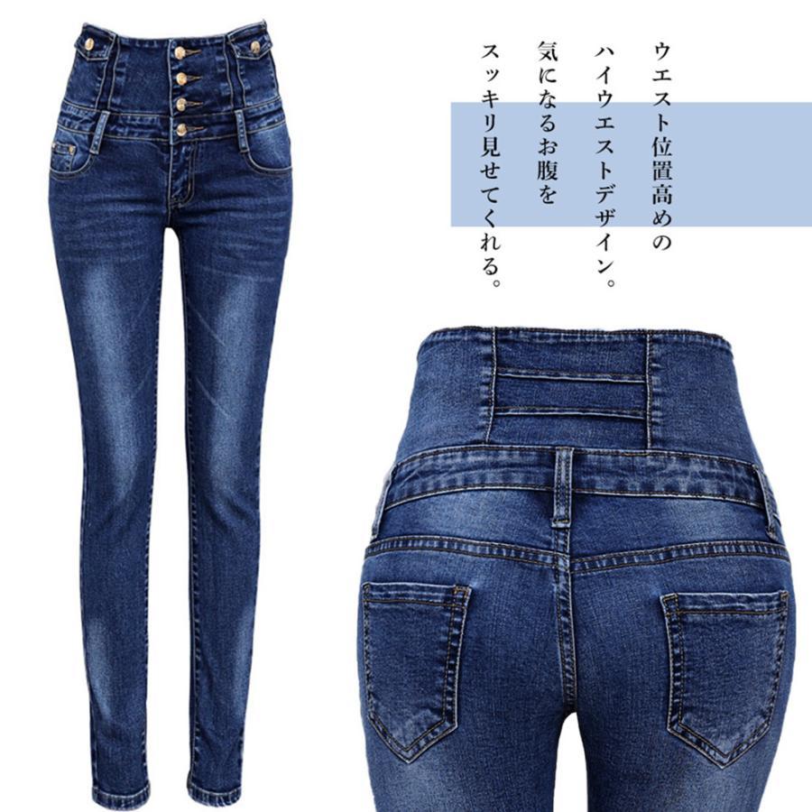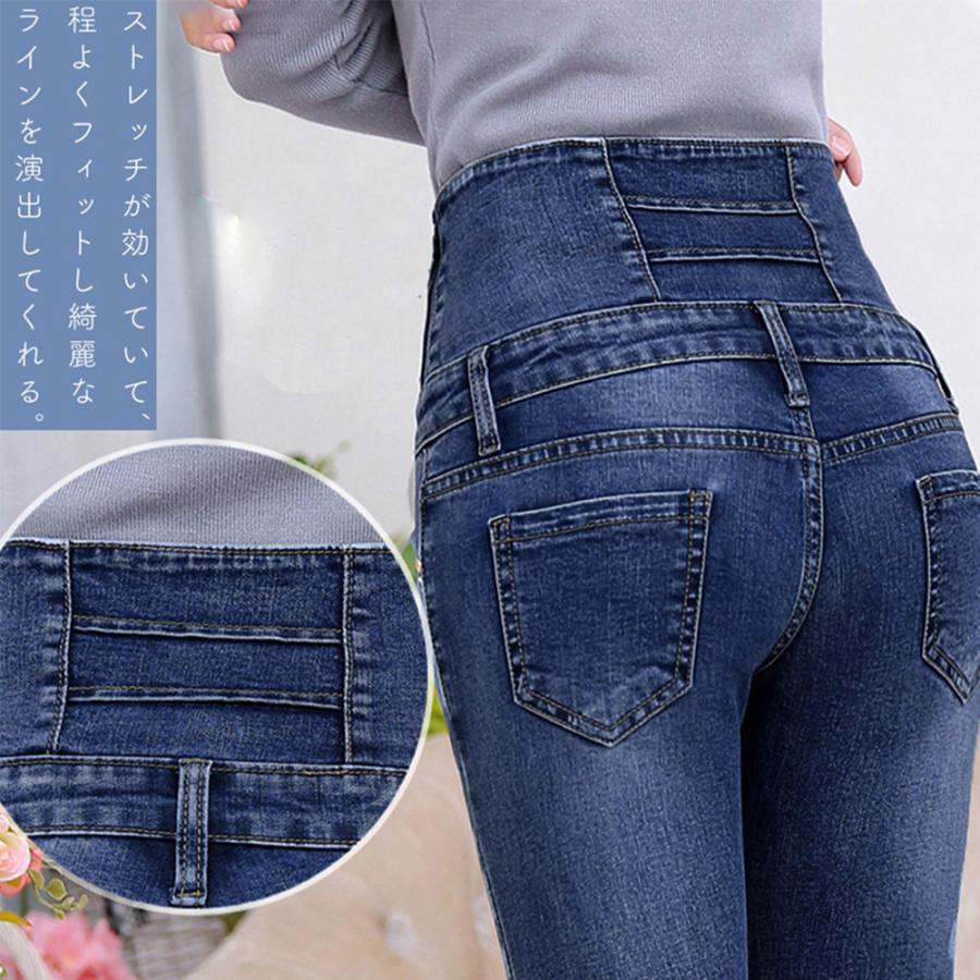 スキニーデニムパンツ レディース ハイウエスト デニムジーンズ 無地 ストレッチ ジーパン 脚長 ジーパン 細見え