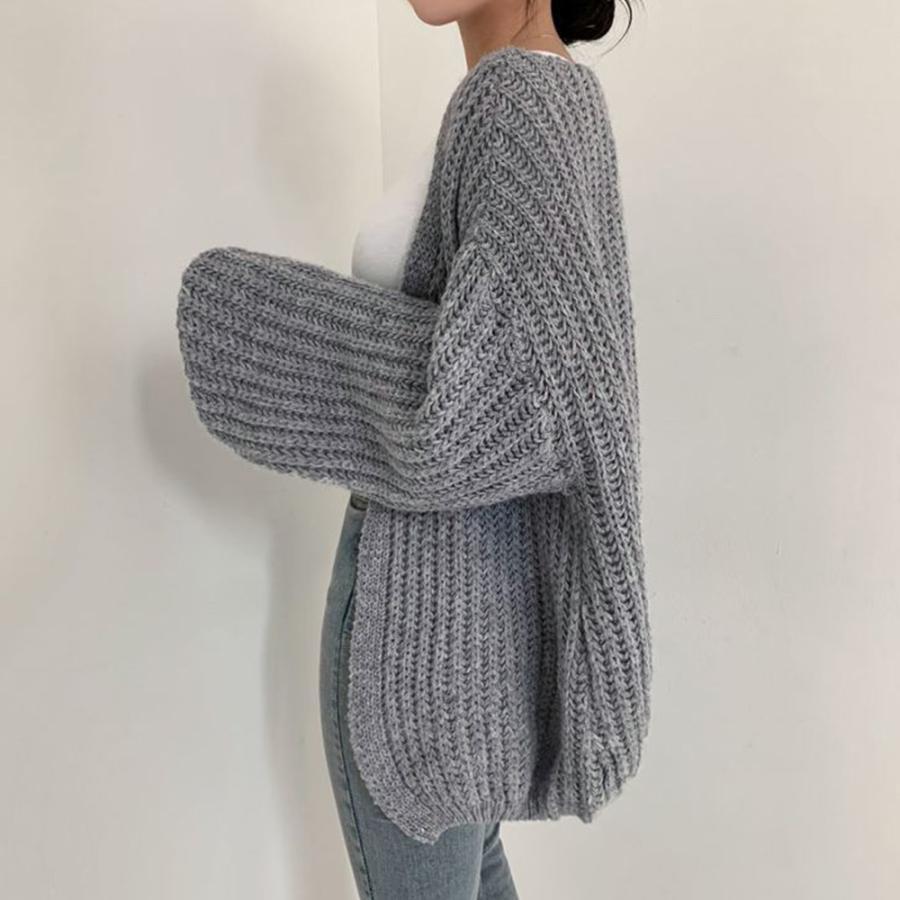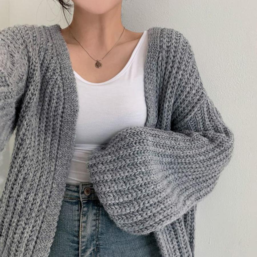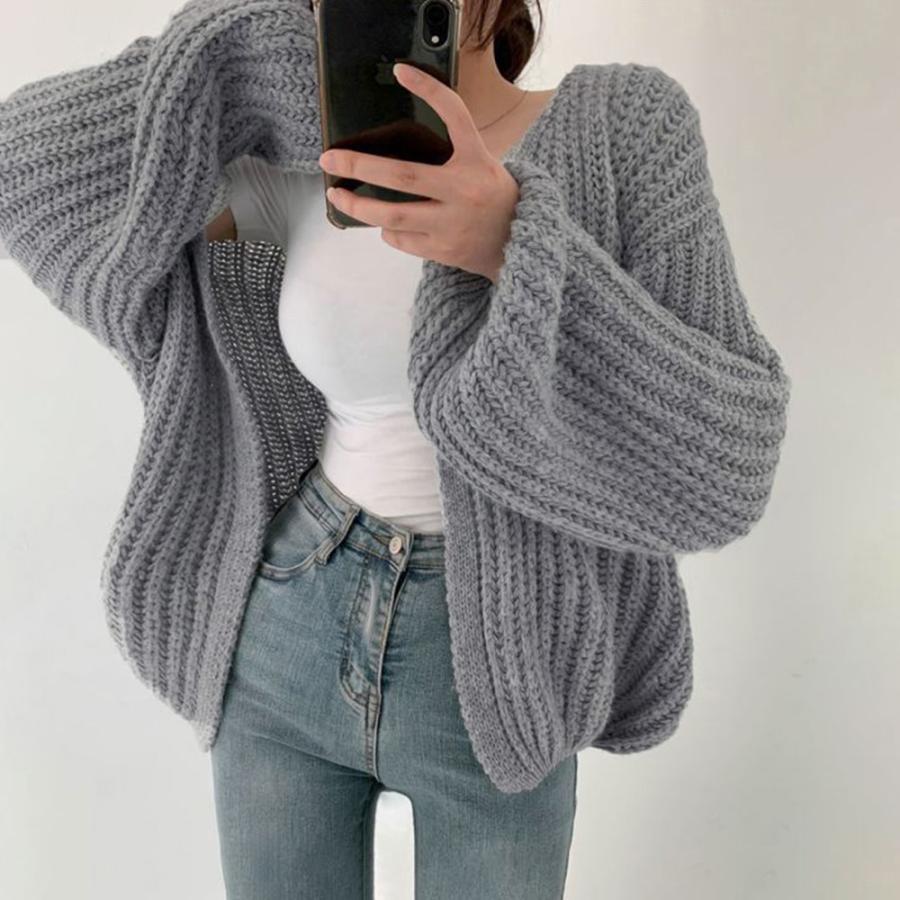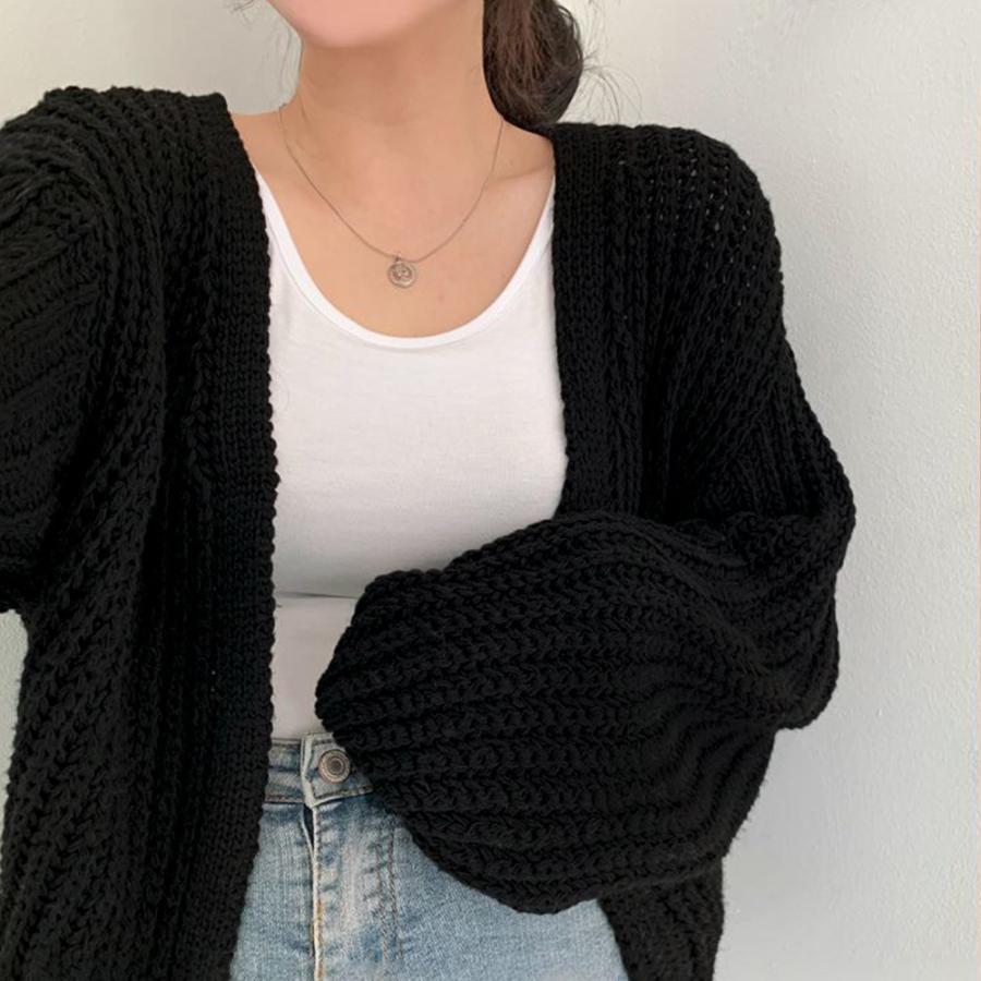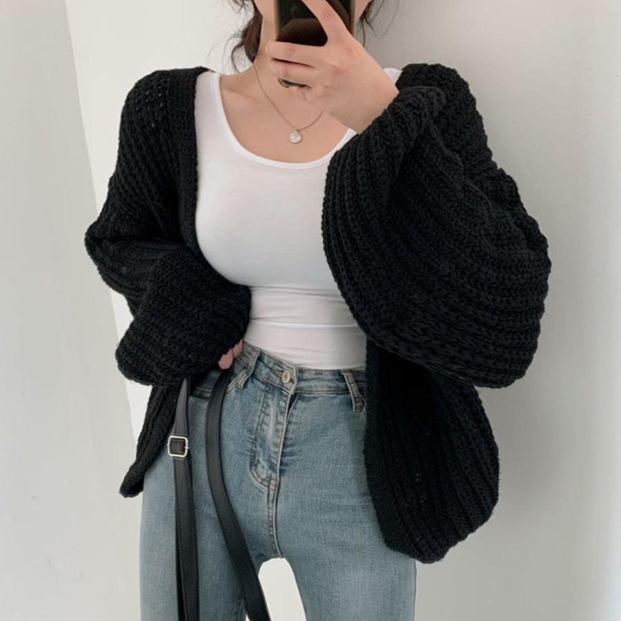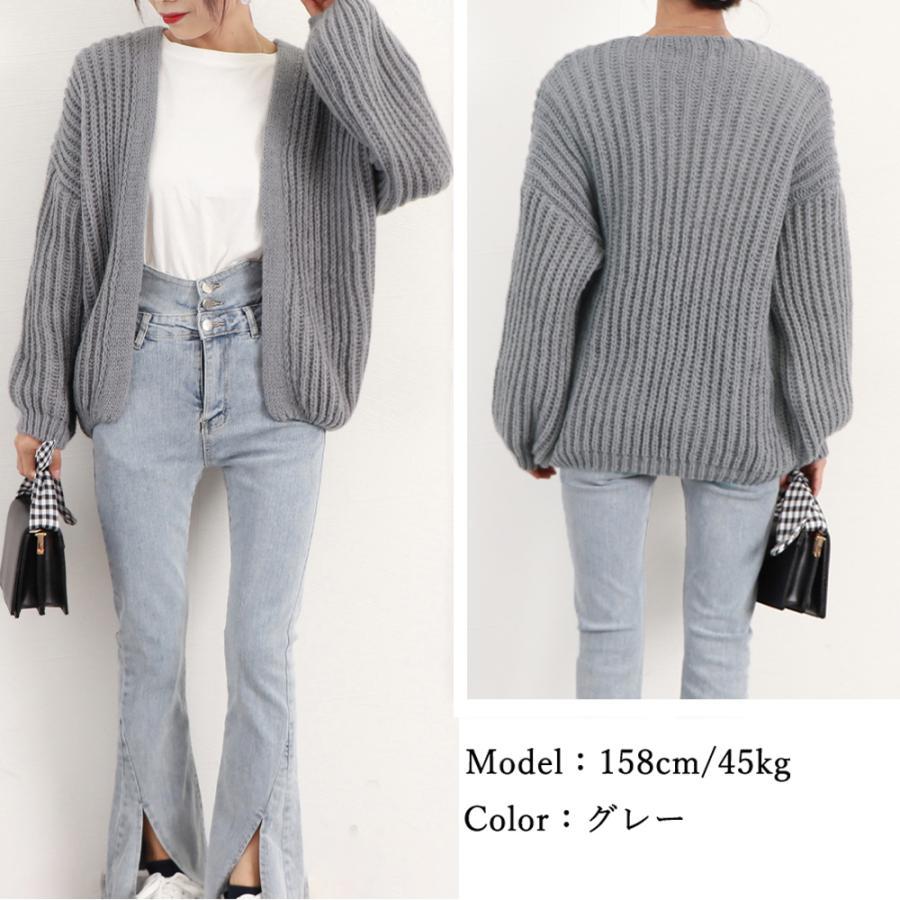 カーディガン 韓国風 ゆるニットトップス 体型カバー ボリューム袖 長袖 ニットアウター 羽織り 春秋服 大人カジュアル