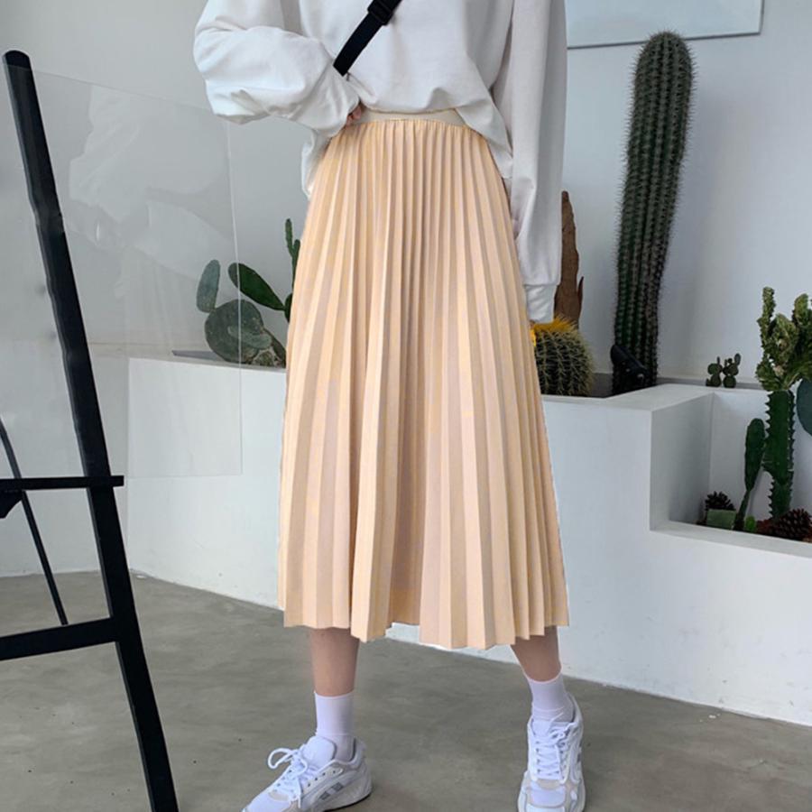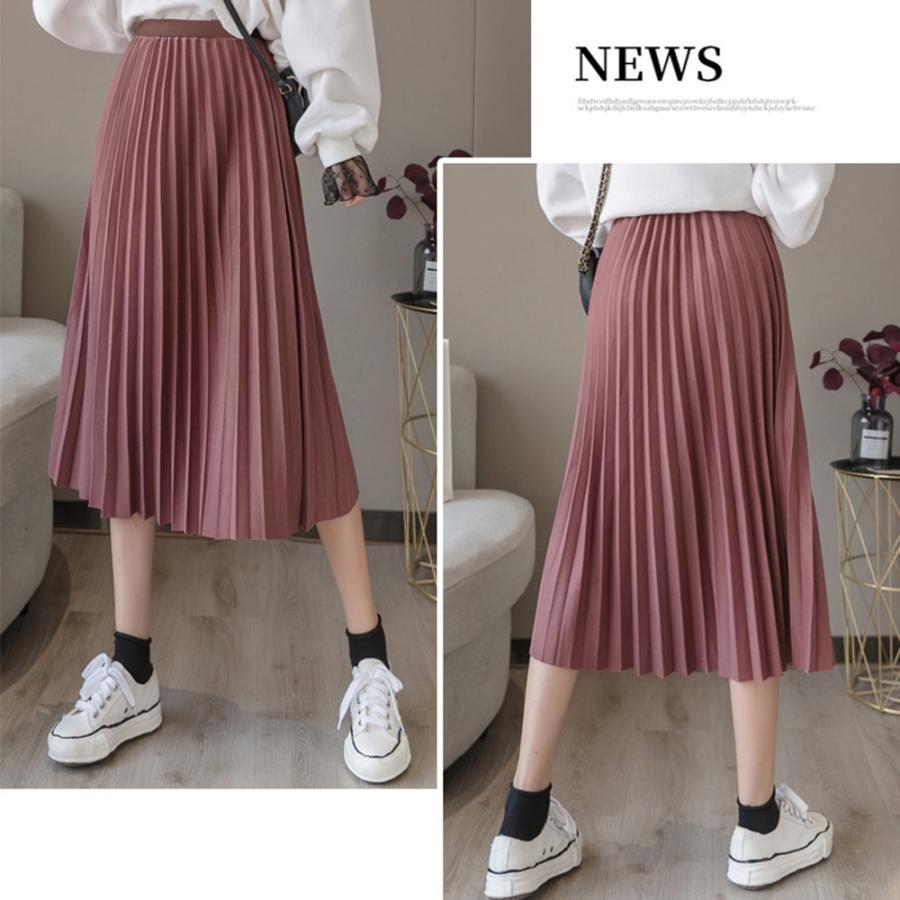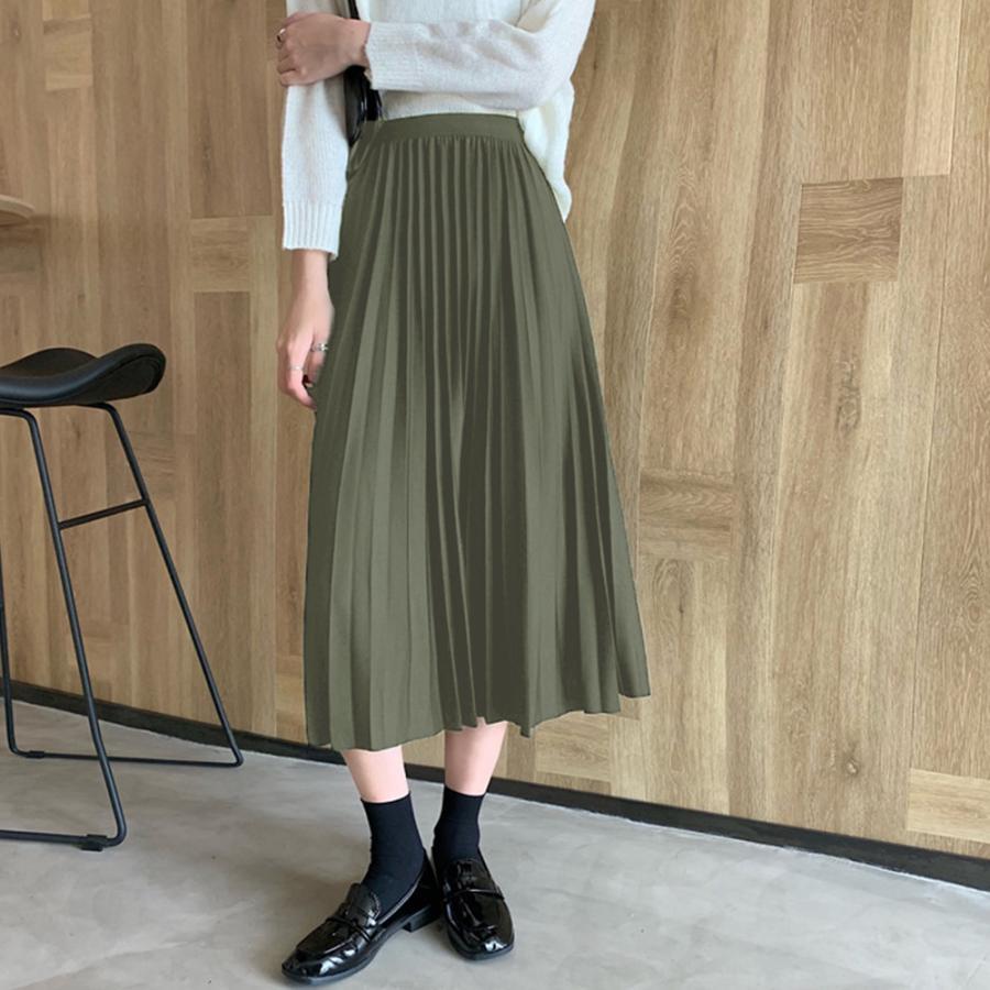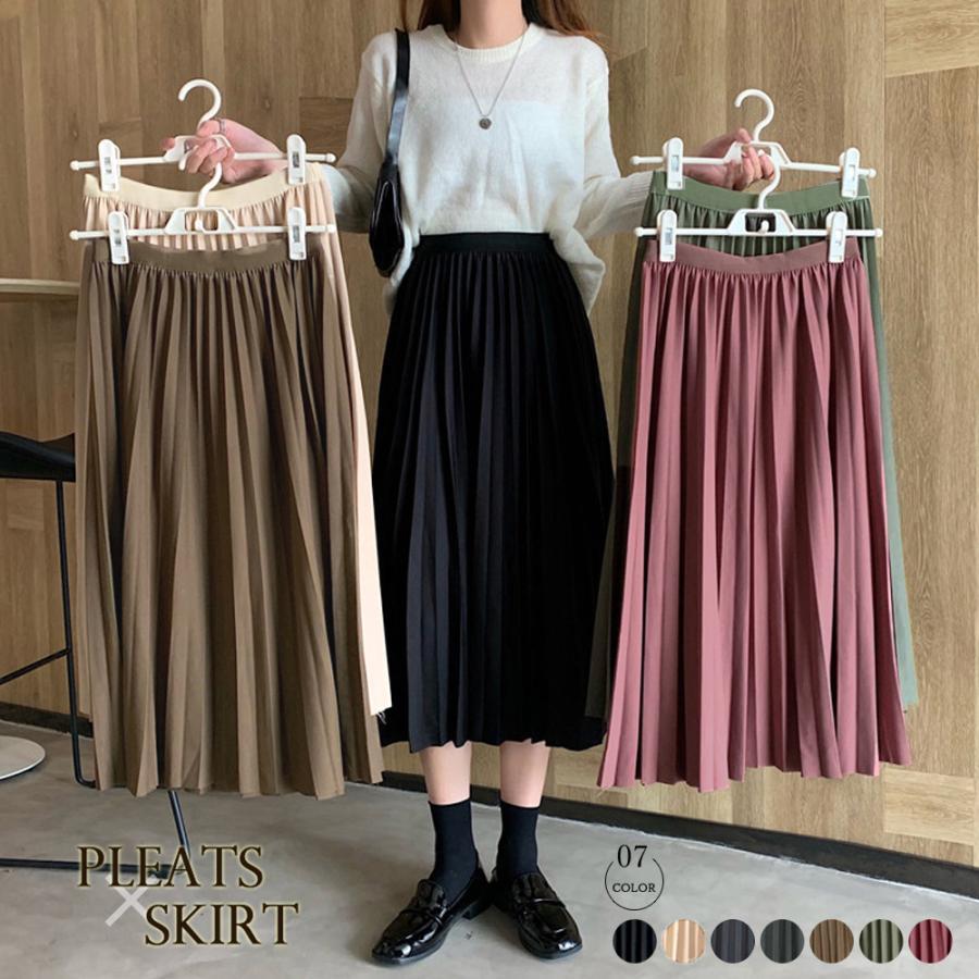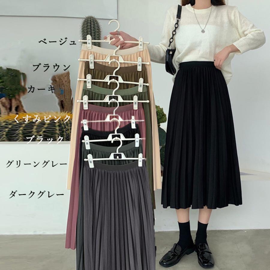 レディース ミモレ丈スカート ウエストゴム 無地 フレアスカート きれいめ ボトムス かわいい 体型カバー オルチャン