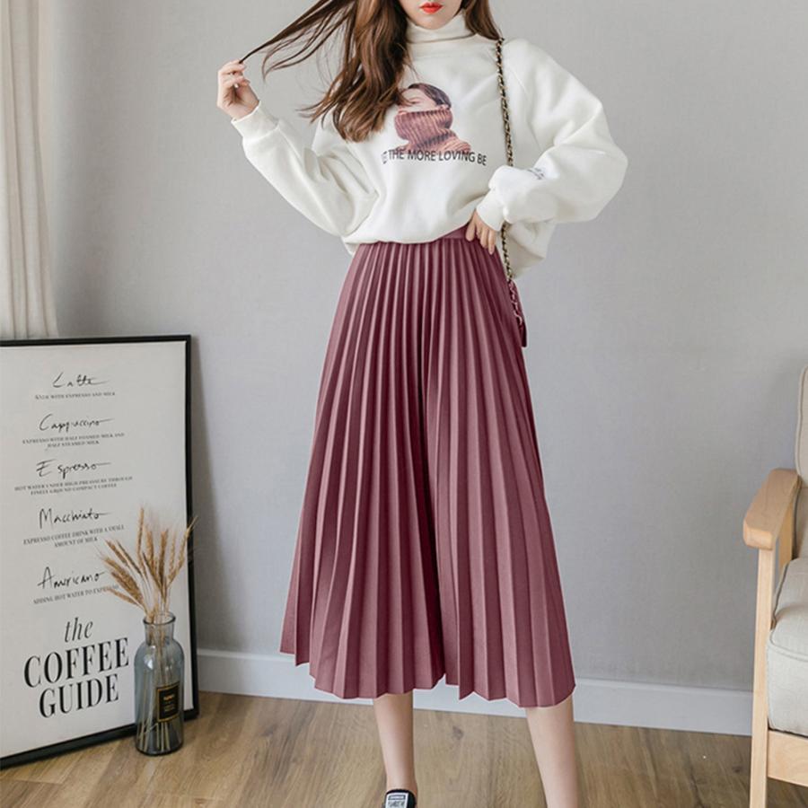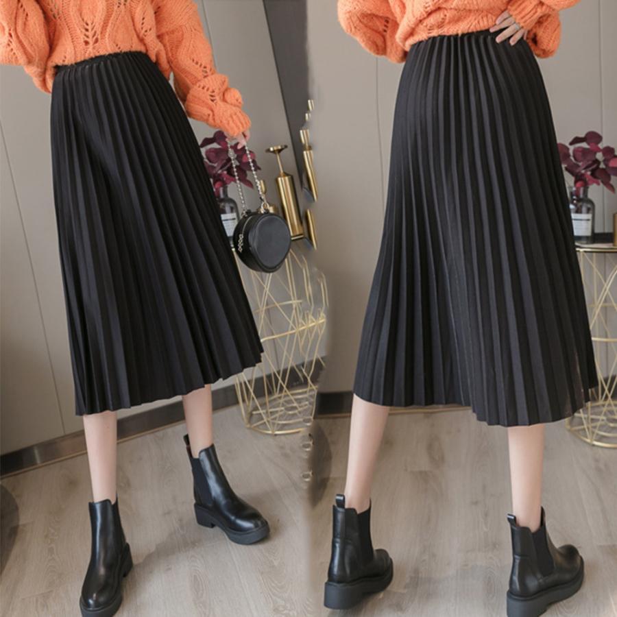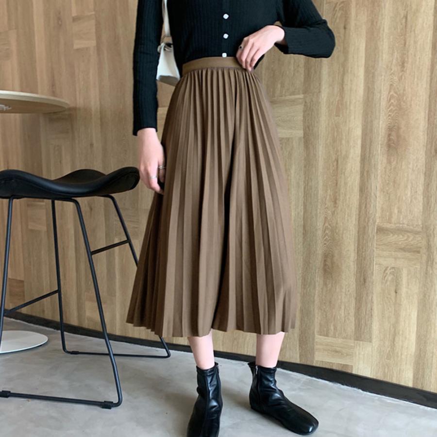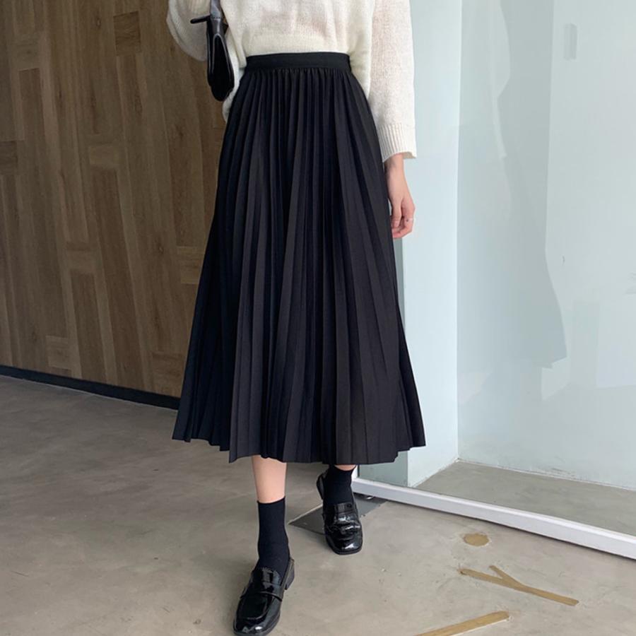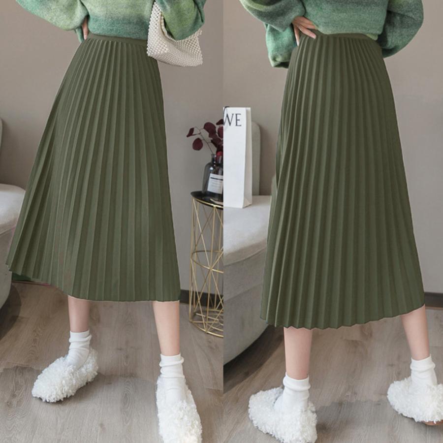 レディース ミモレ丈スカート ウエストゴム 無地 フレアスカート きれいめ ボトムス かわいい 体型カバー オルチャン