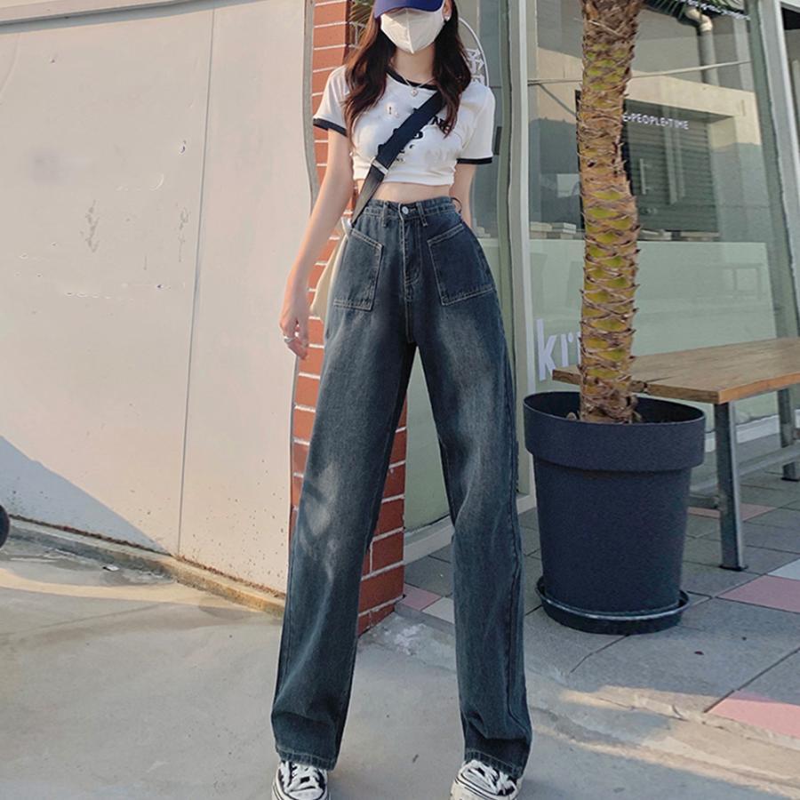 レディース 韓国風 ジーパン 美脚脚長 ボトムス カジュアル ロングパンツ ゆったり ストレートパンツ 春夏秋冬おしゃれ
