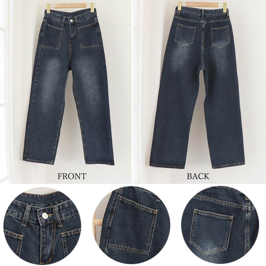 大人カジュアルなスタイル、レディースレトロ風デニムワイドパンツ