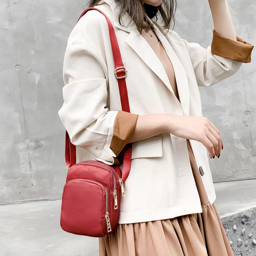 丈夫なナイロン生地を使用したカジュアルなミニショルダーバッグ