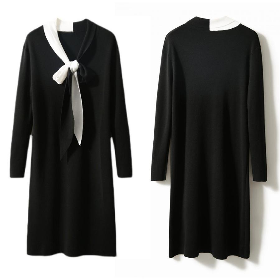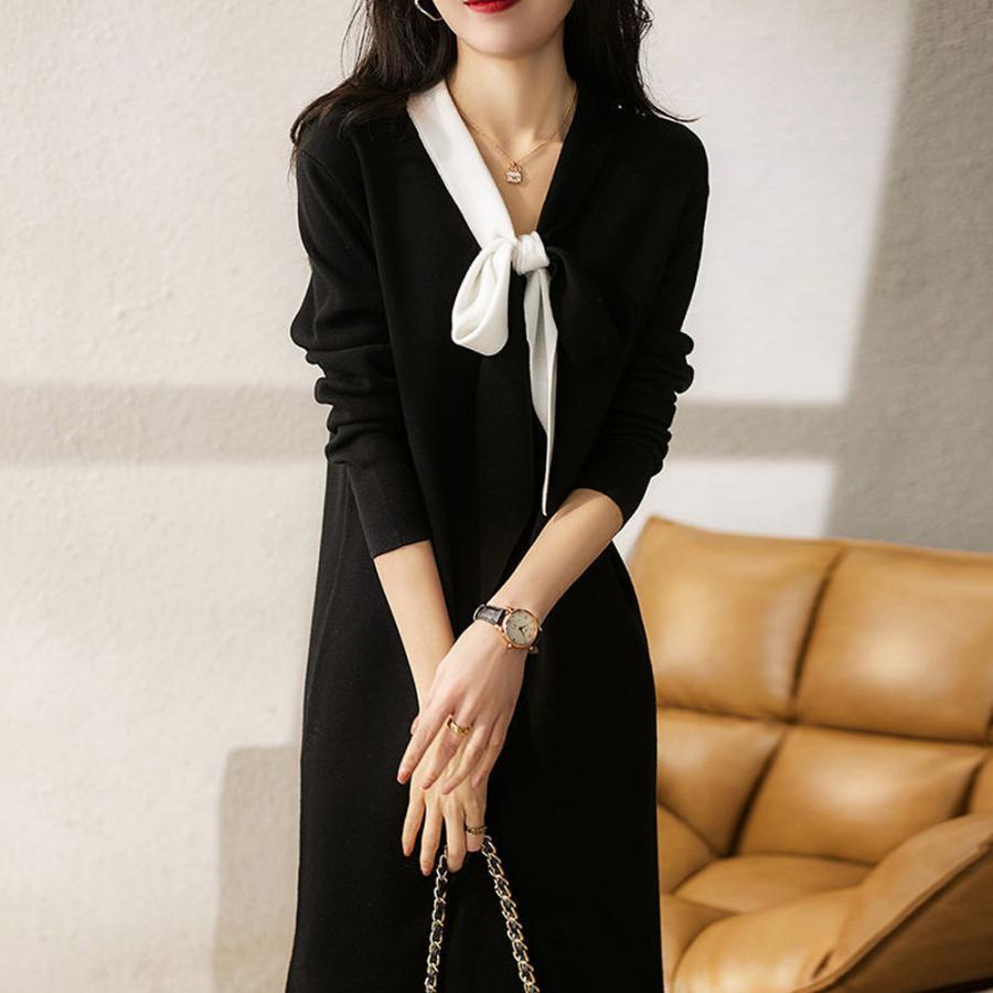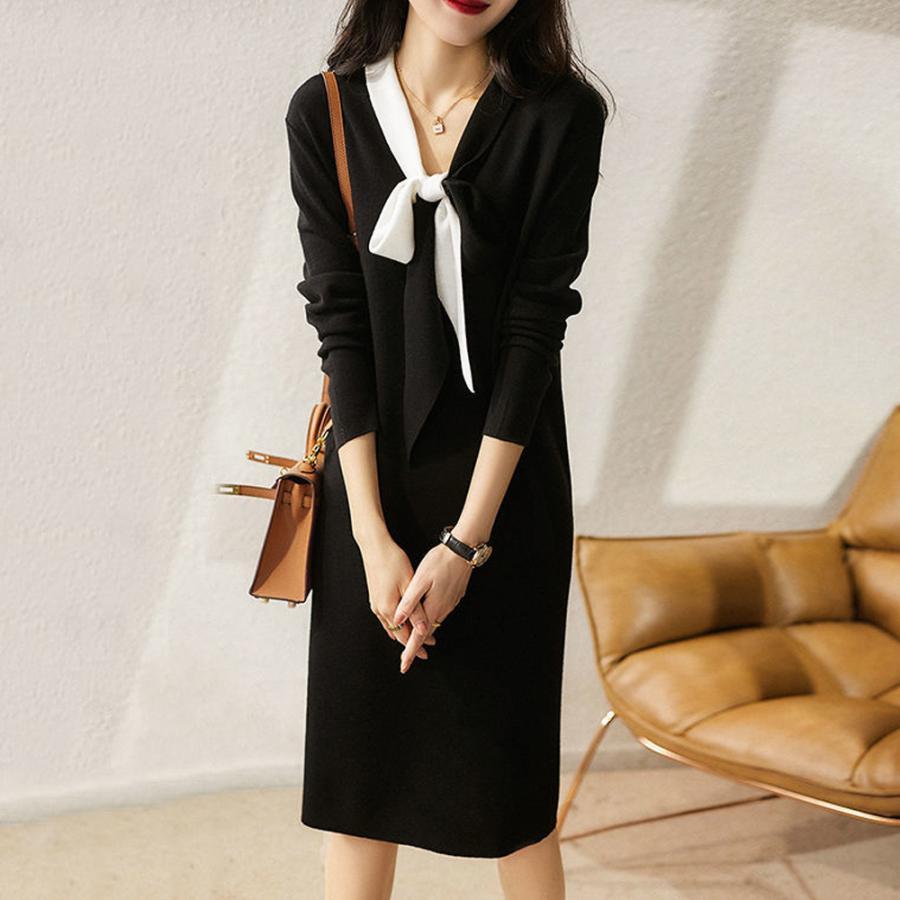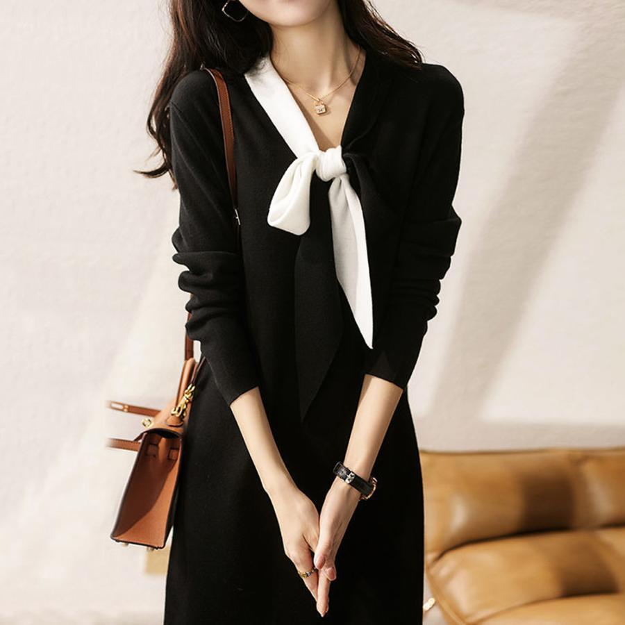 体型カバー ワンピ 黒ワンピース韓国風 春ワンピ 着やせ