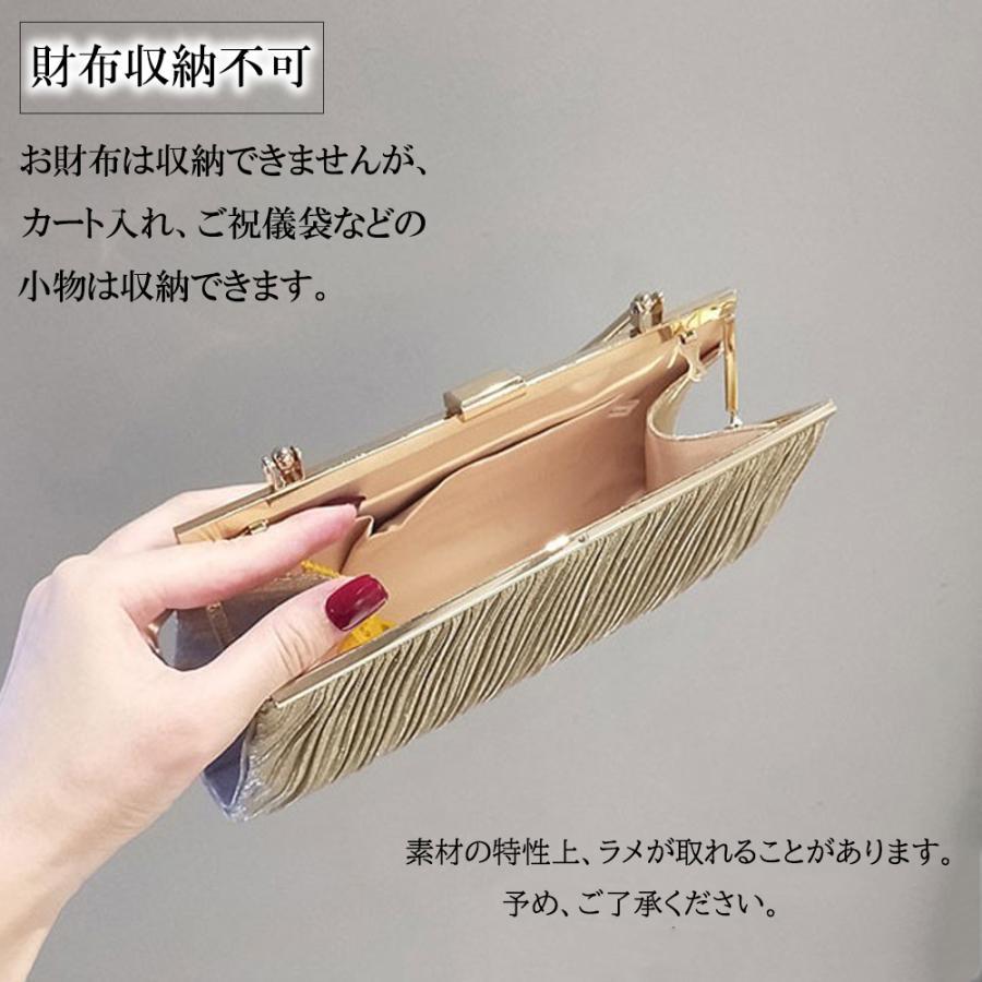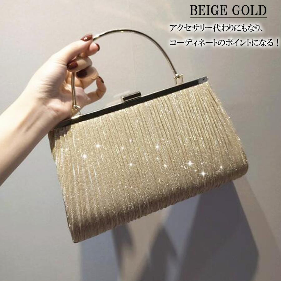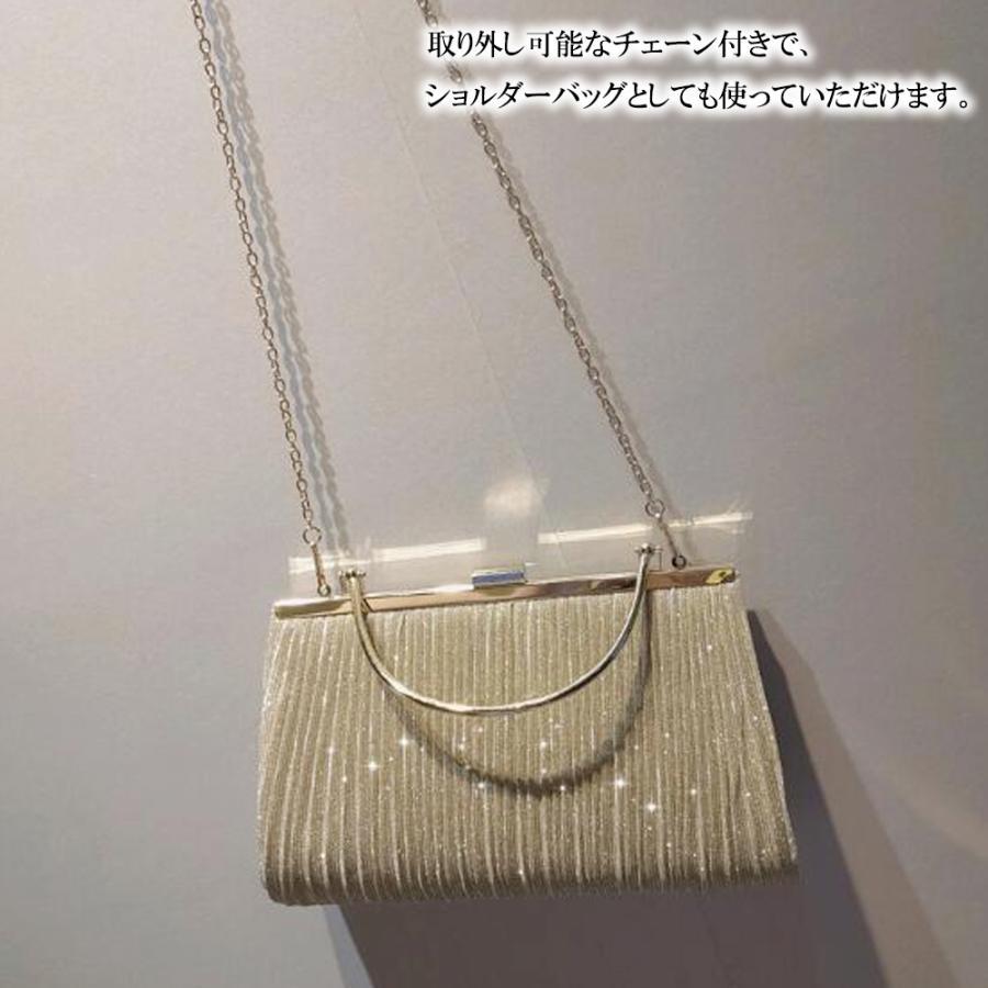 華やかなラメ生地にプリーツ加工を施し、上品さをプラスした3wayがま口パーティーバッグです
