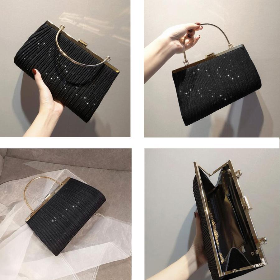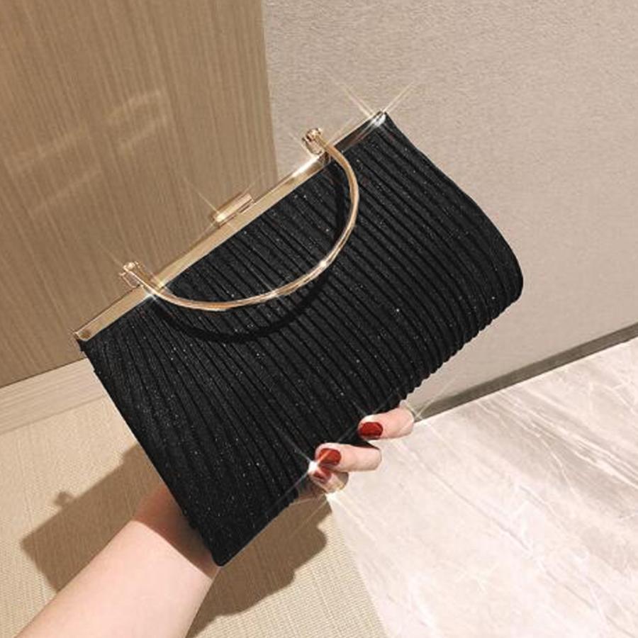 おしゃれ サテンプリーツ ハンドバッグ キラキラ ミニチェーンバッグ 斜めがけ ショルダーバッグ 小さめ鞄 フォーマル