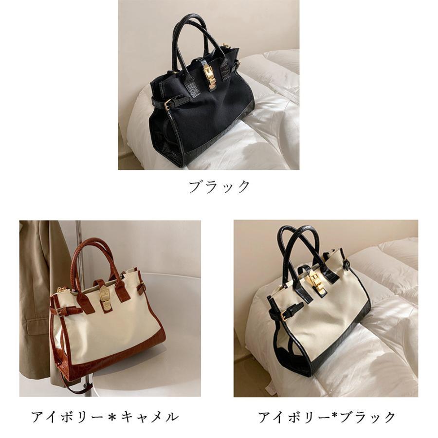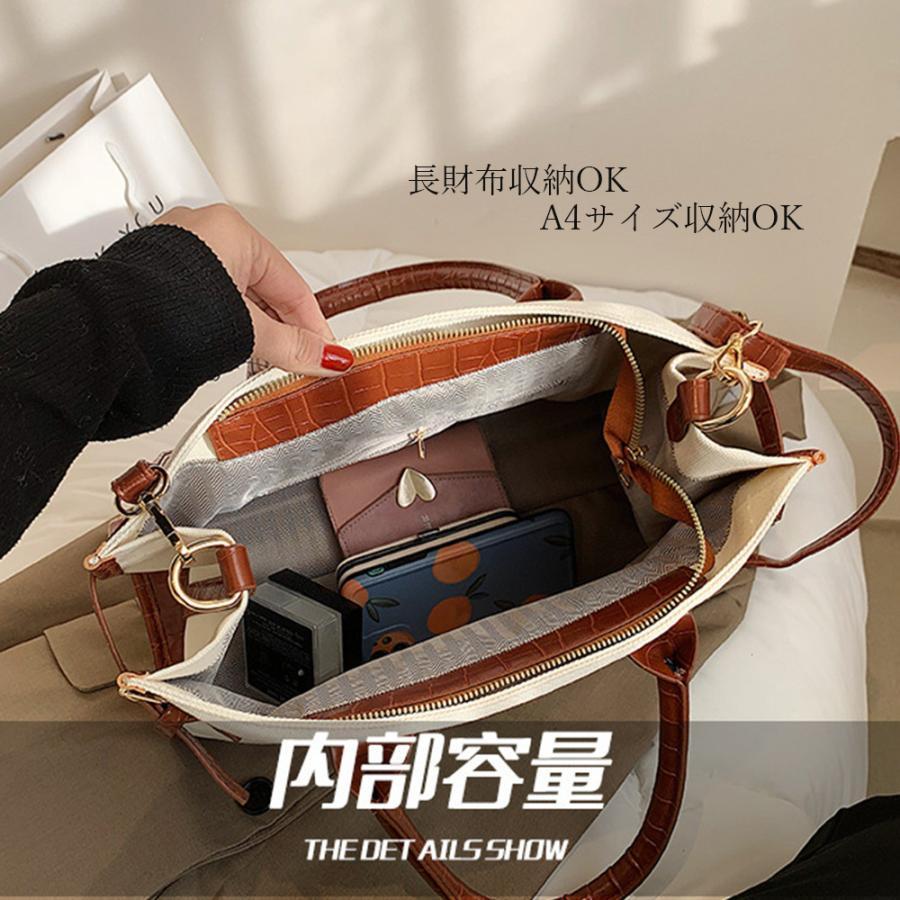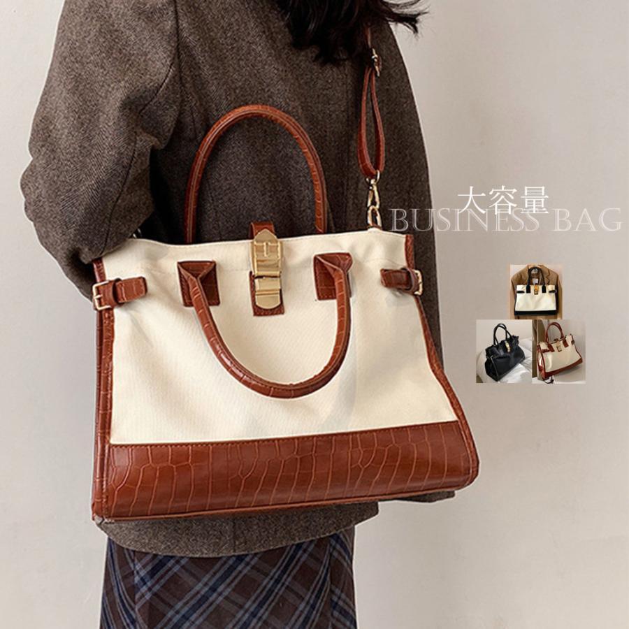 2WAY ショルダーバッグ PU 斜めかけ A4 上品 収納 キャンパス 異素材