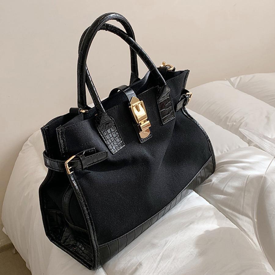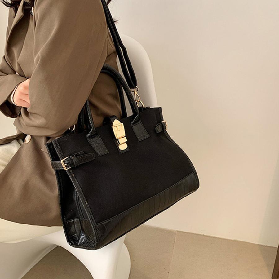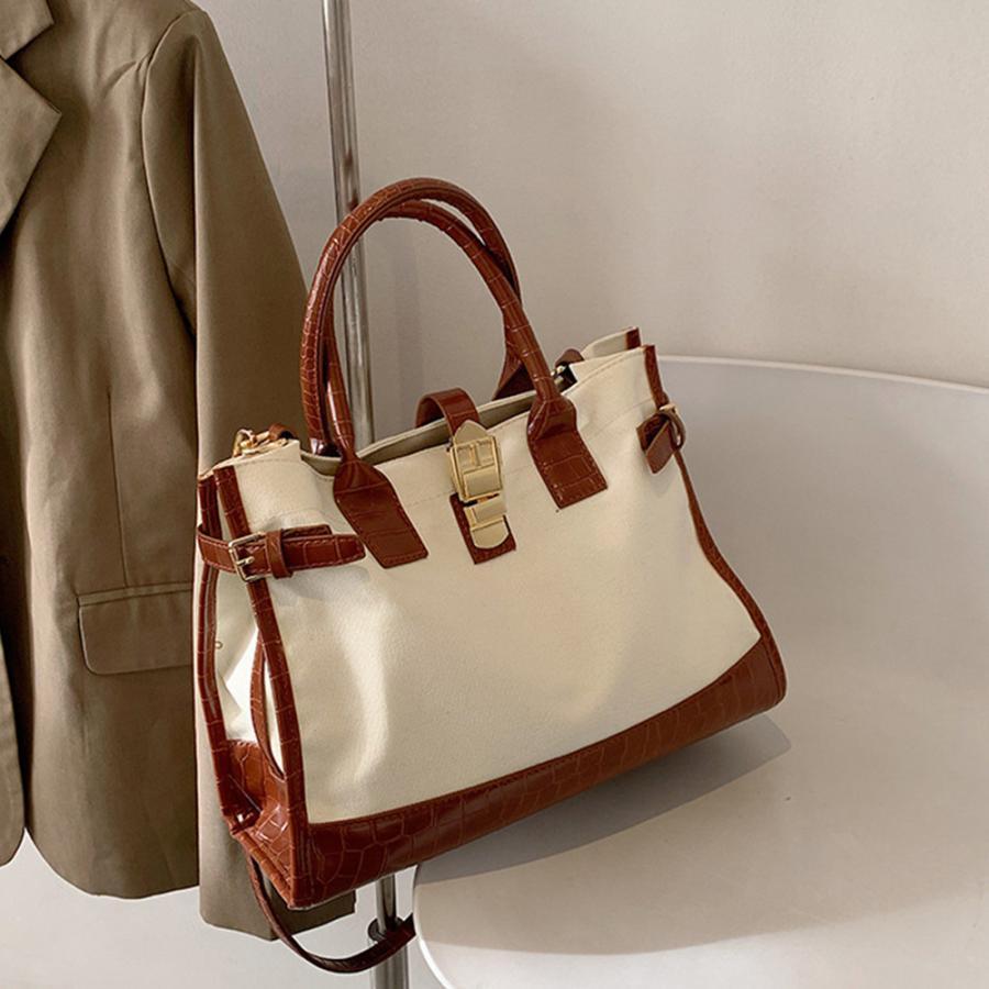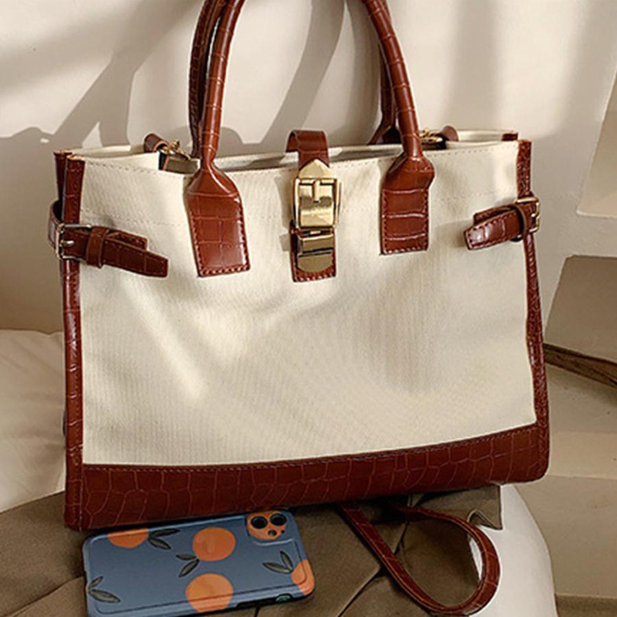 上質なPUレザーとキャンパス素材で仕上げた2WAYショルダートートバッグ