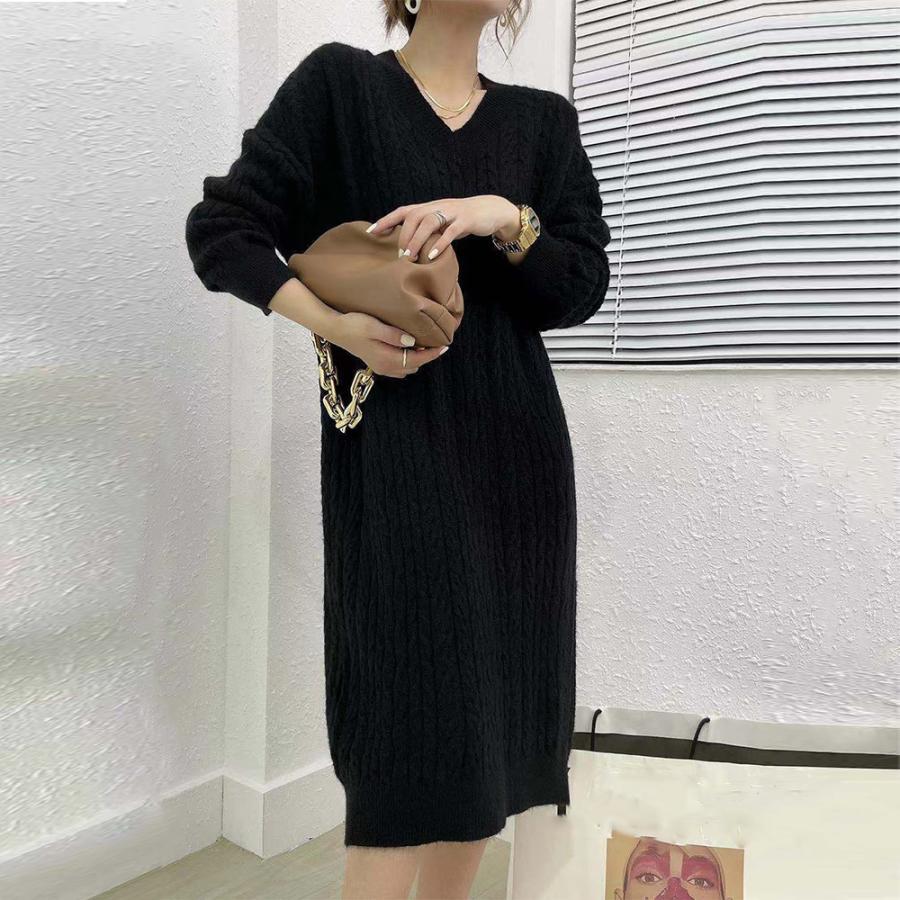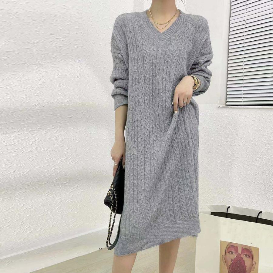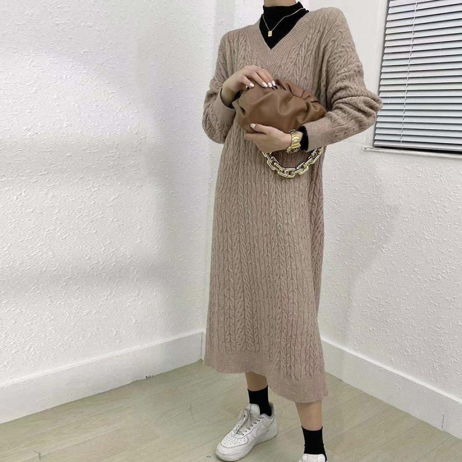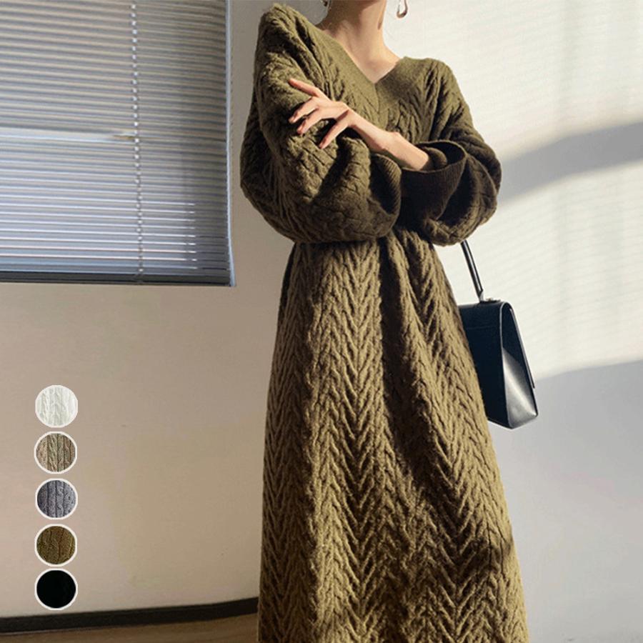 ワンピース 韓国 ロングニット 上品 ニット インナー