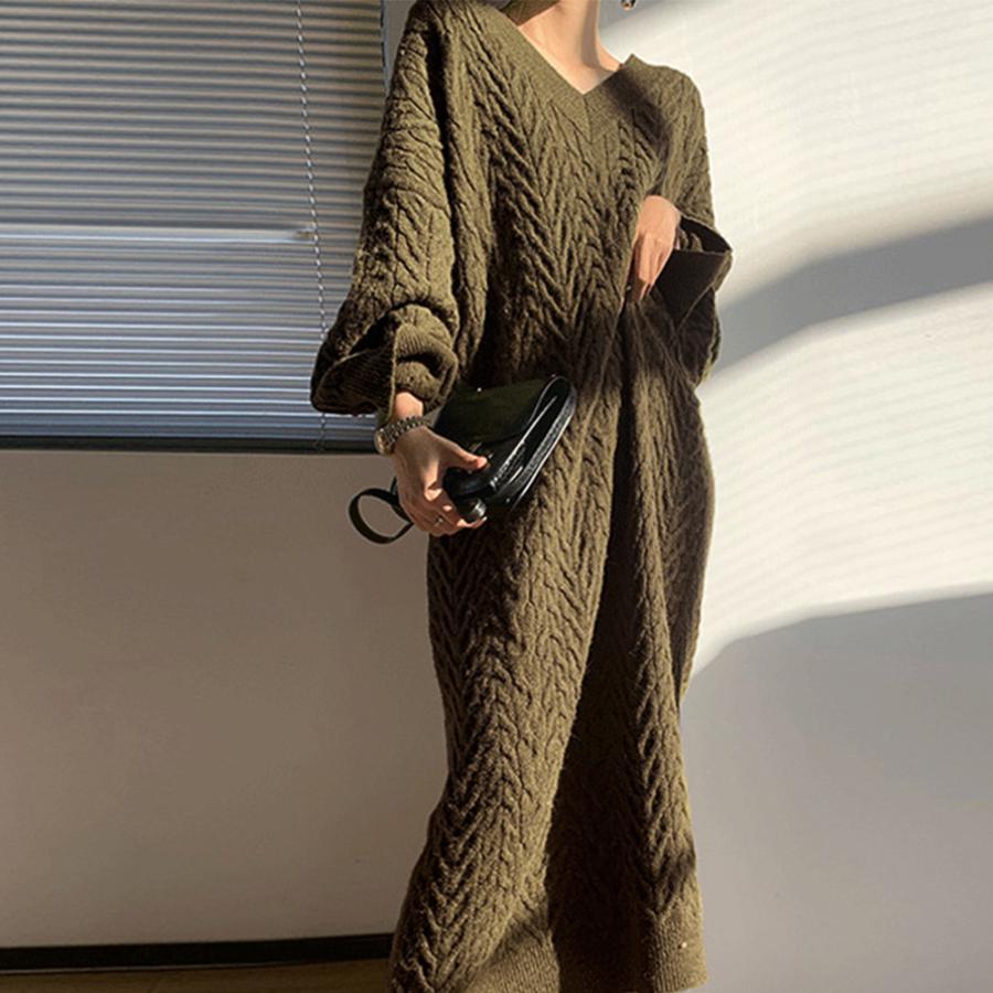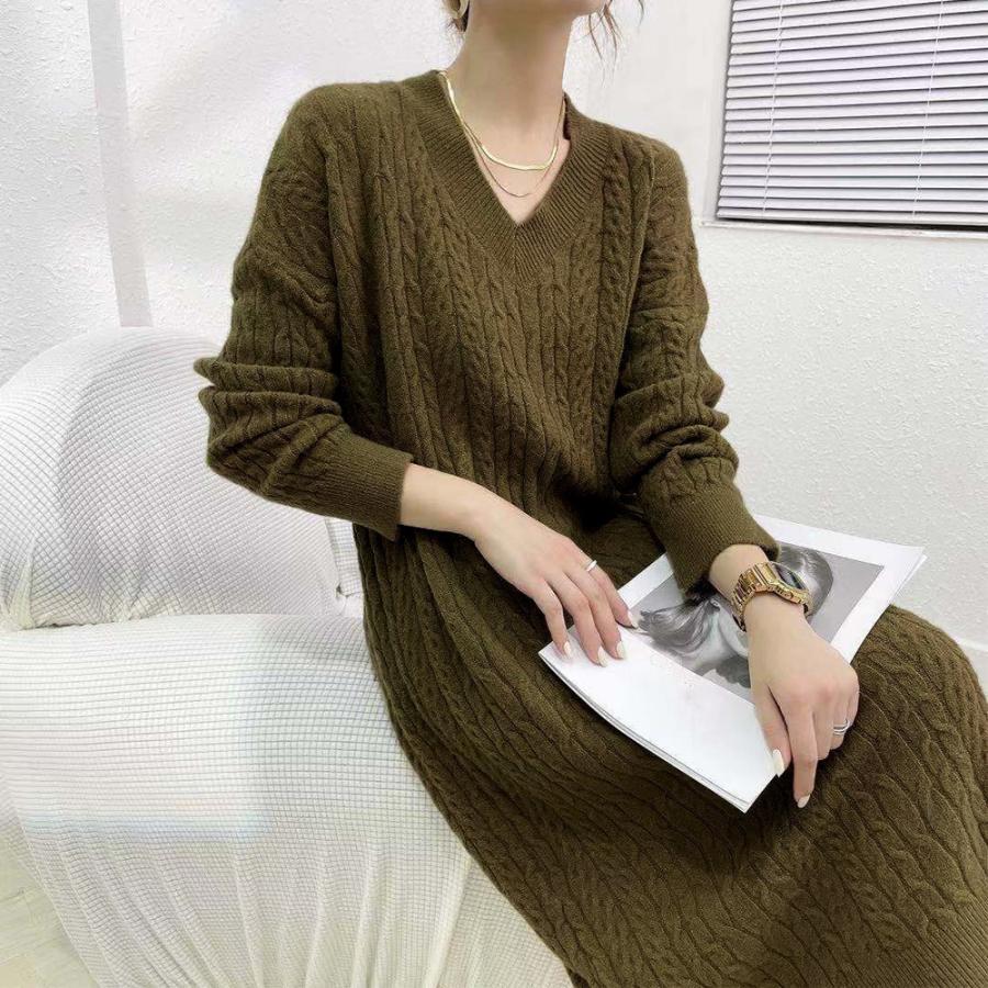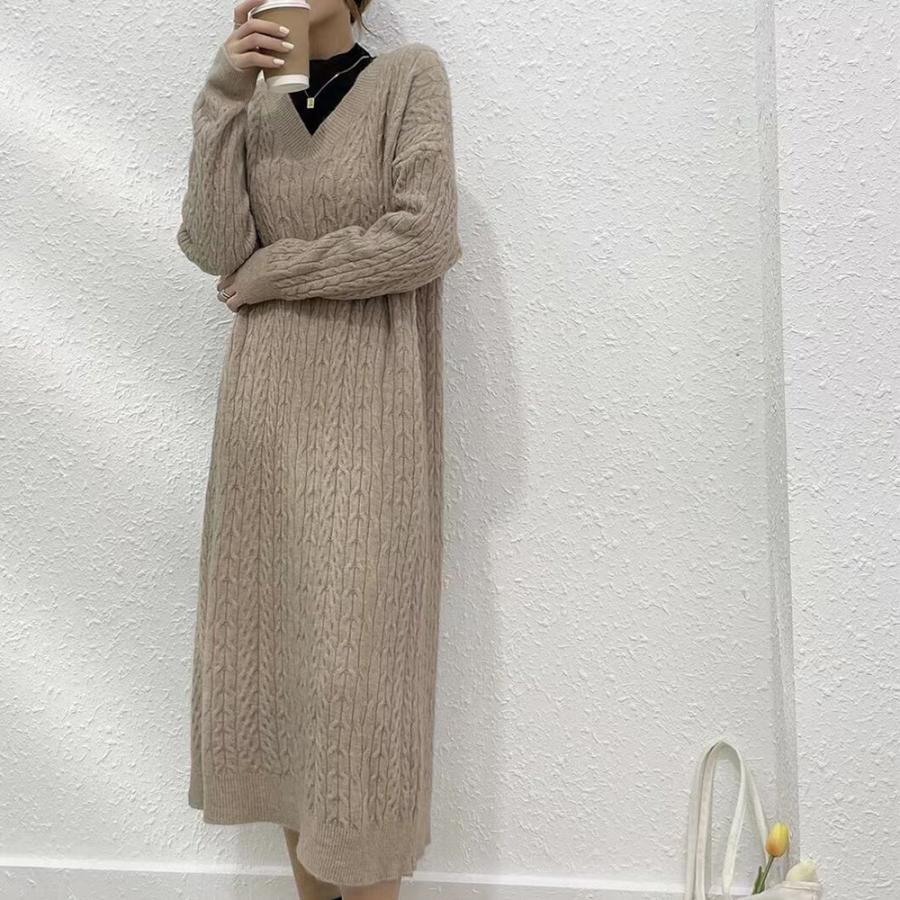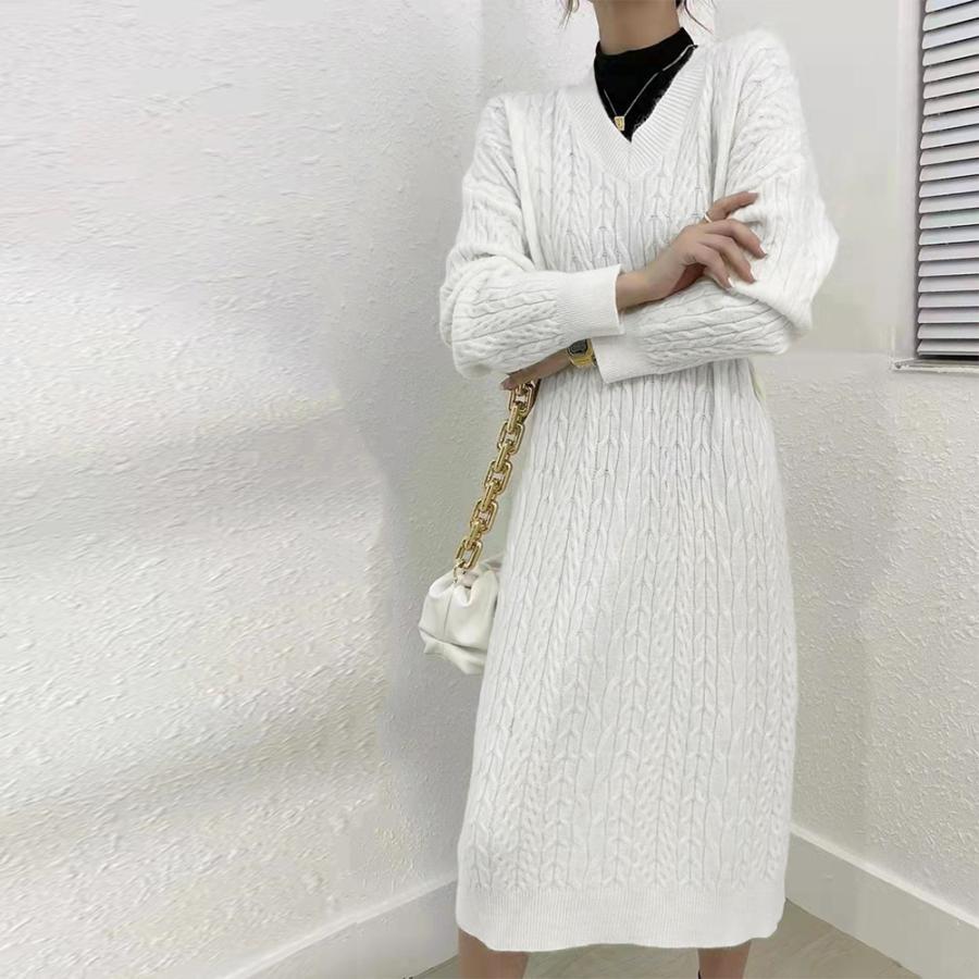 ワンピース 韓国 ロングニット 上品 ニット インナー