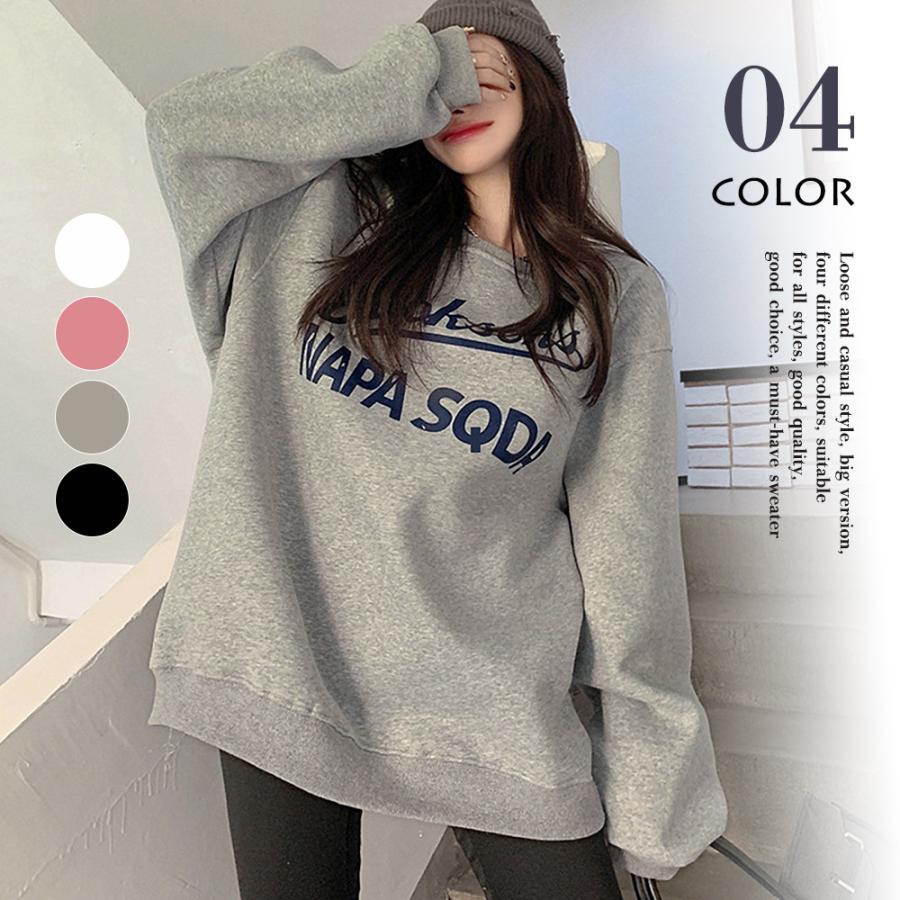 トップス ロゴトレーナー 体型カバー オルチャン ゆったり 裏起毛 オーバーサイズ カジュアル おしゃれ