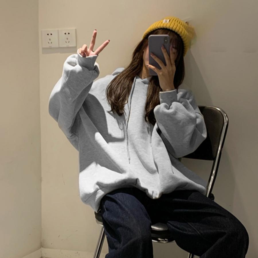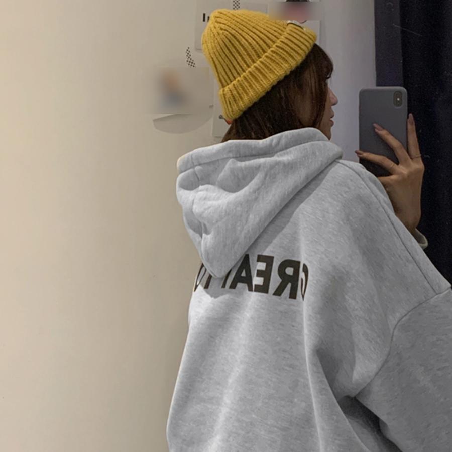 ロングパーカー 秋冬 ゆったり 長袖 韓国ファッション おしゃれ カジュアル オルチャン プルオーバー 体型カバー