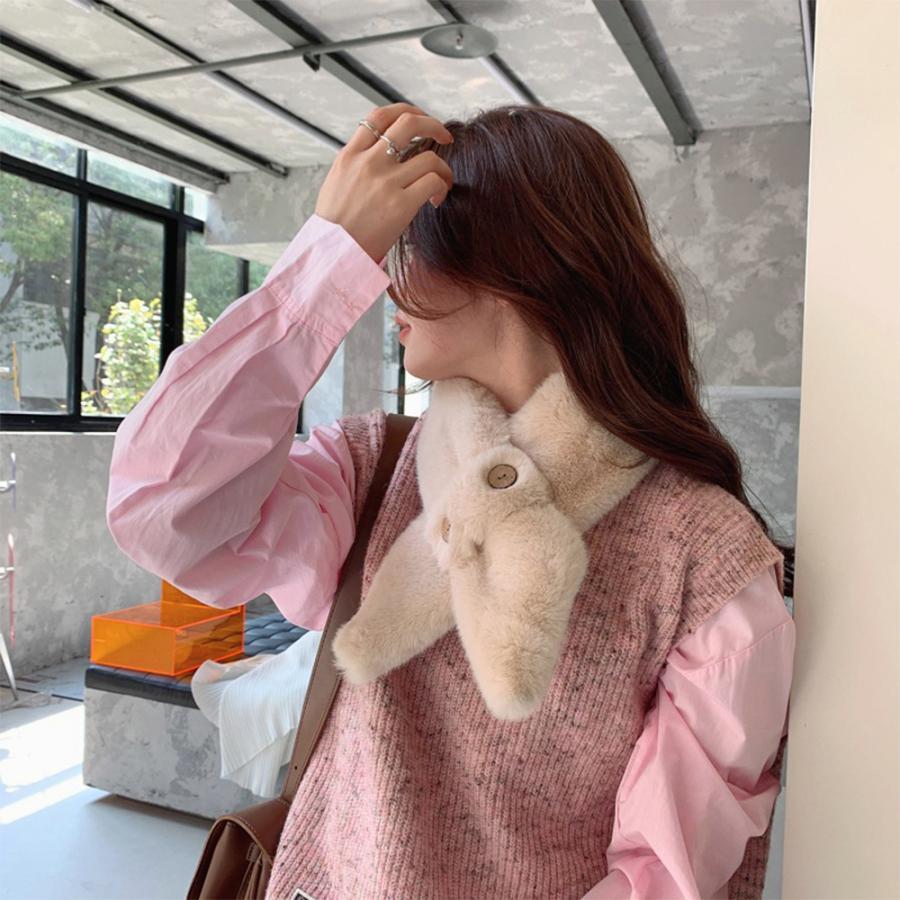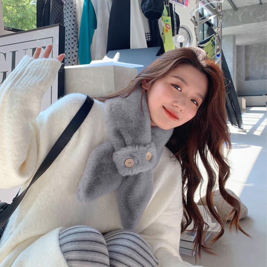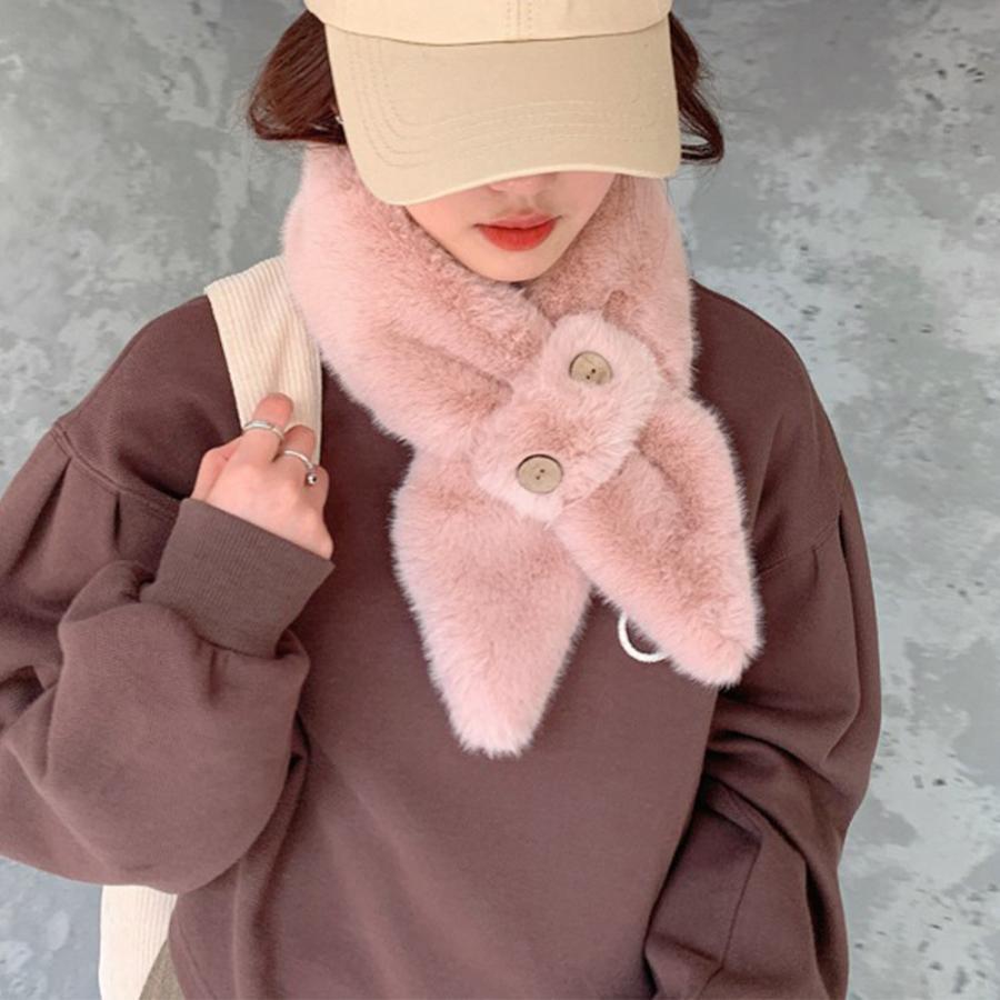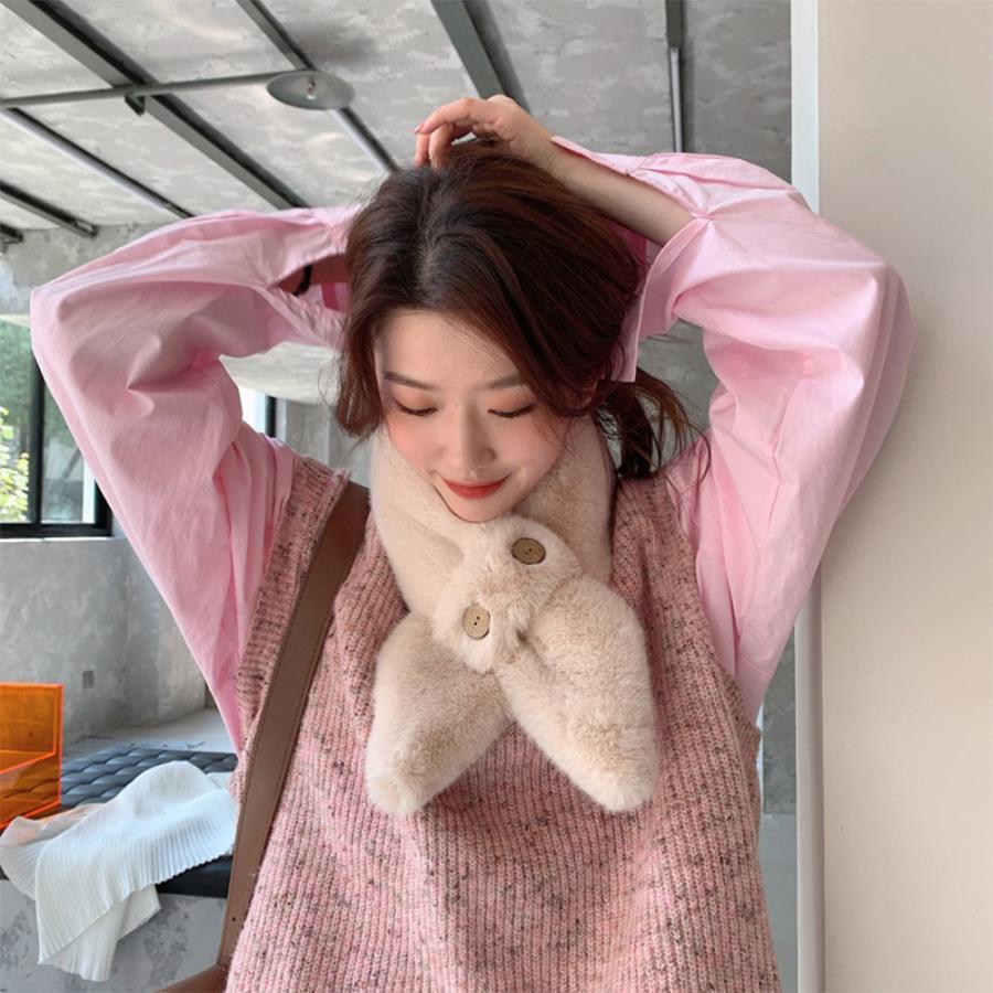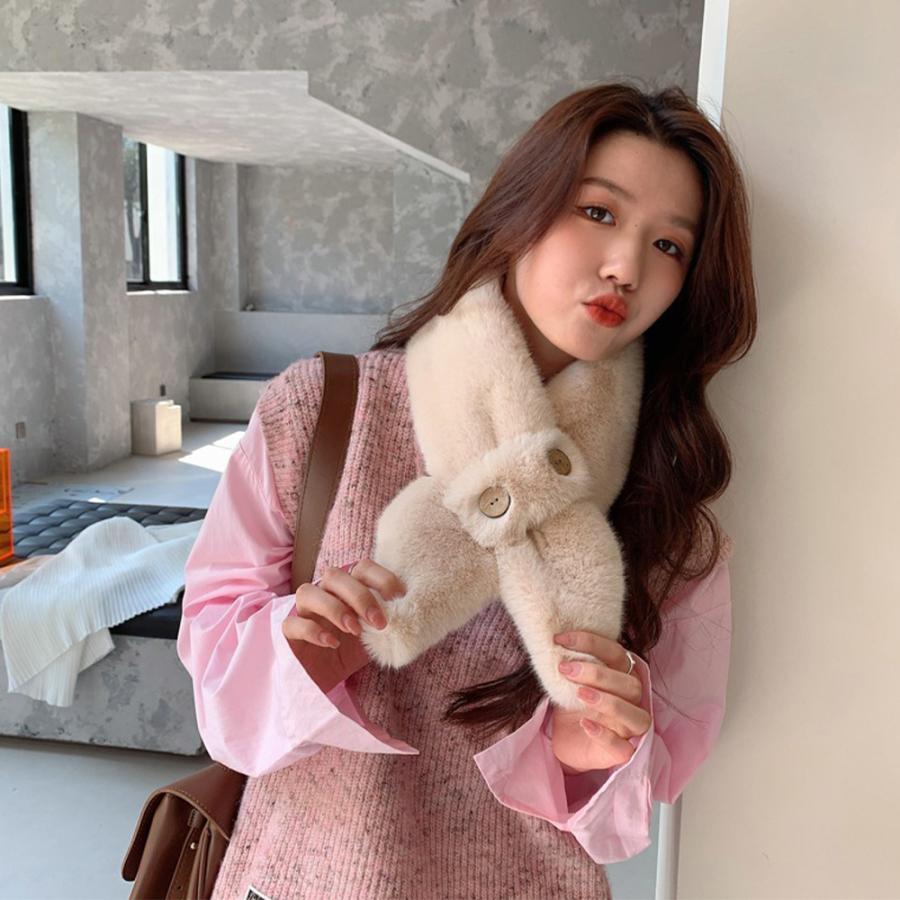 マフラー ボリューム ボダン飾り 可愛い 秋冬 お洒落 防寒性 シンプル ふわふわ 暖かい 通勤通学 人気 新作