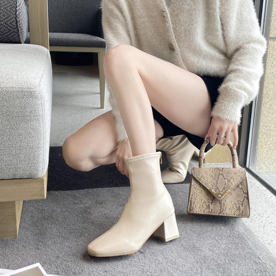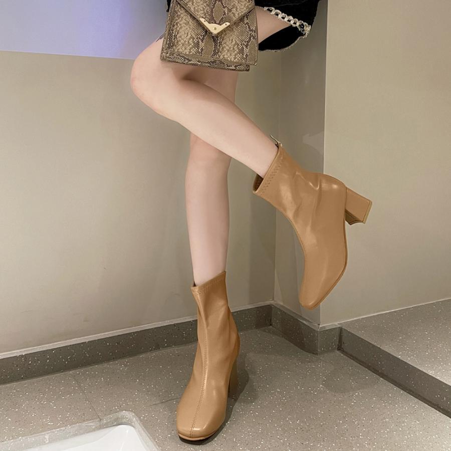 安定感のあるチャンキーヒールが履きやすいショートブーツ。