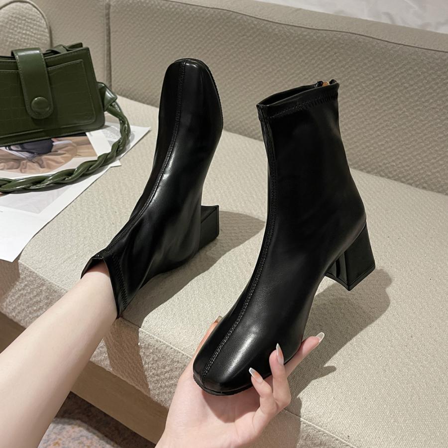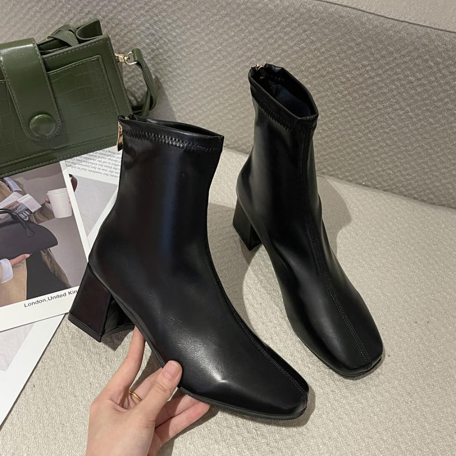 きれい 上品 カジュアル 大人 合皮 エコレザー 韓国 太ヒール 歩きやすい ショート丈 シンプル