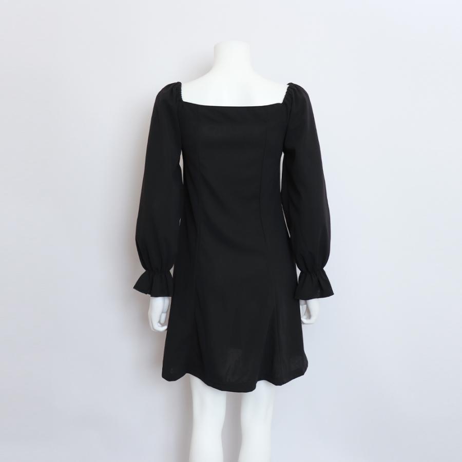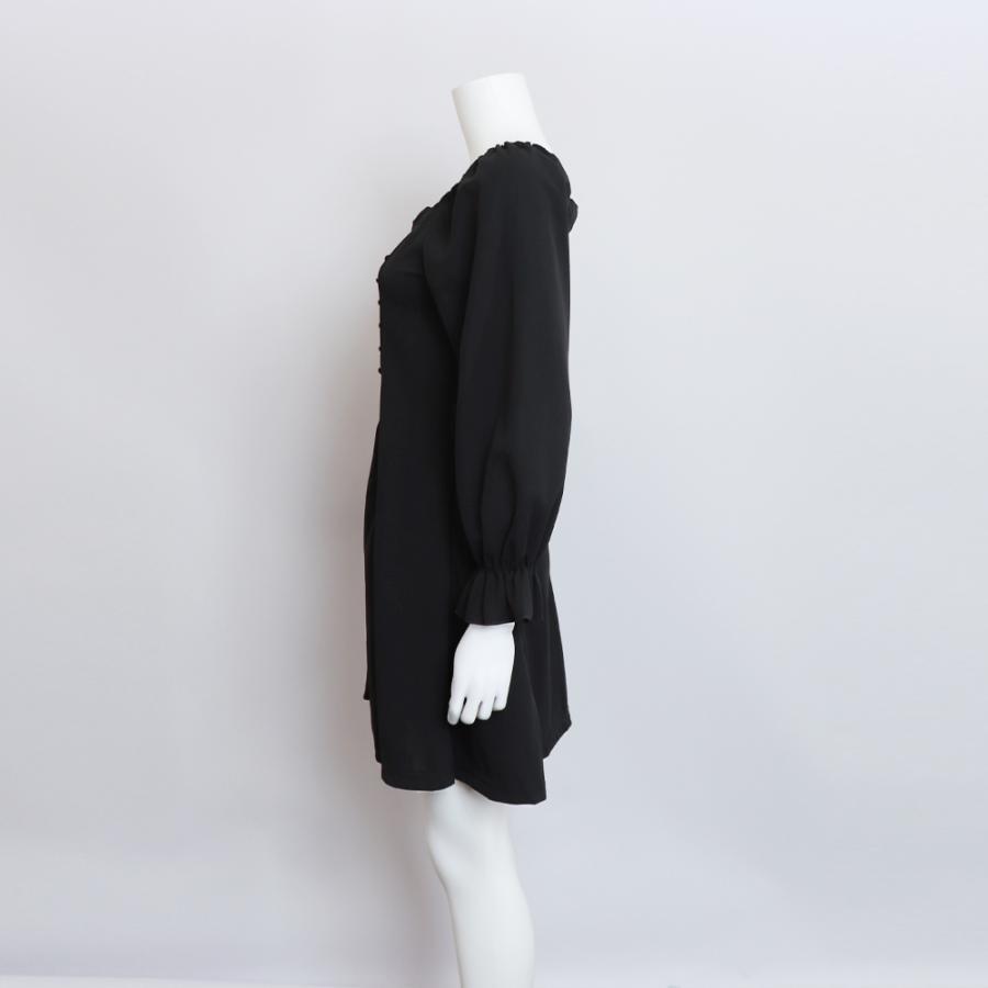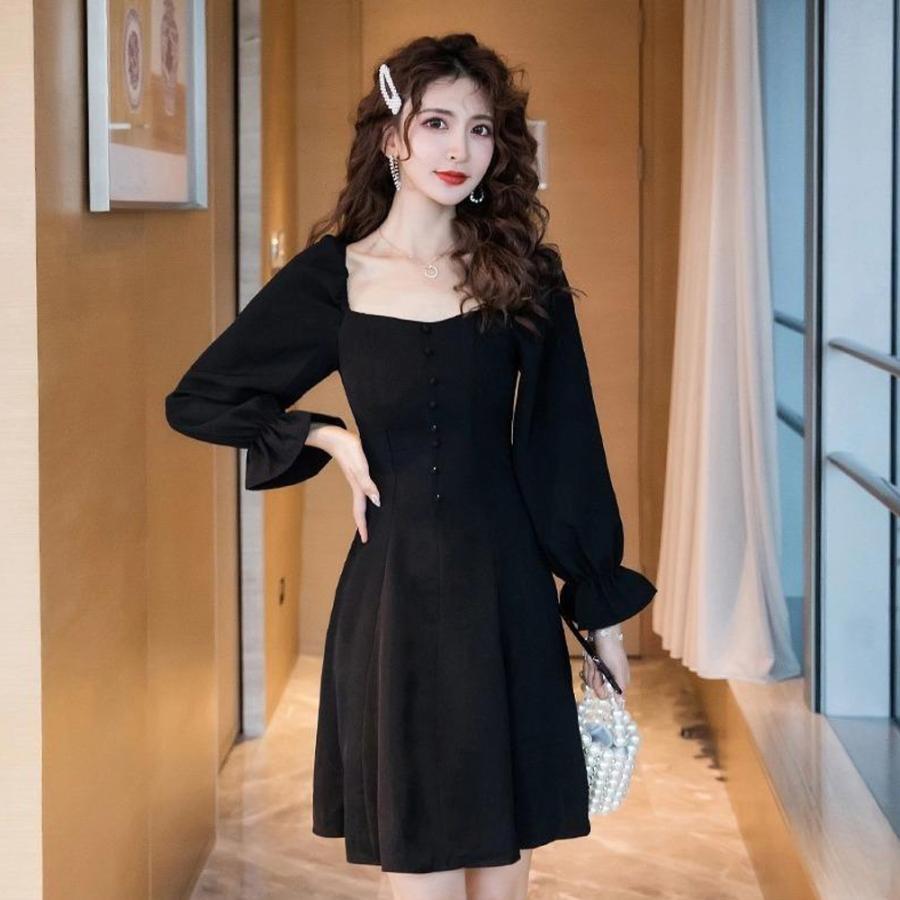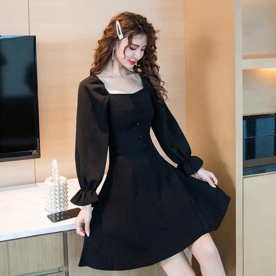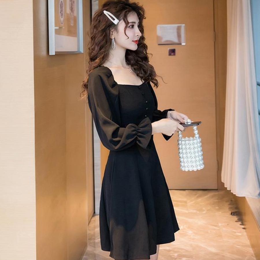 韓国風 ショート丈 長袖 ハイウエスト ボタン飾り レトロ風ワンピ 大人 可愛い デート おしゃれ 春秋冬