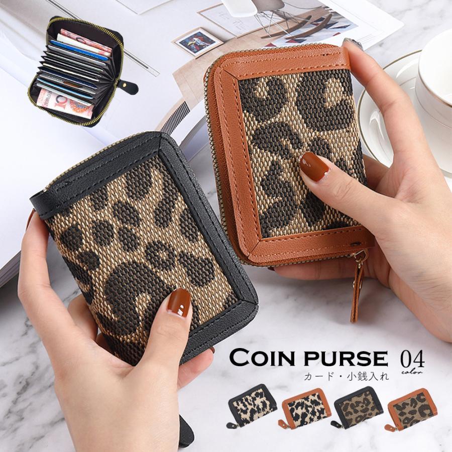 コインケース ヒョウ柄 小銭入れ カード入れ 名刺入れ ファスナー ポケット 収納 おしゃれ 使いやすい 人気