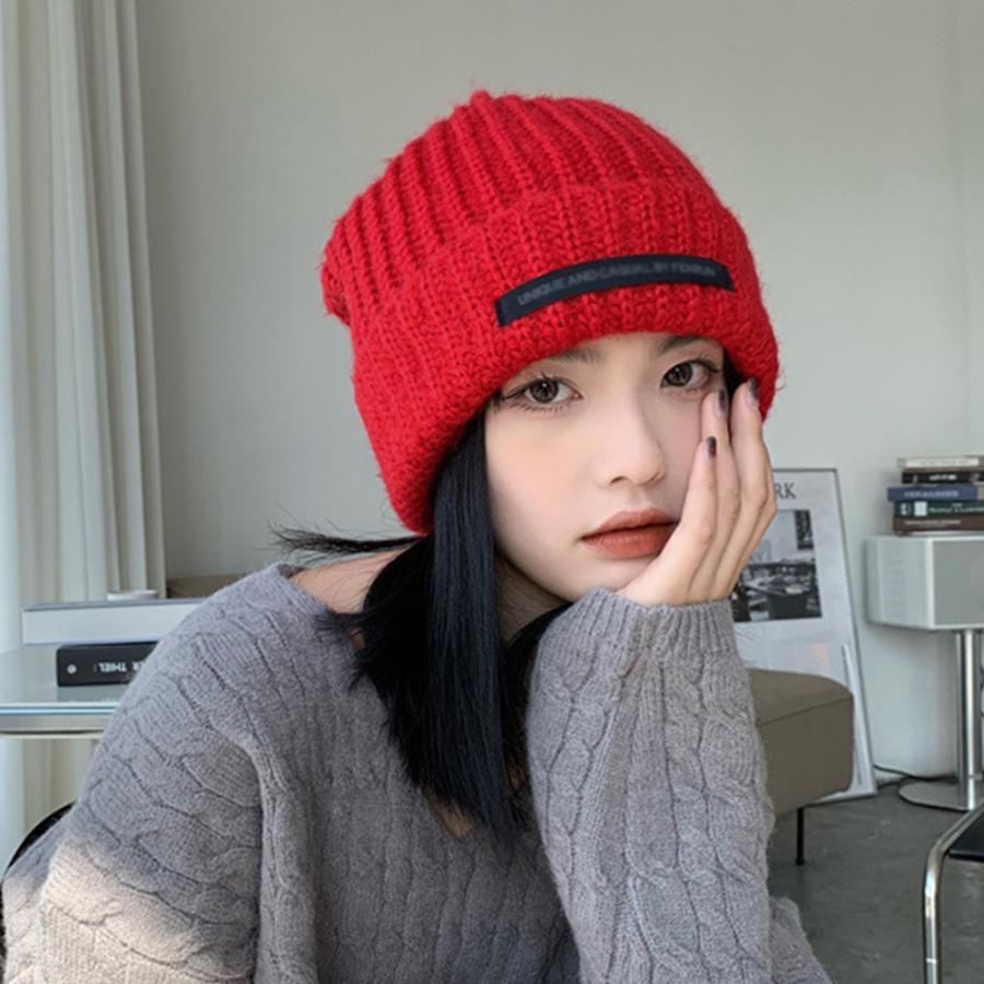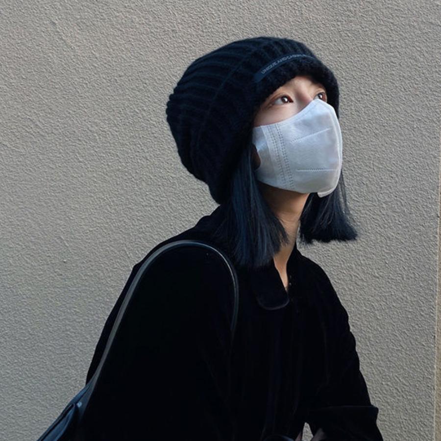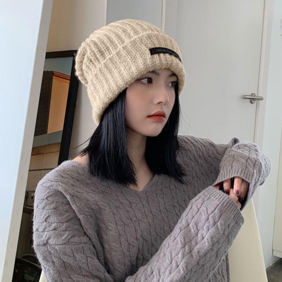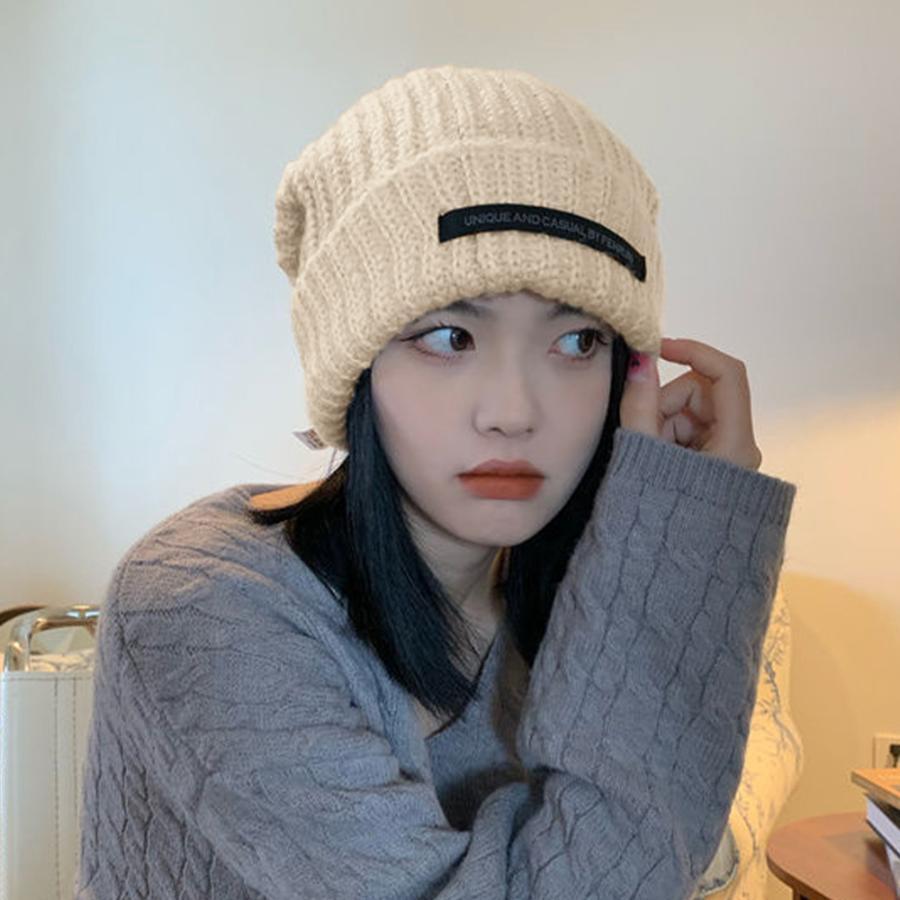 ニットキャップ リブ編み 英字ロゴ 折り畳み シルエット 小顔 カジュアル おしゃれ 可愛い ストリート 人気 お出掛け