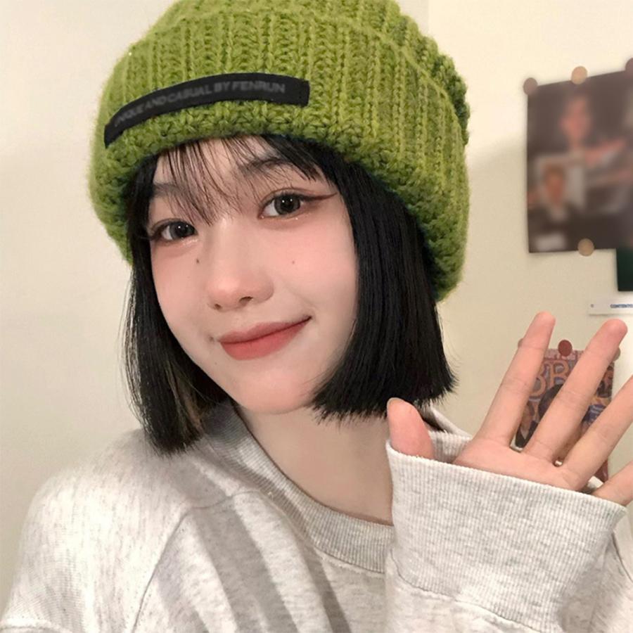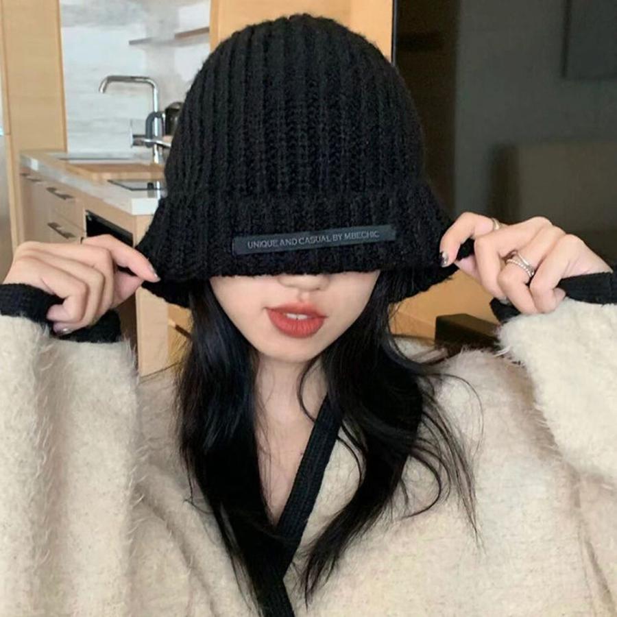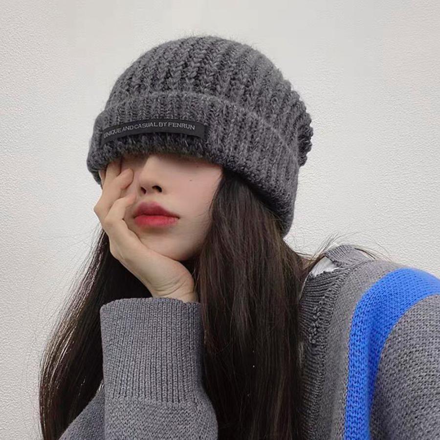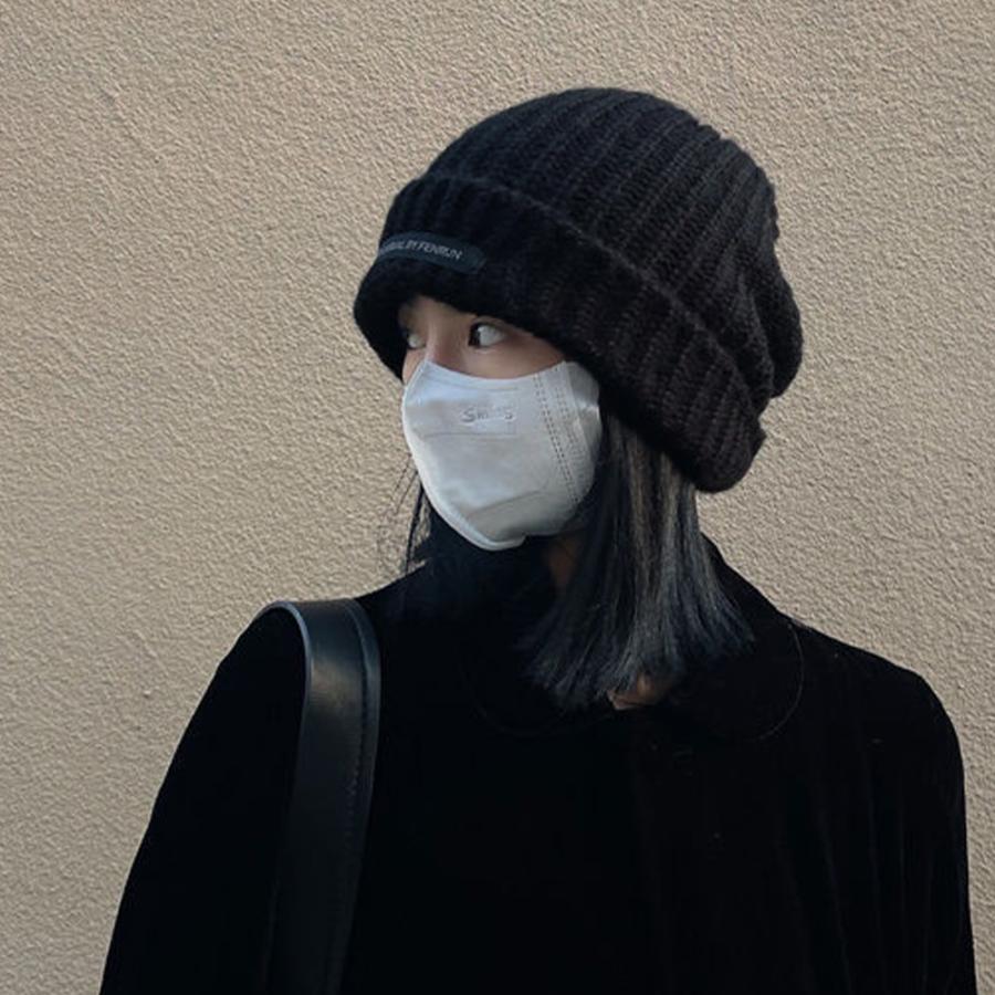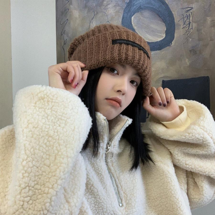 ニットキャップ リブ編み 英字ロゴ 折り畳み シルエット 小顔 カジュアル おしゃれ 可愛い ストリート 人気 お出掛け