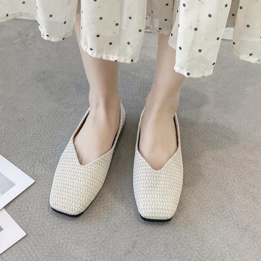 スクエアトゥ 痛くない バブーシュ プレーン 柔らかい メッシュ 通気性 カジュアル
