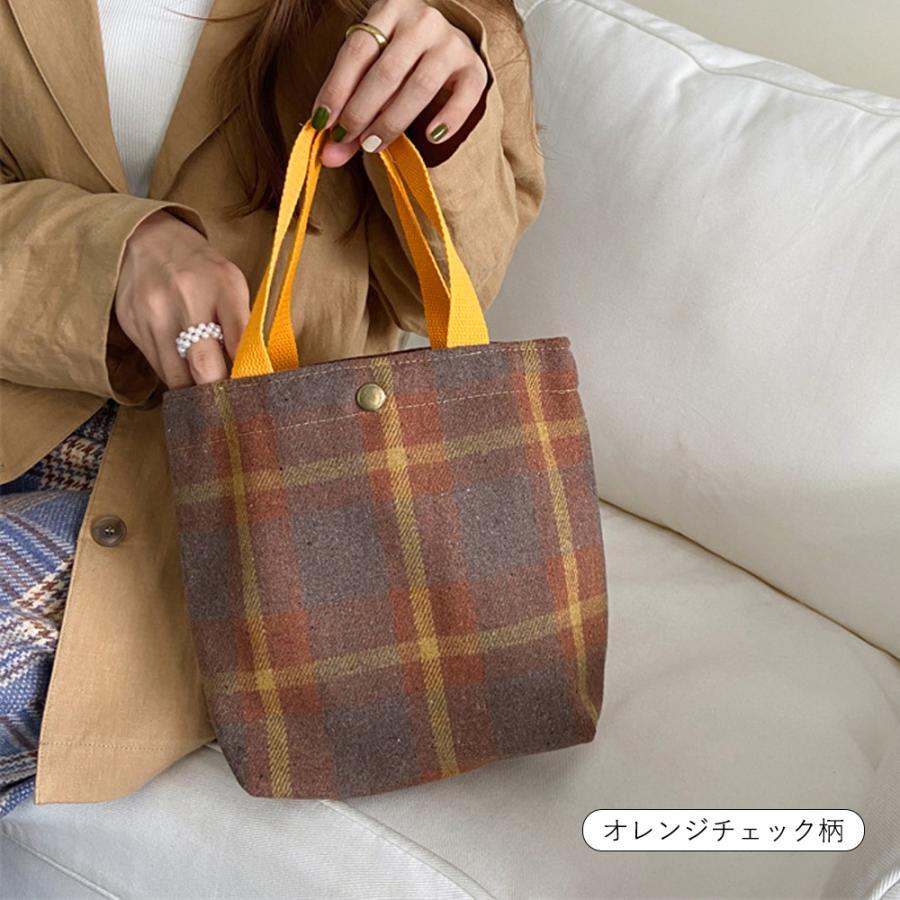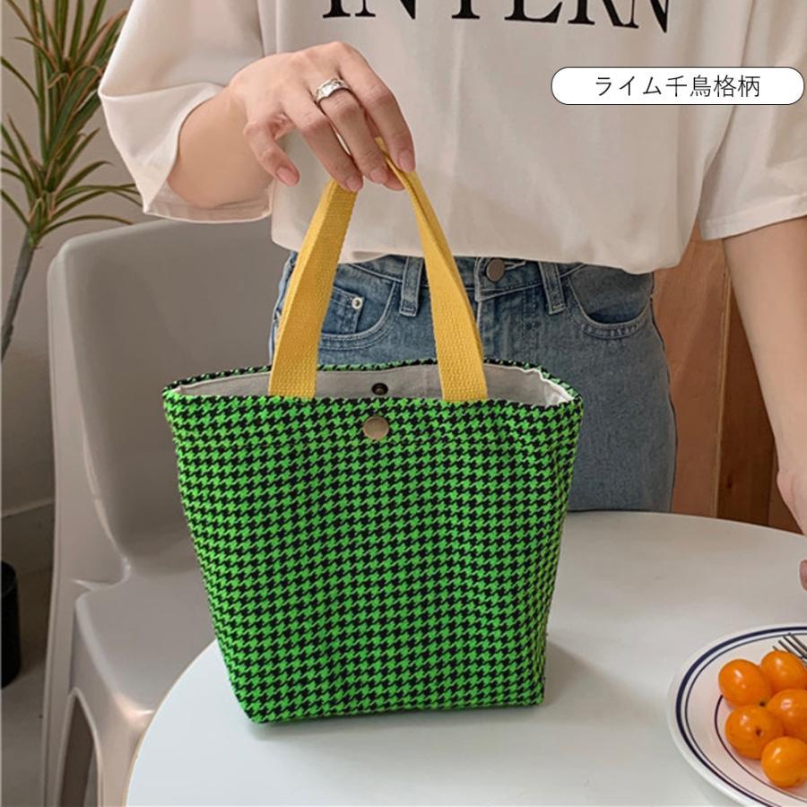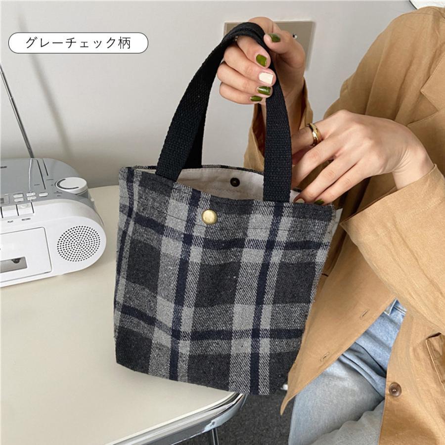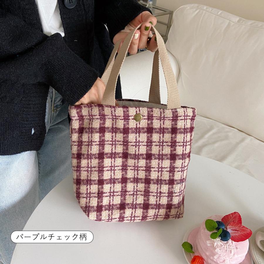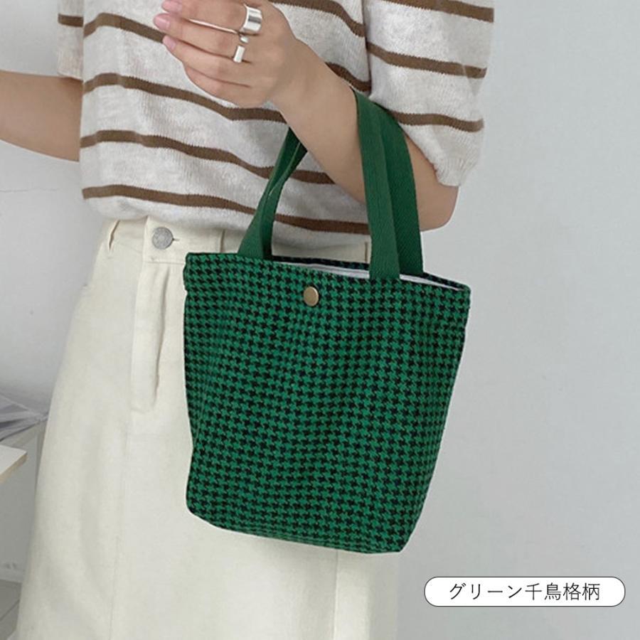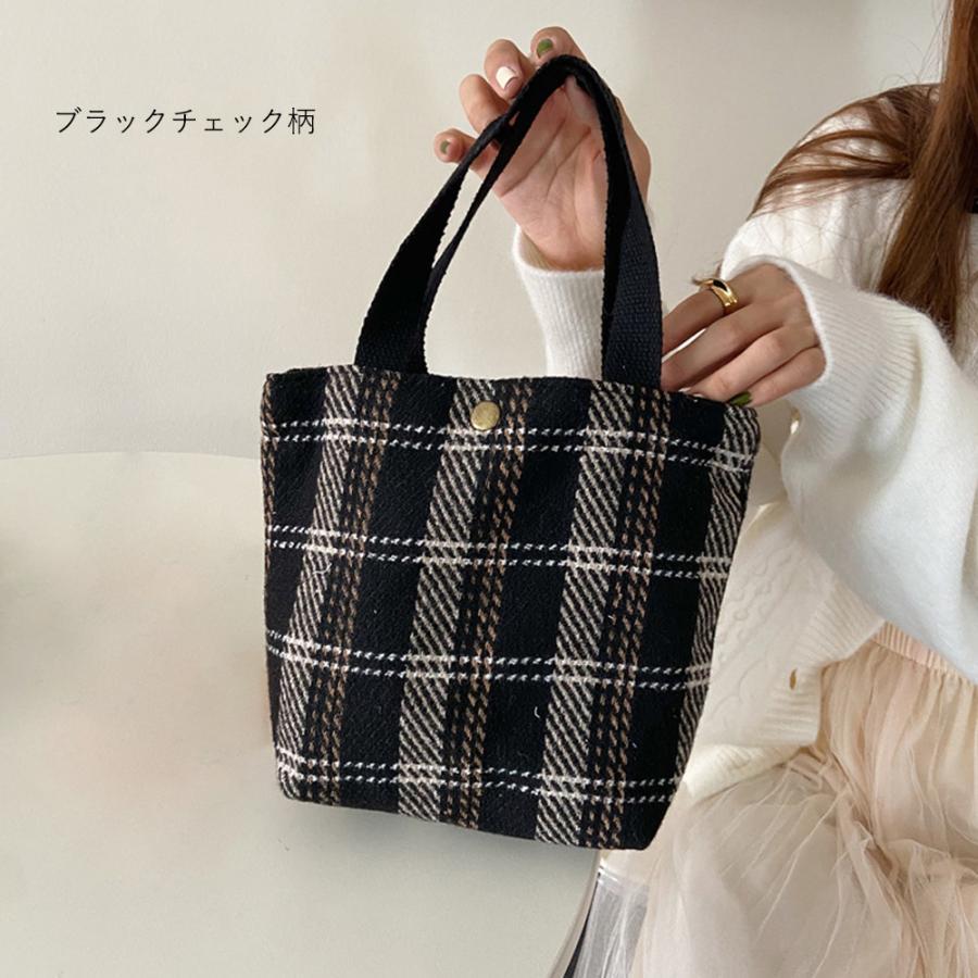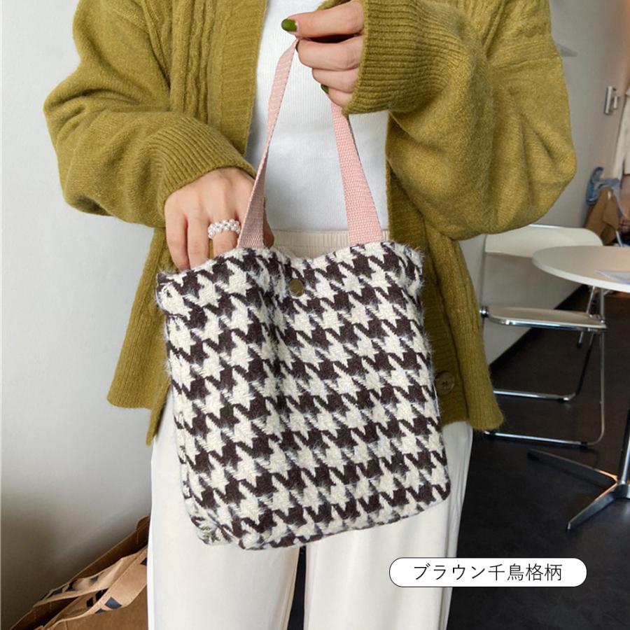 韓国 ハンドバッグ サブバッグ チェック柄 千鳥格柄 可愛い オシャレ シンプル 手提げ 収納バッグ お散歩バッグ 人気