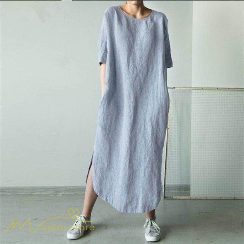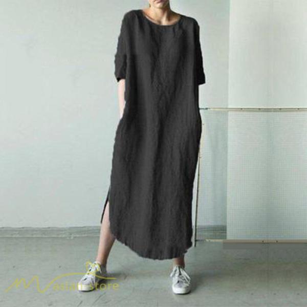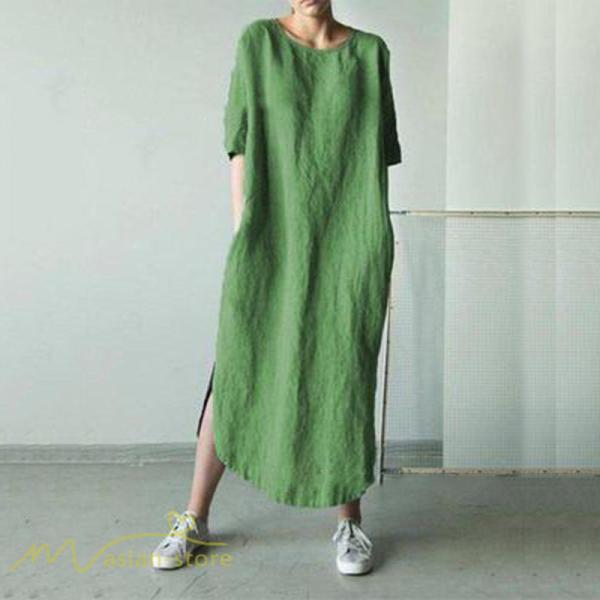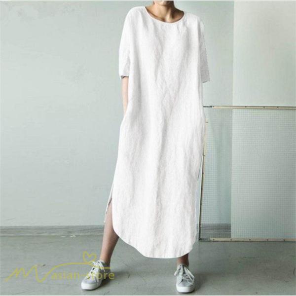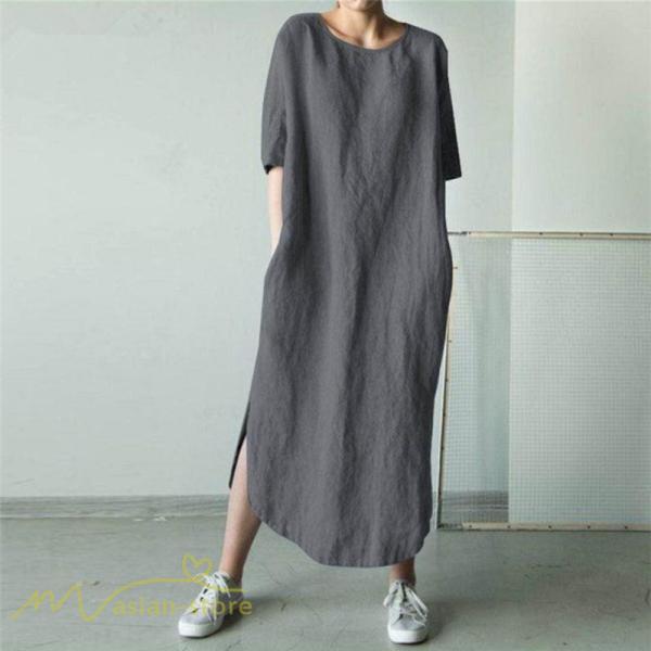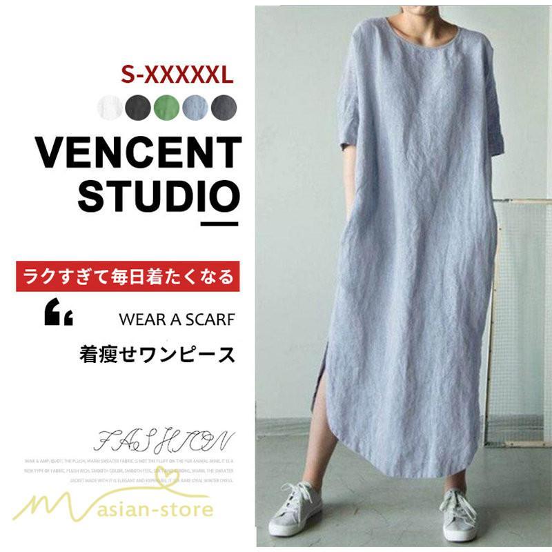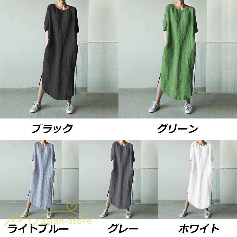 マキシ | ワンピース レディース 無地 ゆったり 半袖 ゆるワンピース 大きいサイズ 5XL ゆったり 30代 40代 体型カバー お出かけ 裾口スリット かわいい 日常感 20代