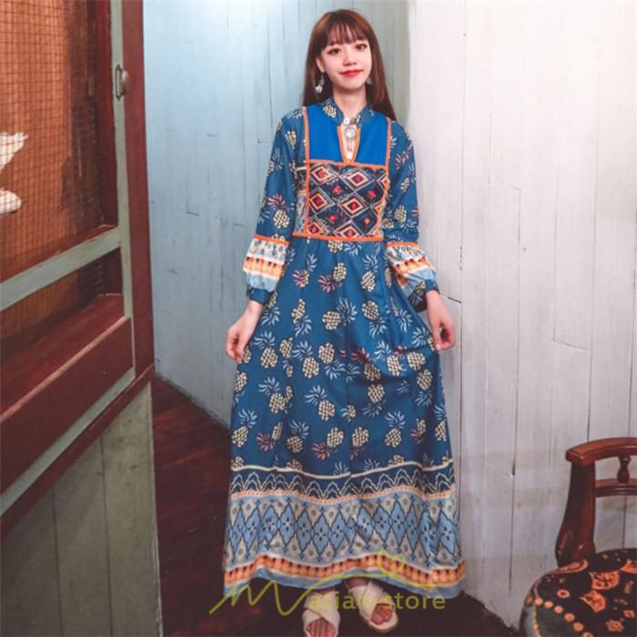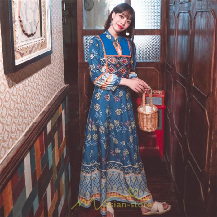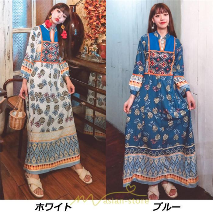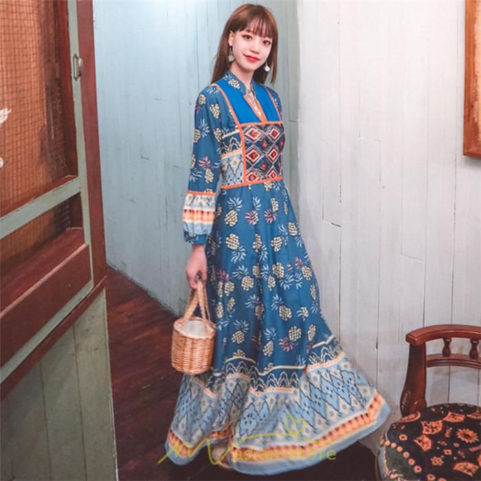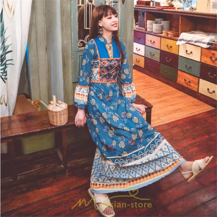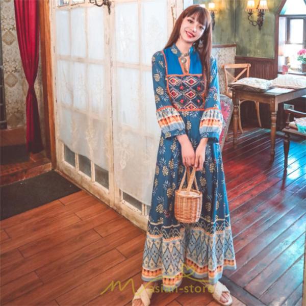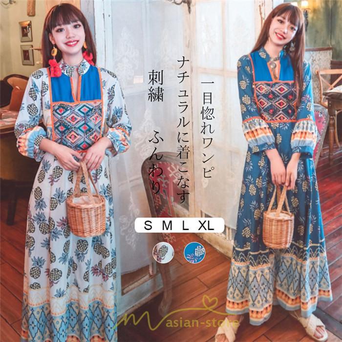 マキシ丈 ロング丈 文芸風 長袖 エスニック風 民族風 フレア ナチュラル フェミニン 可愛い 刺繍
