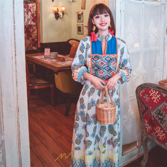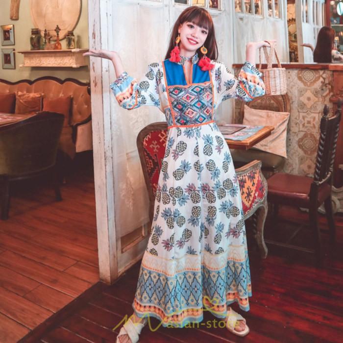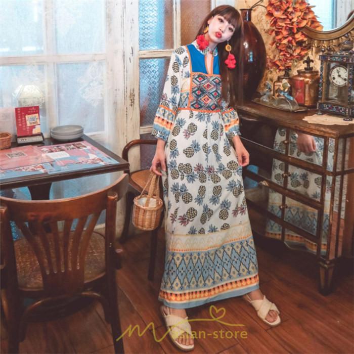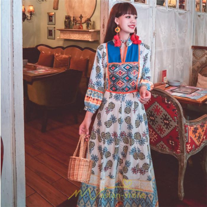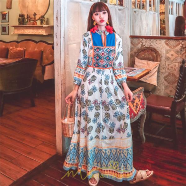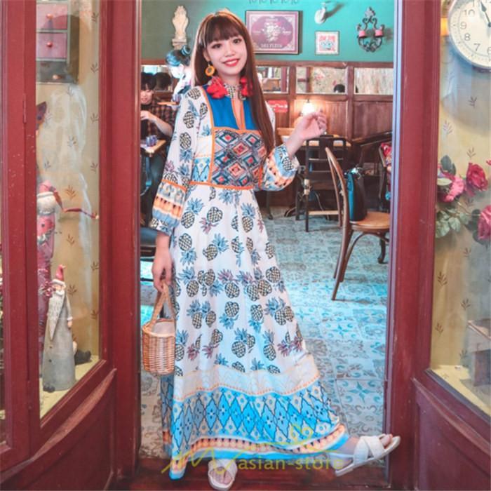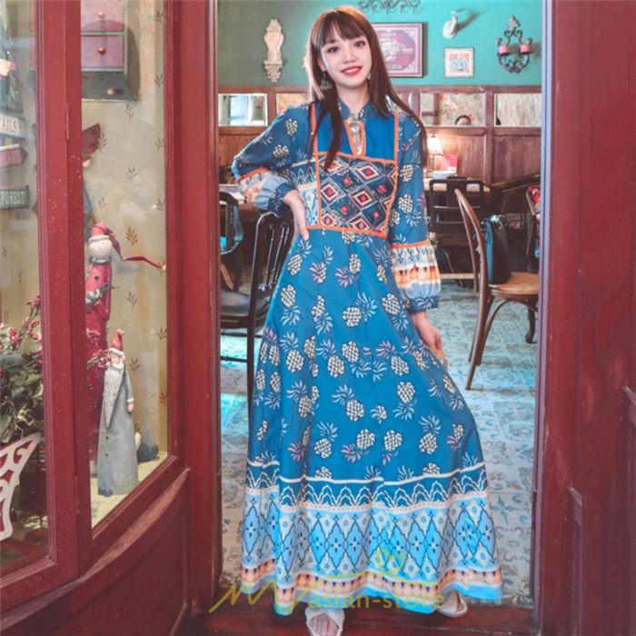 マキシ丈 ロング丈 文芸風 長袖 エスニック風 民族風 フレア ナチュラル フェミニン 可愛い 刺繍