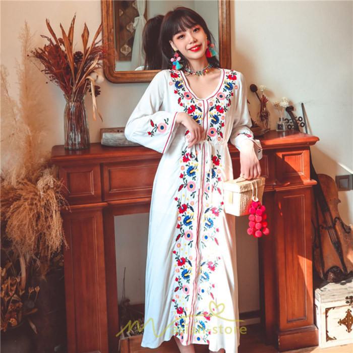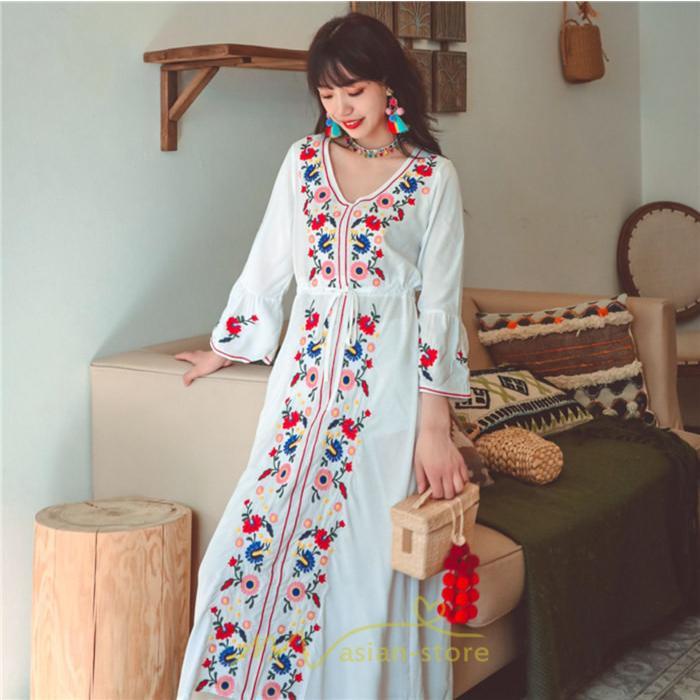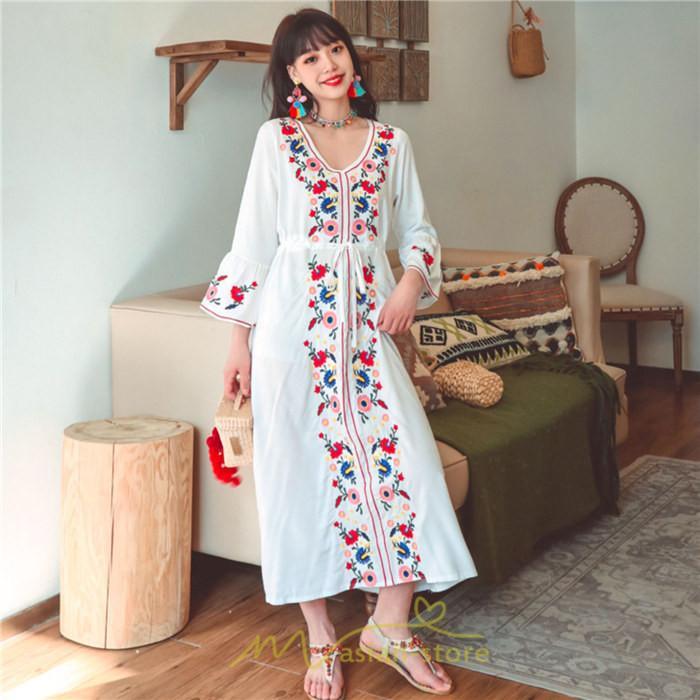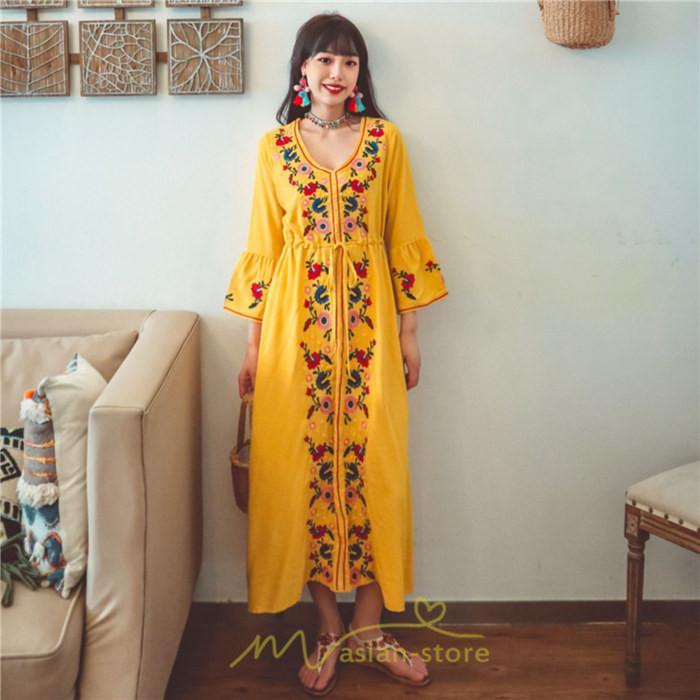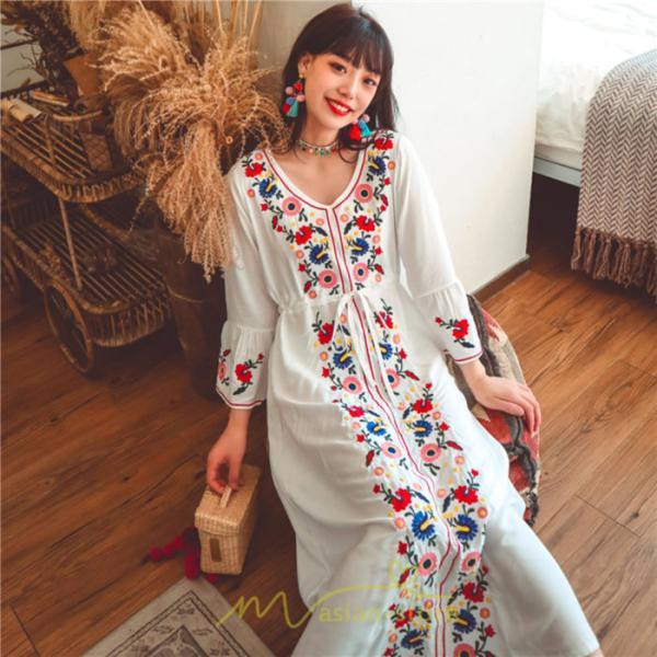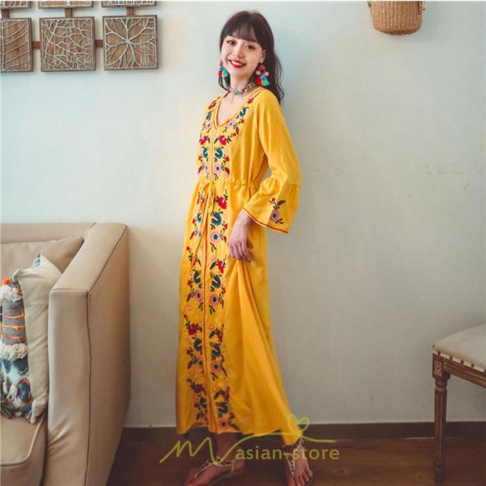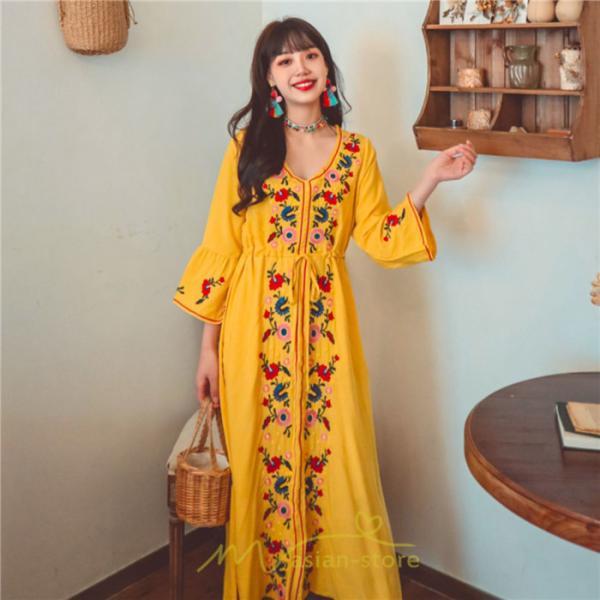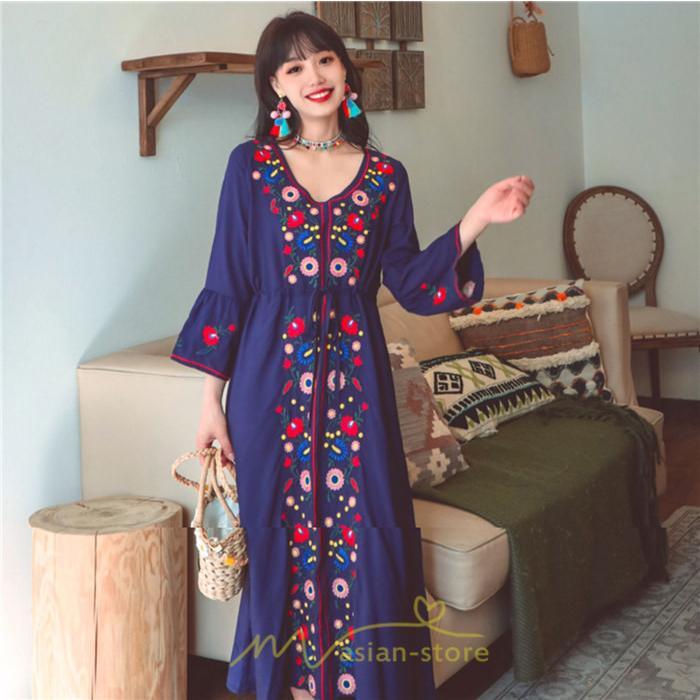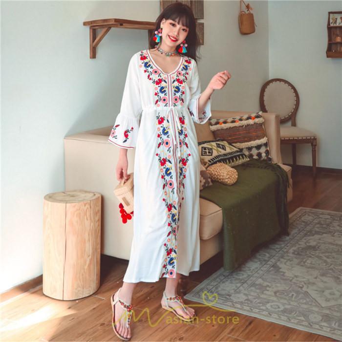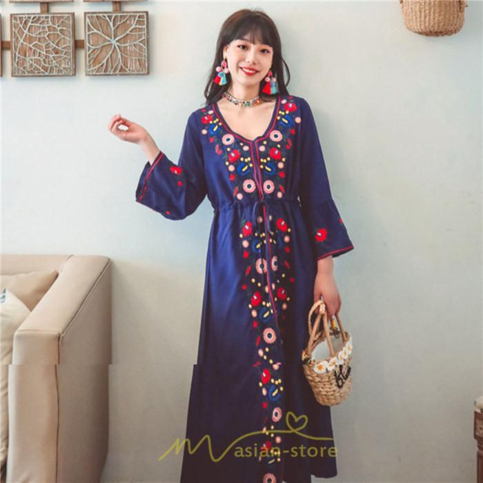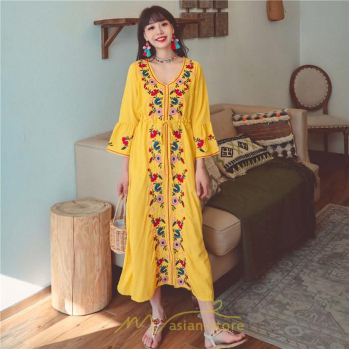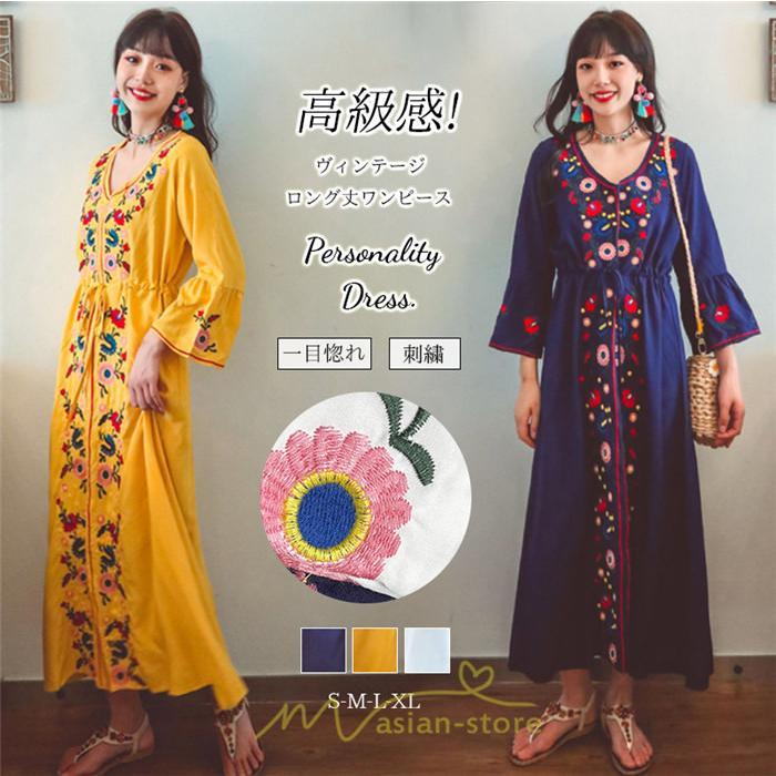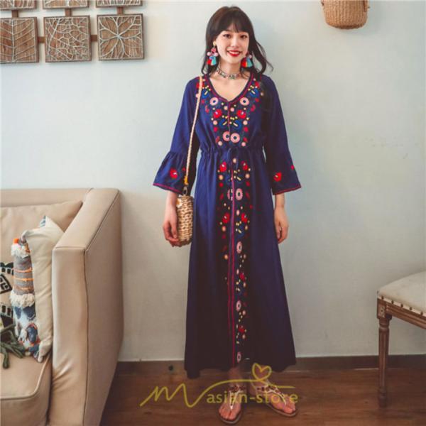 ロング丈 マキシ丈 エスニック リゾート ワンピ カジュアル 大人 夏 秋 Aライン 海外旅行