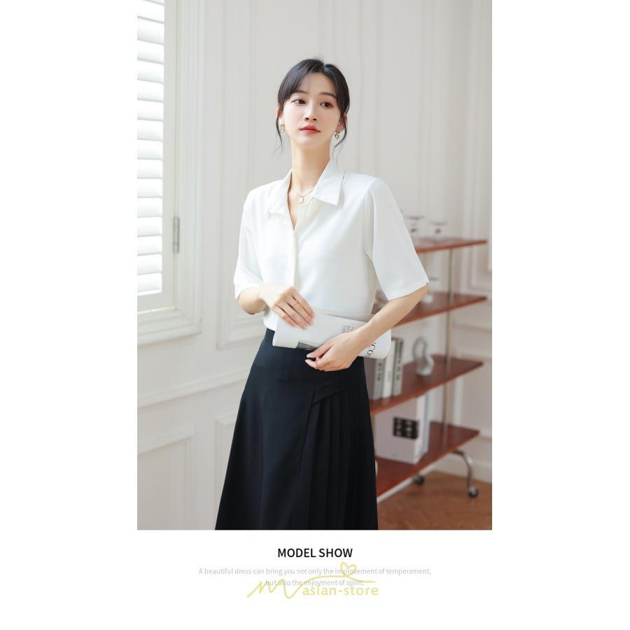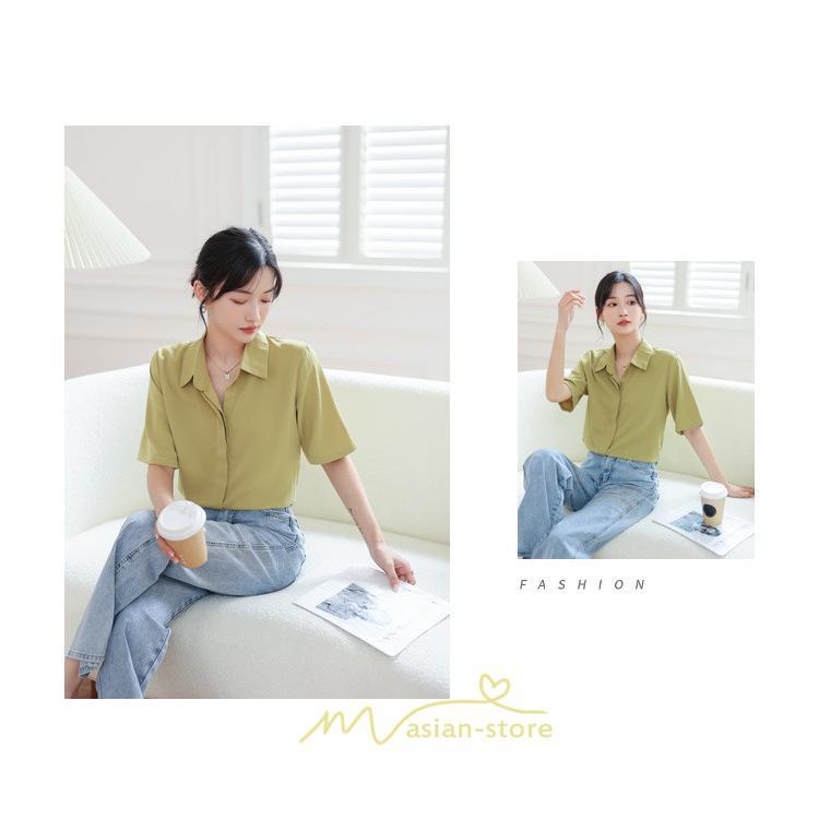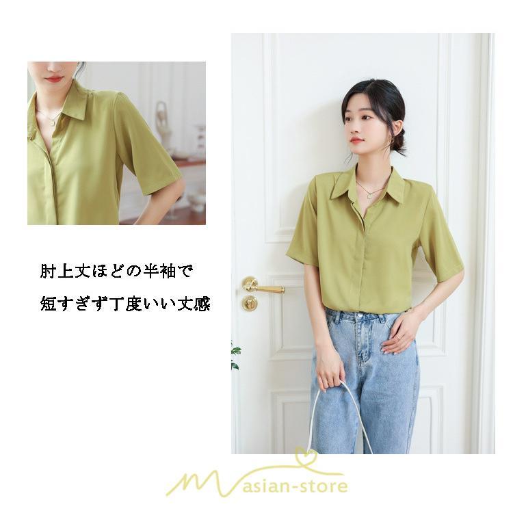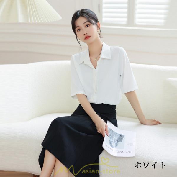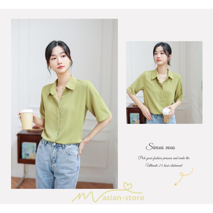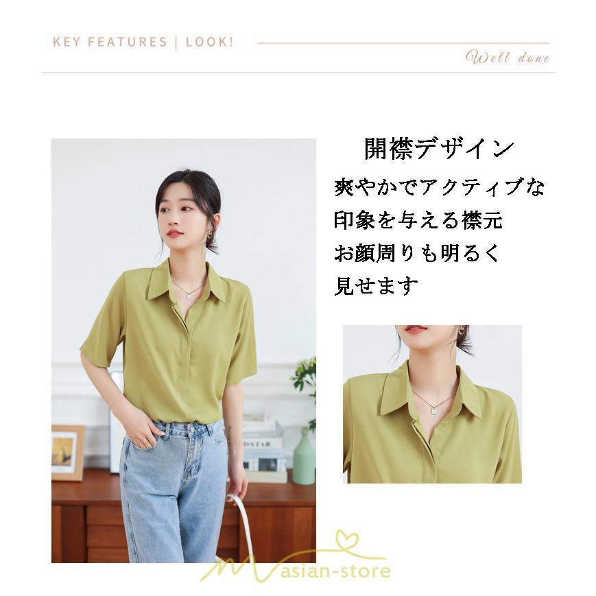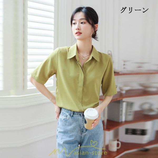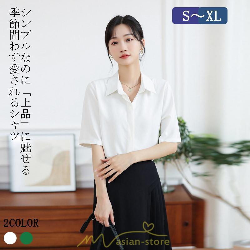シャツ・ブラウス | ブラウス シャツ オフィス レディース 白 緑 半袖 ビジネス カジュアル 制服 事務服 コスプレ シフォン 柔らかい 華奢見え ファッション 2022新作 開襟 通勤 OL