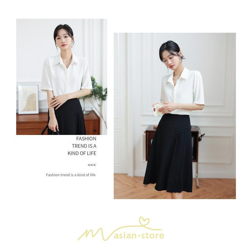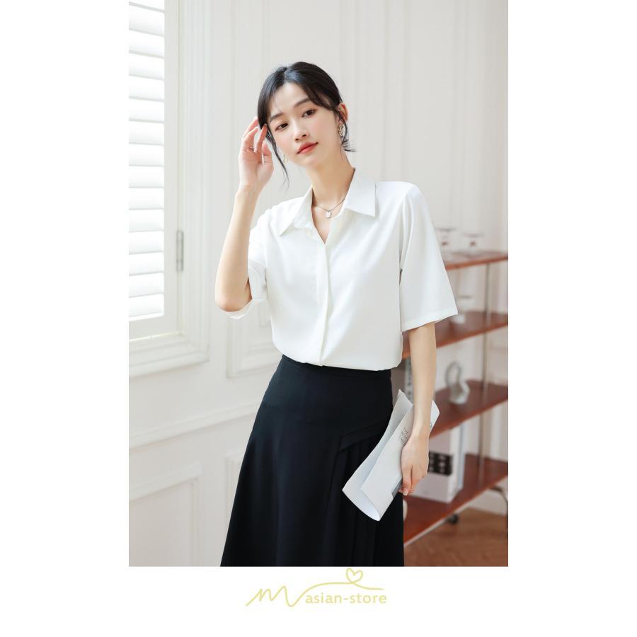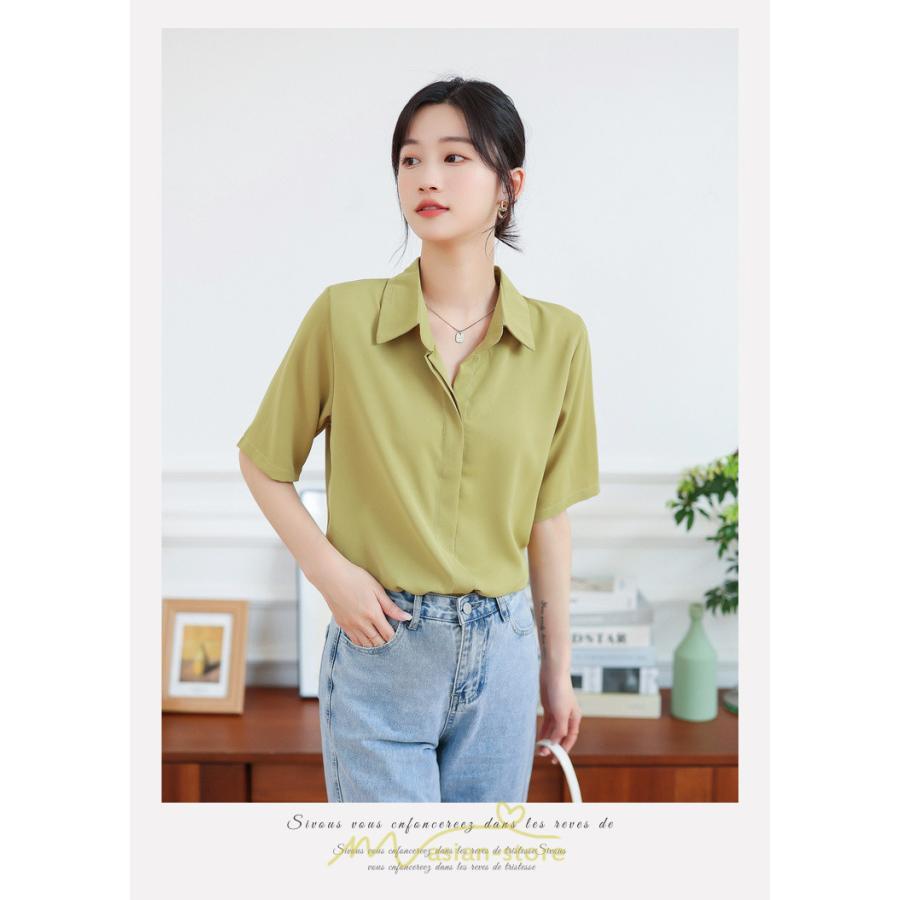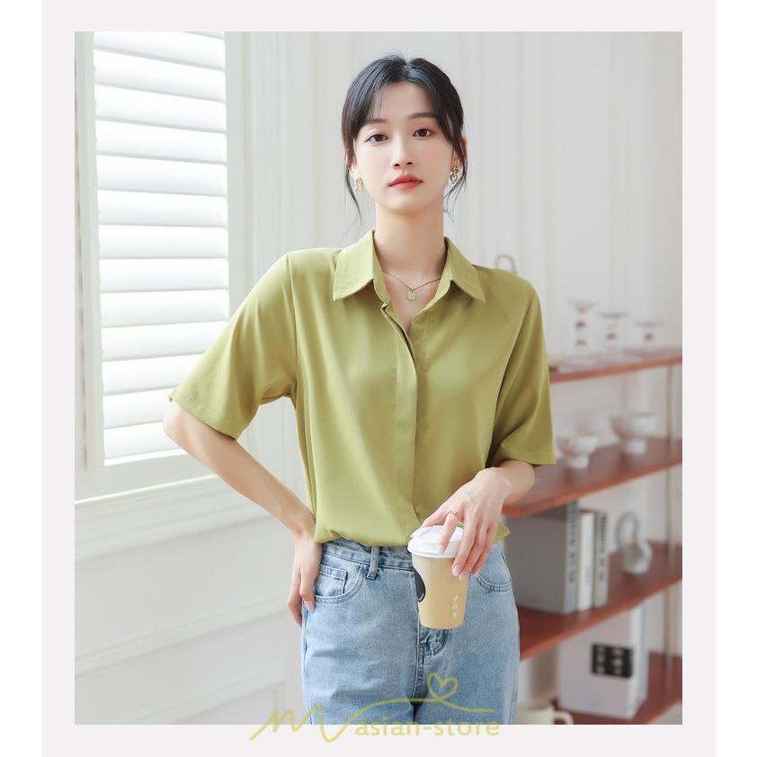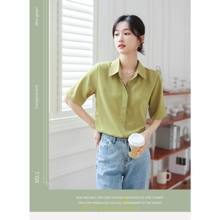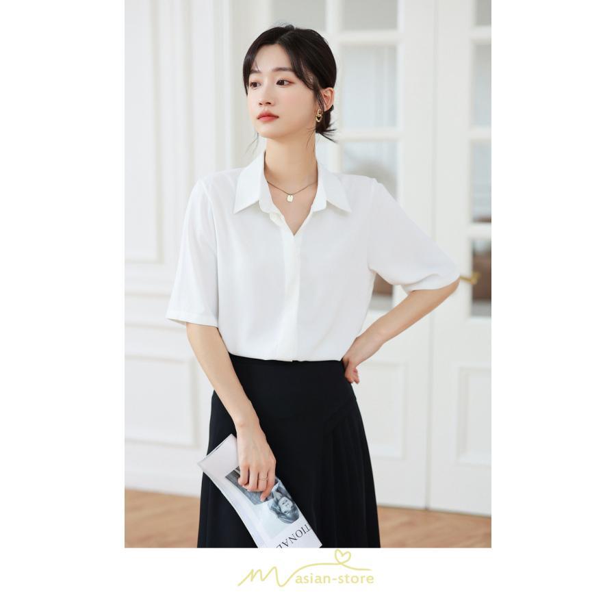 シャツ・ブラウス | ブラウス シャツ オフィス レディース 白 緑 半袖 ビジネス カジュアル 制服 事務服 コスプレ シフォン 柔らかい 華奢見え ファッション 2022新作 開襟 通勤 OL