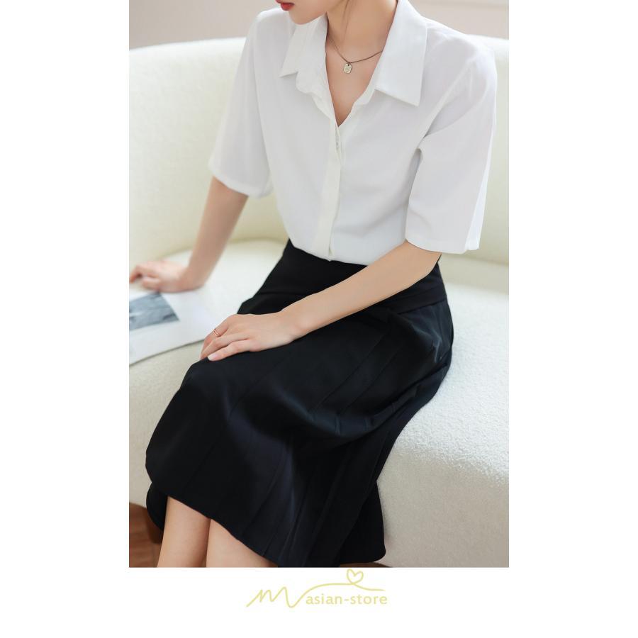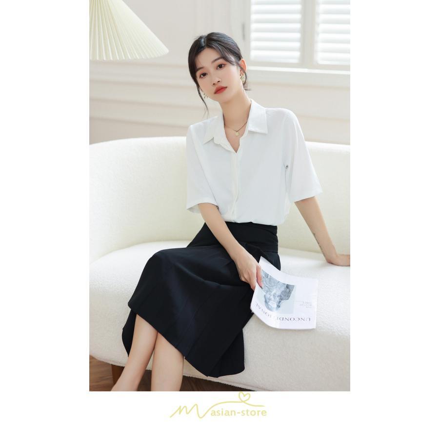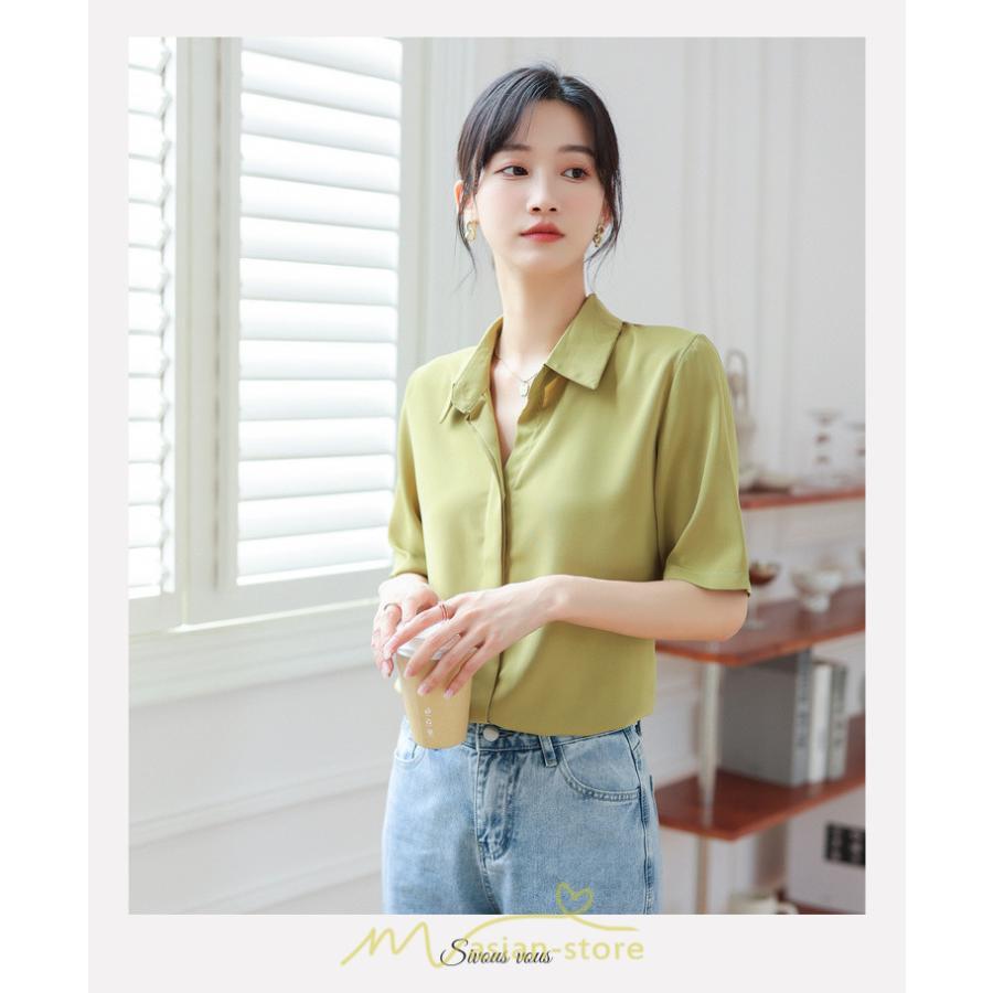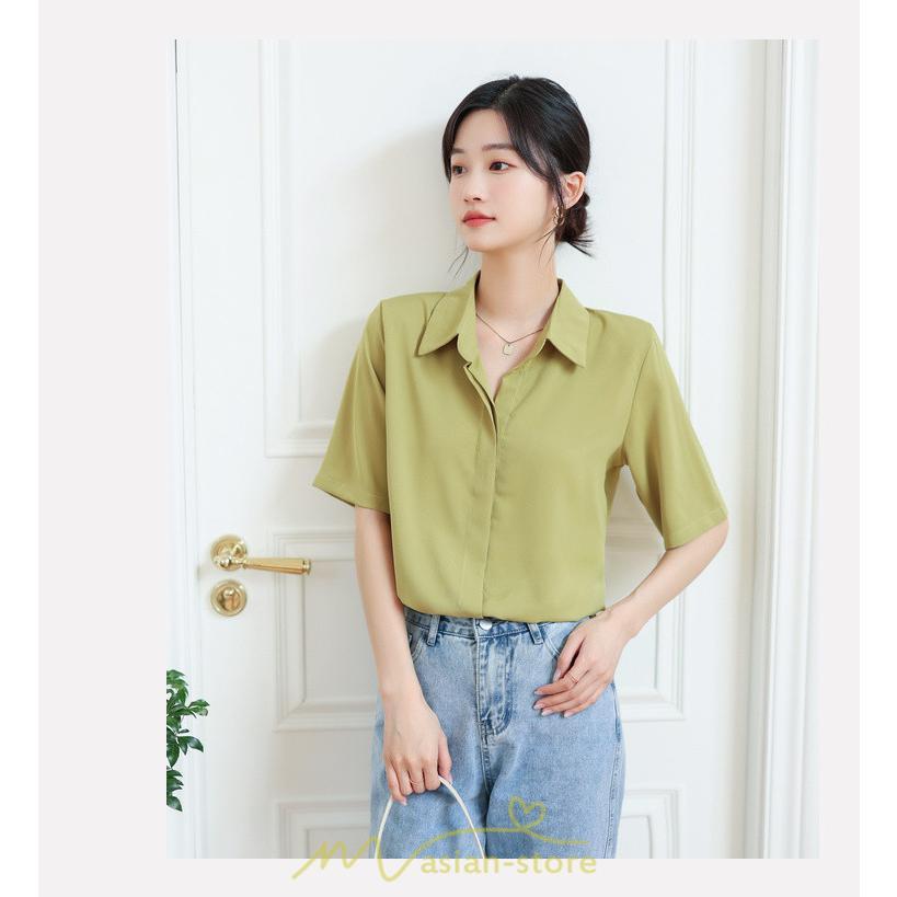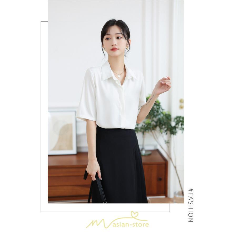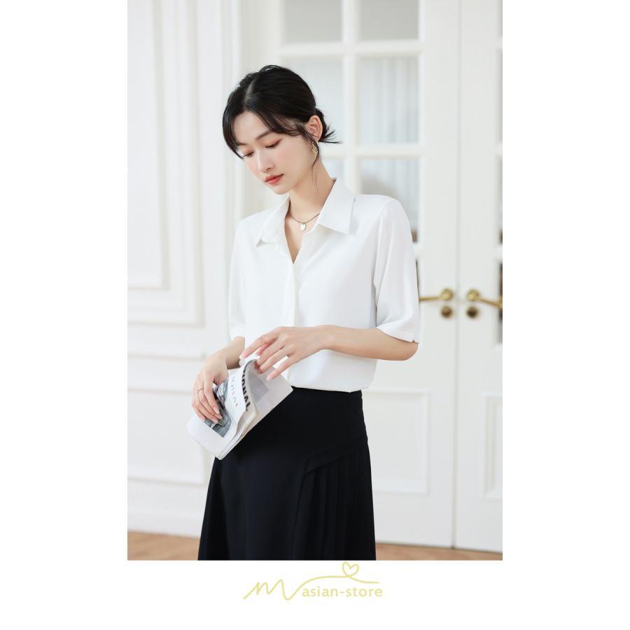 シャツ・ブラウス | ブラウス シャツ オフィス レディース 白 緑 半袖 ビジネス カジュアル 制服 事務服 コスプレ シフォン 柔らかい 華奢見え ファッション 2022新作 開襟 通勤 OL