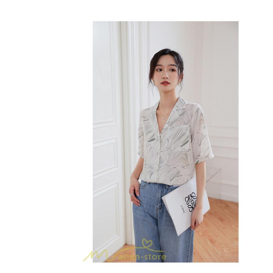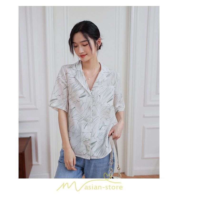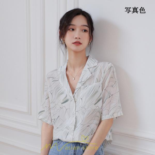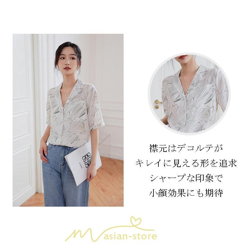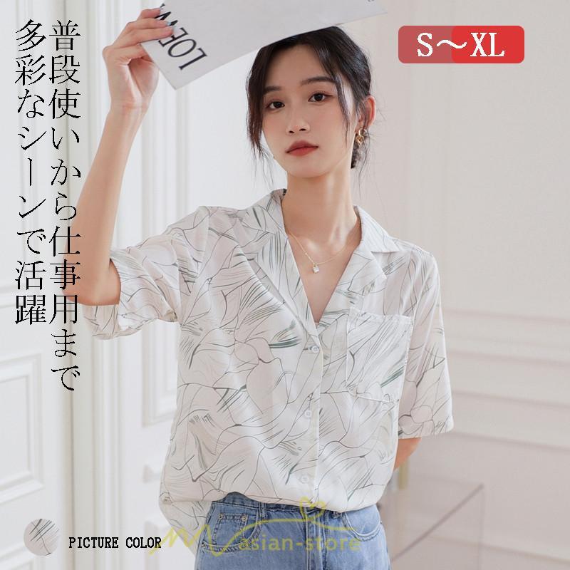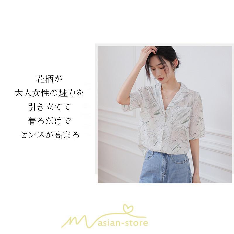 シャツ 花柄シャツ 花柄 半袖 カジュアル お出かけ 通勤 ビジネス OL Vネック 着痩せ 新作 ファッション