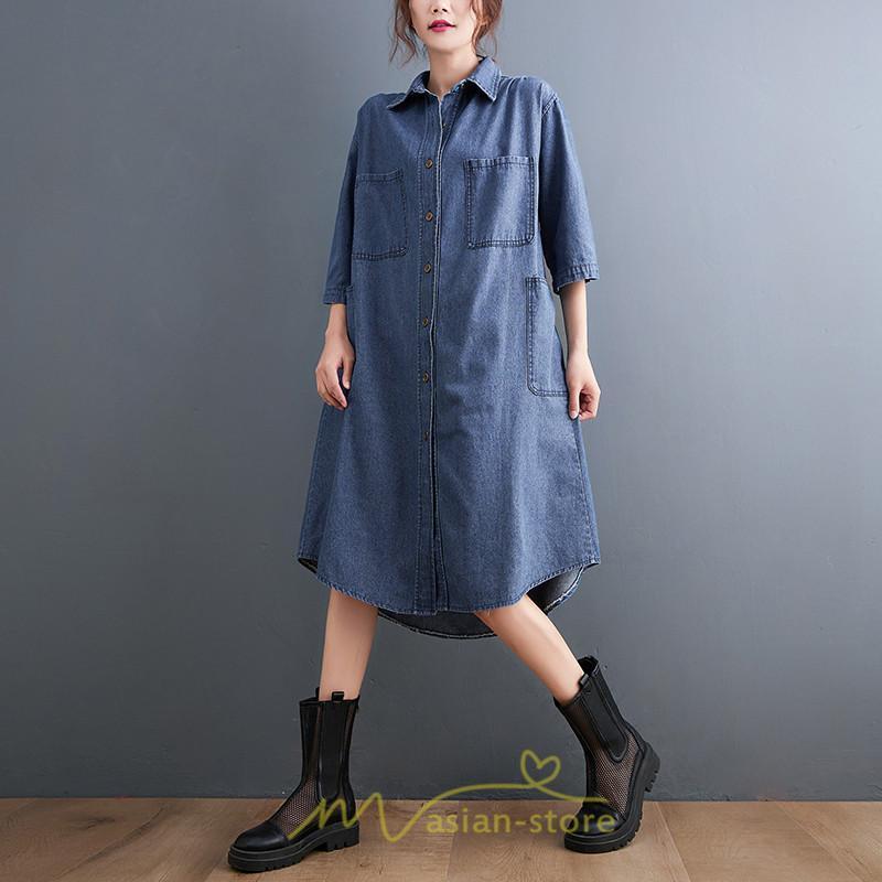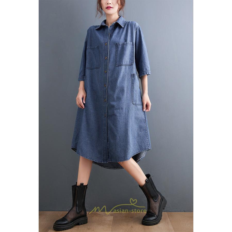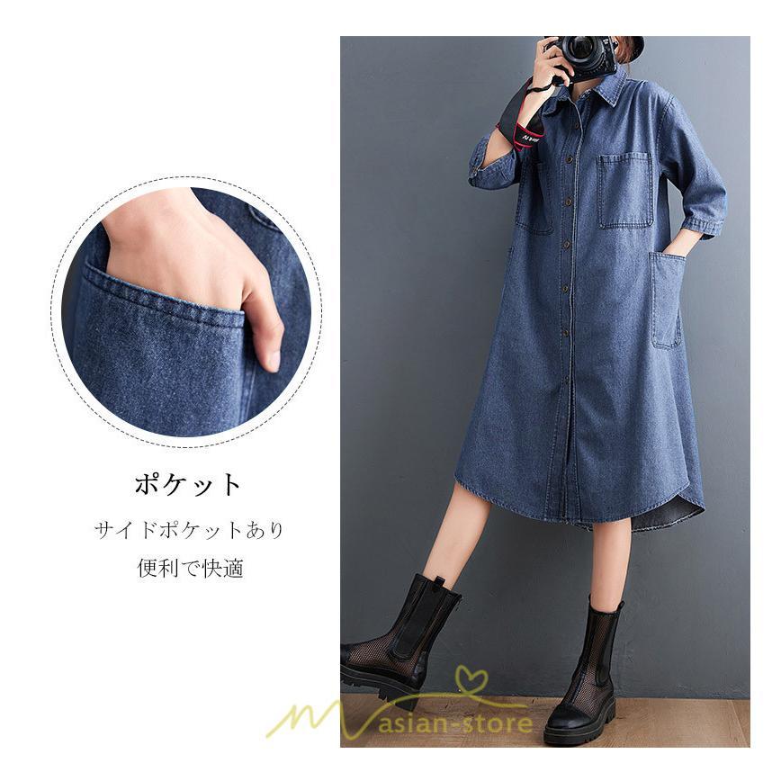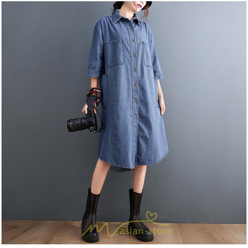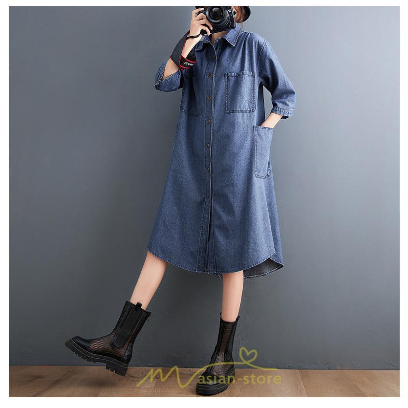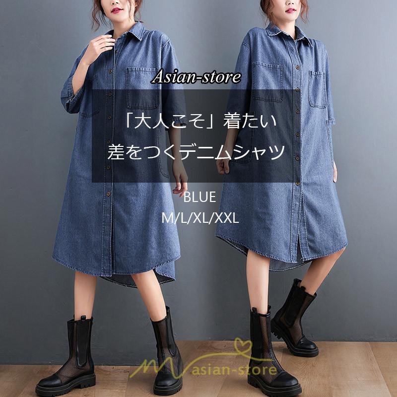 シャツ・ブラウス | デニム ロングシャツ シャツワンピ レディース 長袖 シャツ ロング ミモレ丈 脚長効果 大きいサイズ 体型カバー 着痩せ 20代30代40代50代