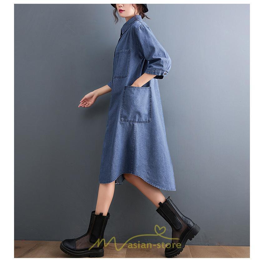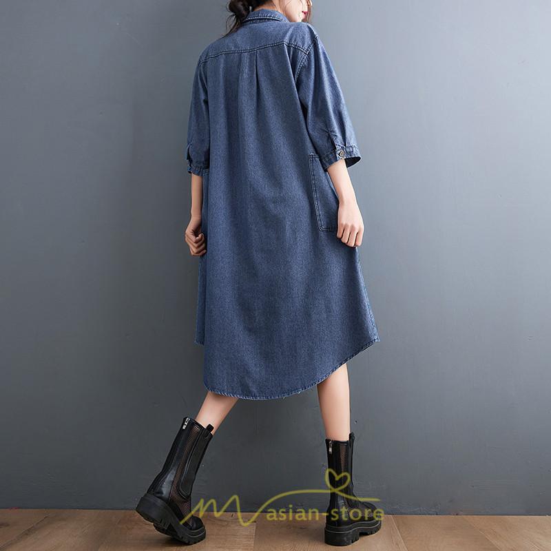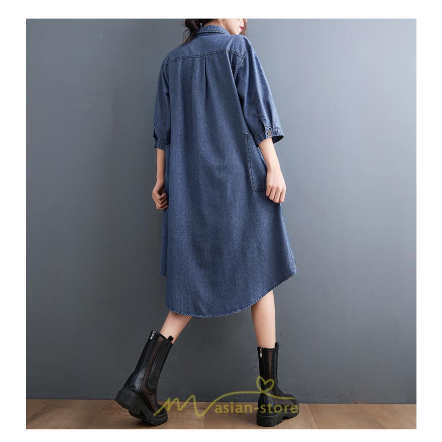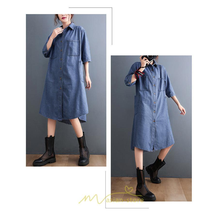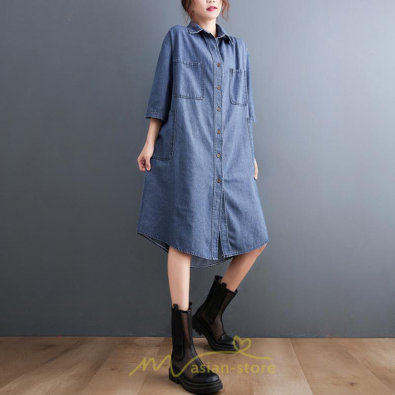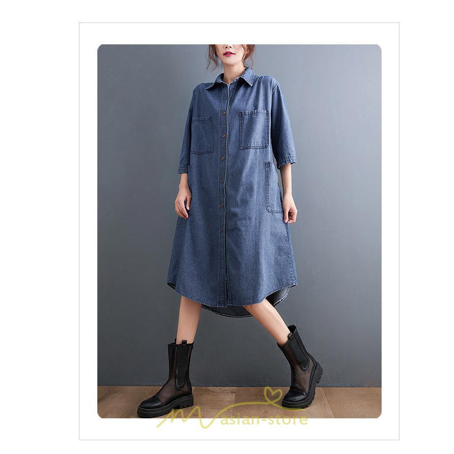 シャツ・ブラウス | デニム ロングシャツ シャツワンピ レディース 長袖 シャツ ロング ミモレ丈 脚長効果 大きいサイズ 体型カバー 着痩せ 20代30代40代50代