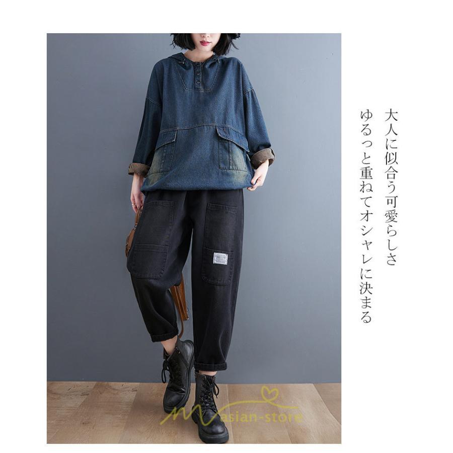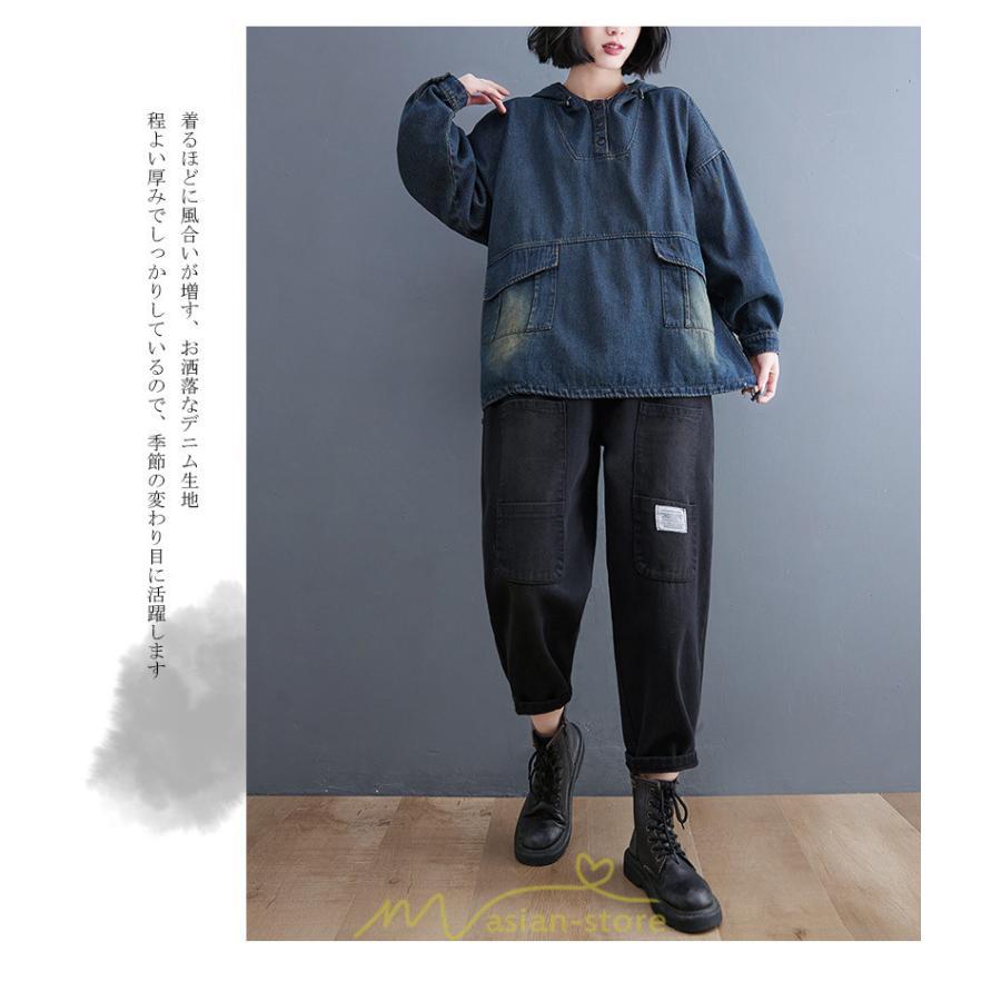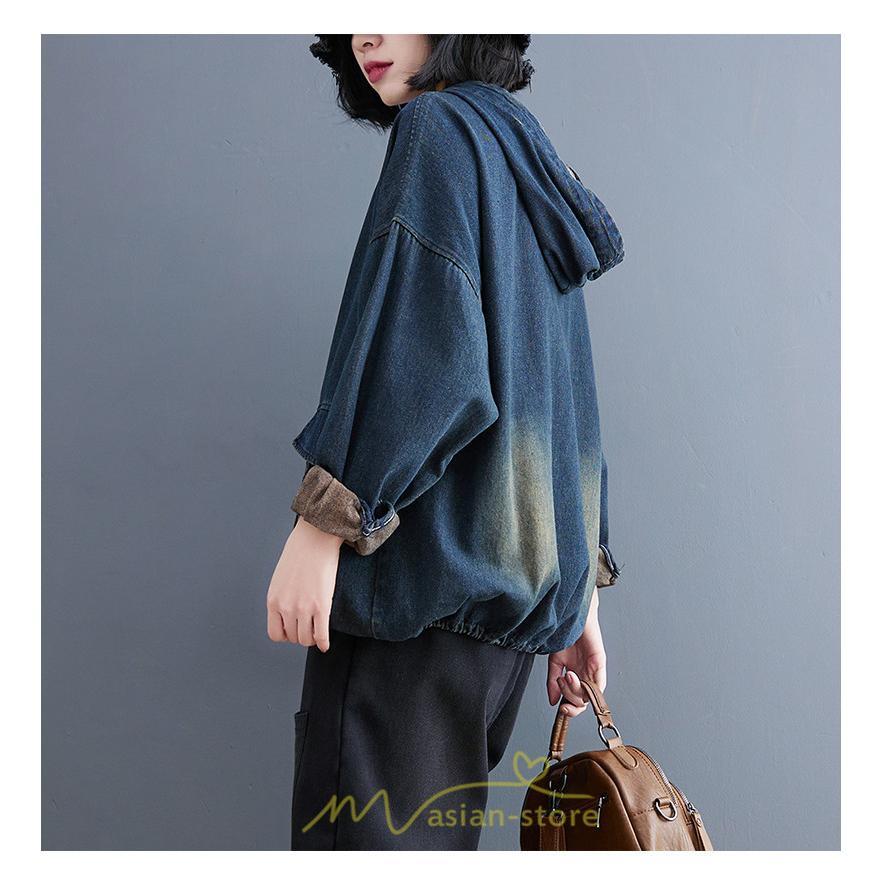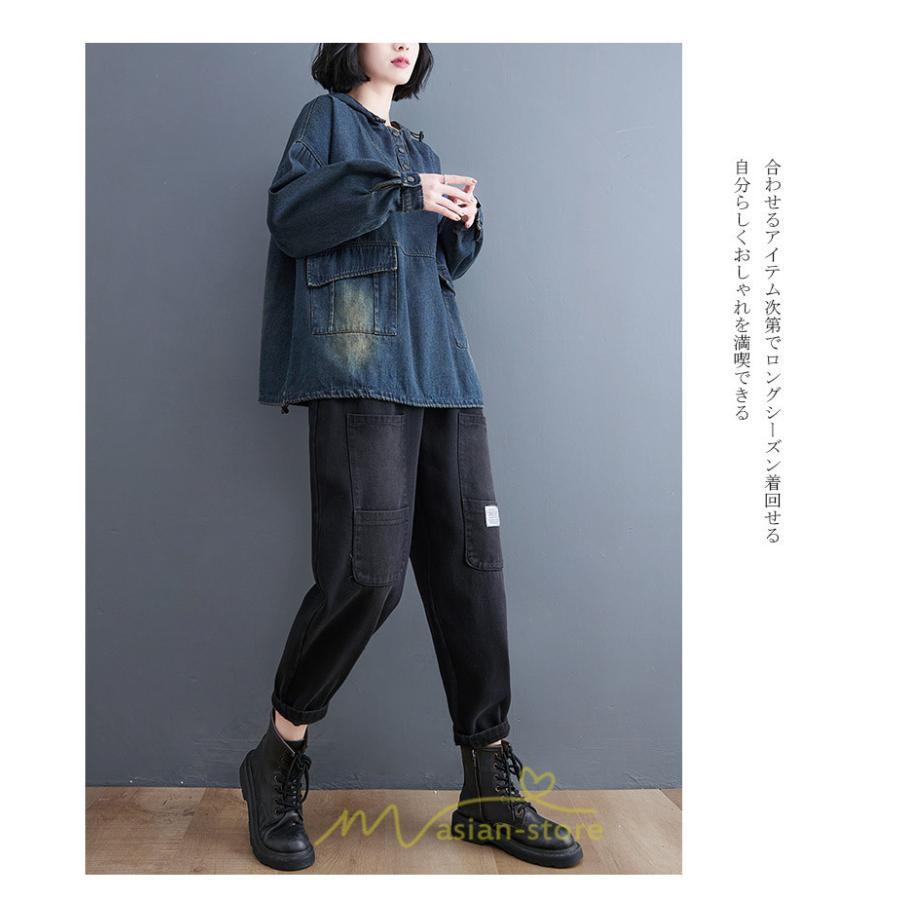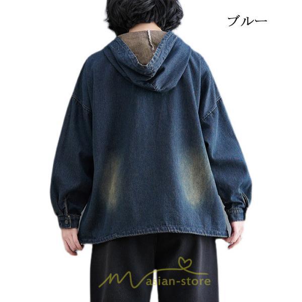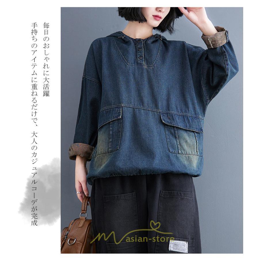 シャツ・ブラウス | デニムシャツ レディース長袖 トップス ブラウス ブルー 春 秋 カジュアル シャツ おしゃれ 可愛い マタニティ フード カジュアル 大きいサイズ 送料無料