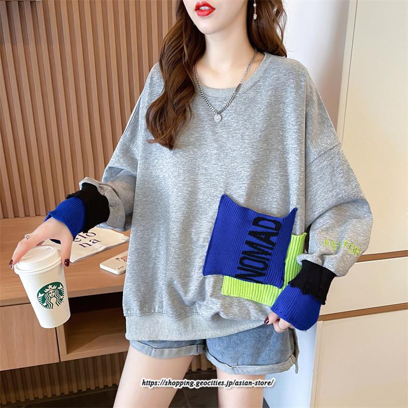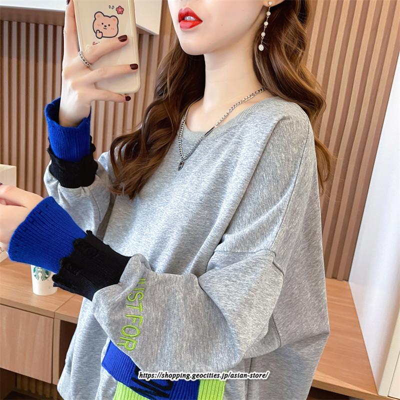 パーカー | トレーナー レディース プルオーバー クルーネック 長袖 トップス Tシャツ スウェット ゆったり トップス 大きいサイズ 秋冬 送料無料 おしゃれ 韓国