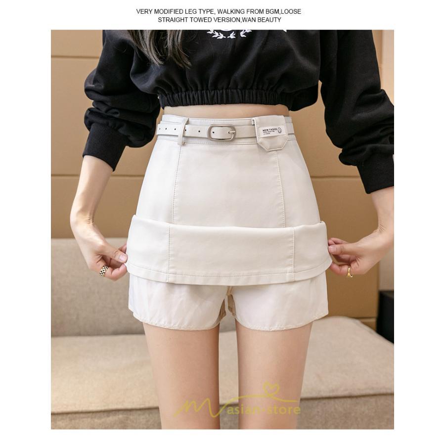 定番の仲間入りしたレザースカートは、潔くハンサムに