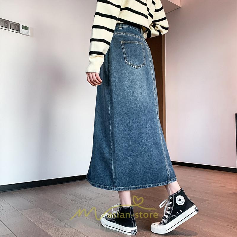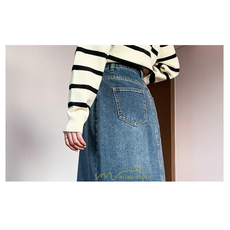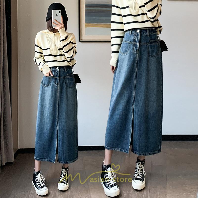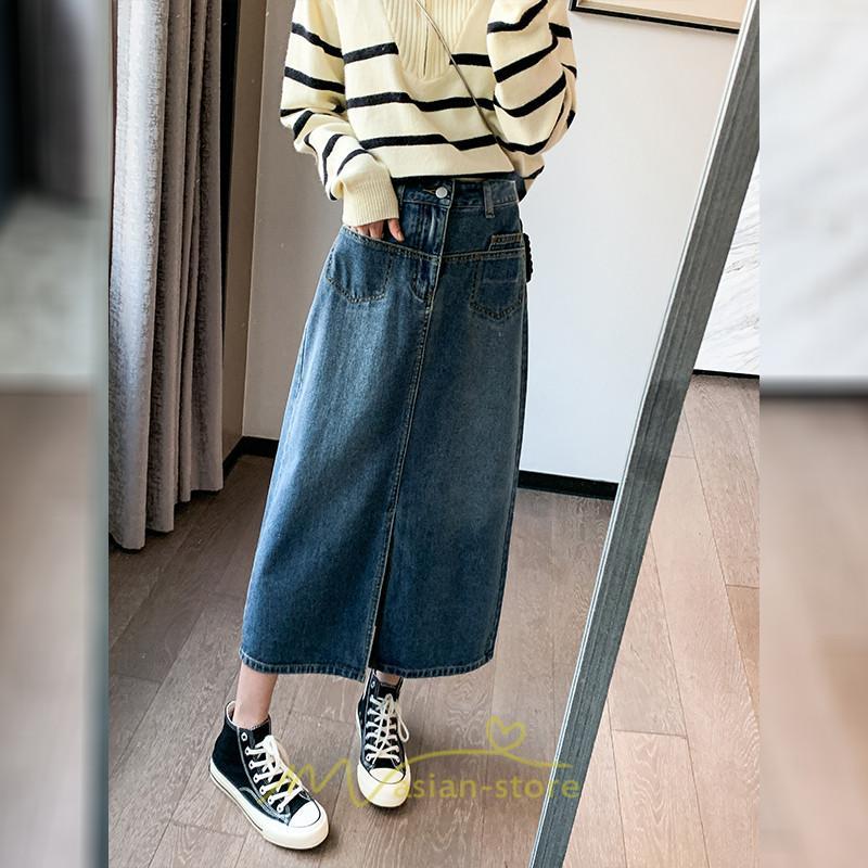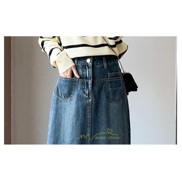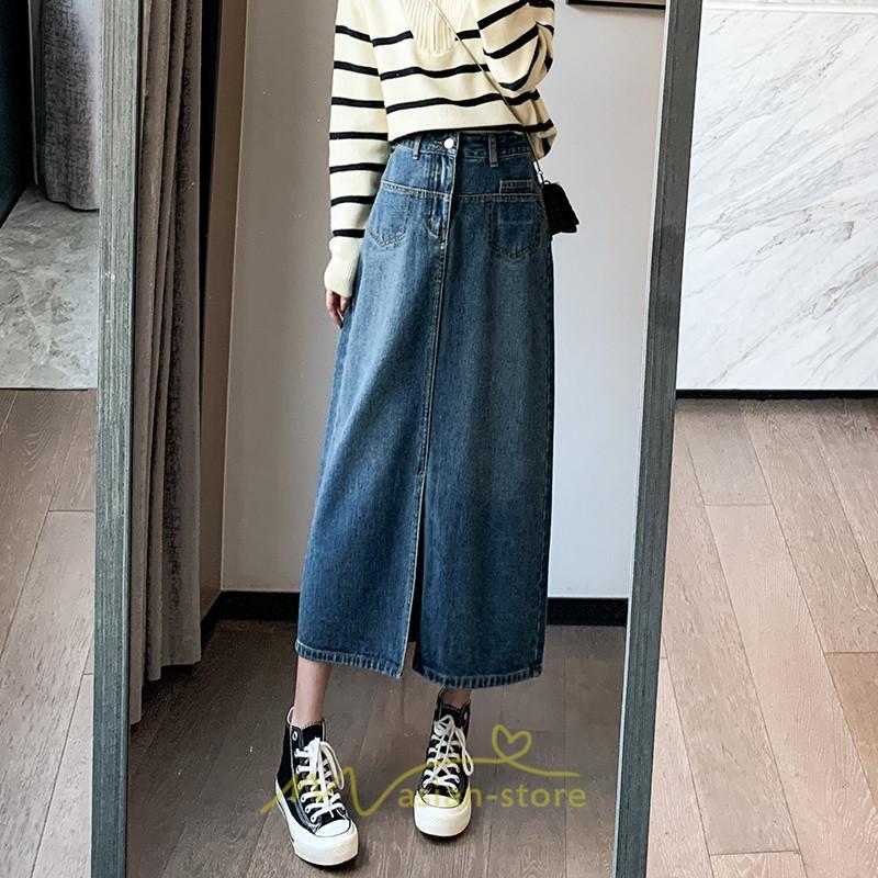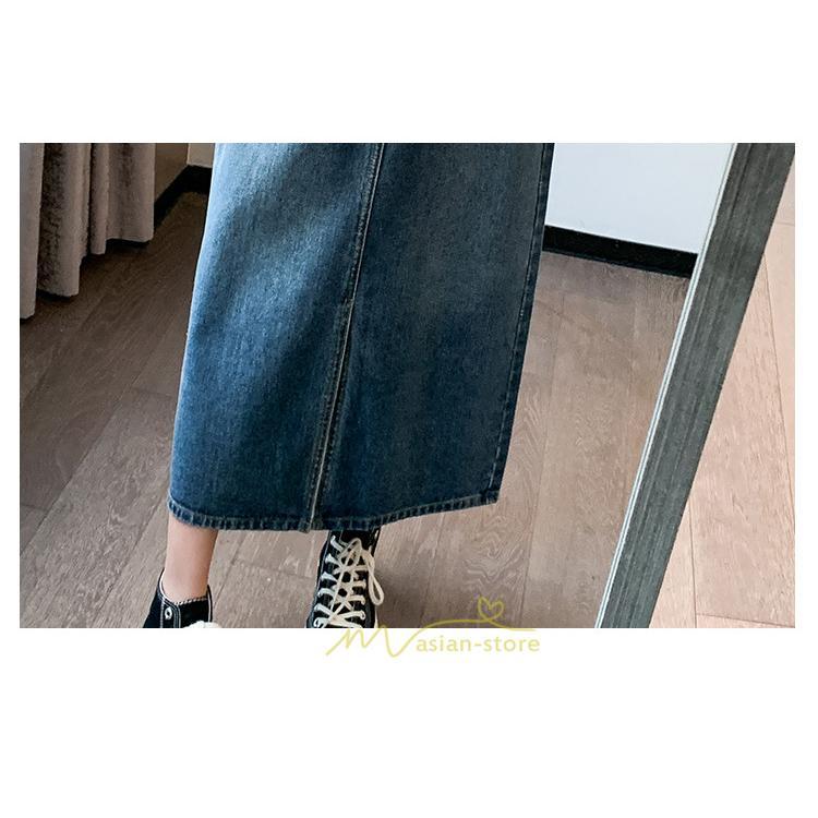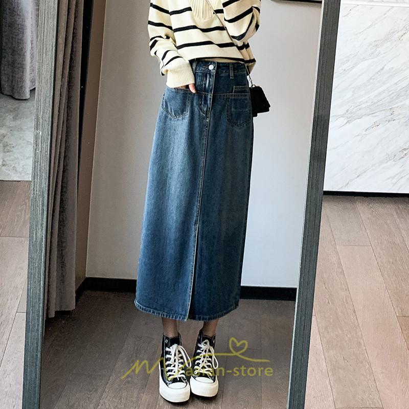 着痩せ 無地 ロング丈 ロング ミモレ丈 ミモレ丈スカート スリムスカート デニムスカート