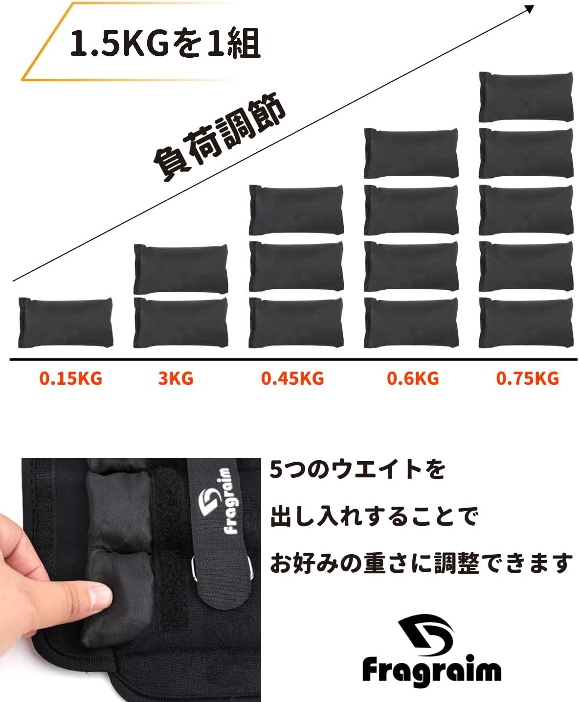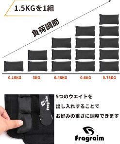 Fragraim アンクルウェイト 5段階調節 2個組最小1.5kg-最大8kg 筋トレウェイト 重り 手首 足首 パワーアンクル 重さ調整可能 片足0.75kg/1.5kg/2kg/2.5kg/3kg/4kg ソフト 速乾 通気 ウォーキング ジョギング 体幹トレーニング エクササイズ 男女兼用 初心者