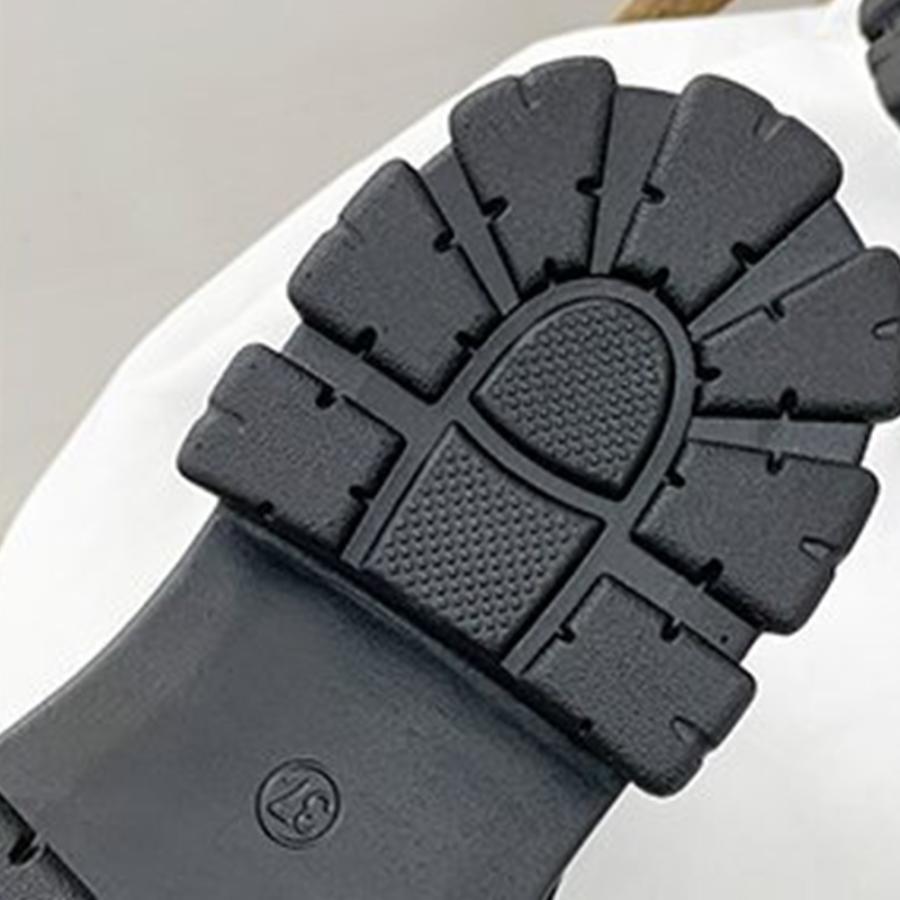 ローヒールで歩きやすく、長時間履いていても疲れにくく痛くなりにくい厚底ソールになっている