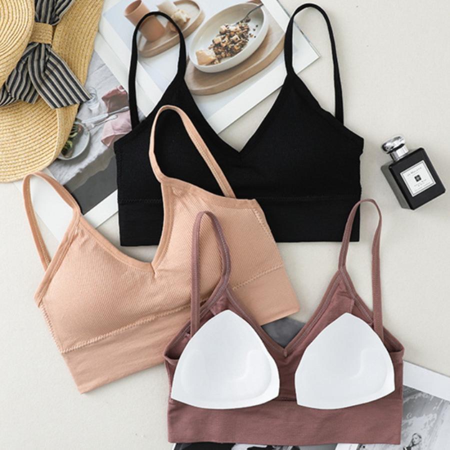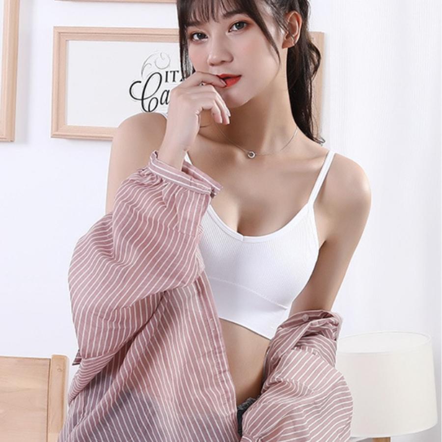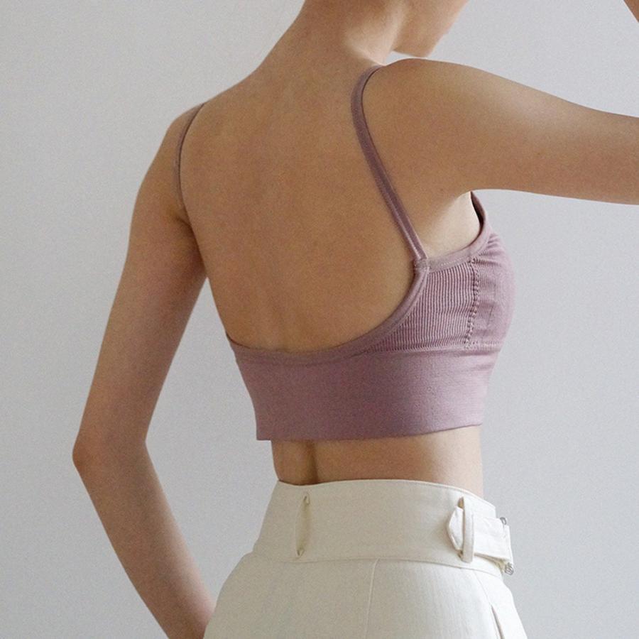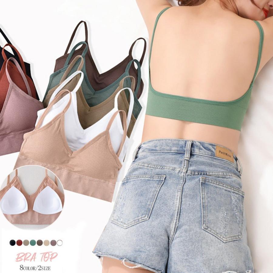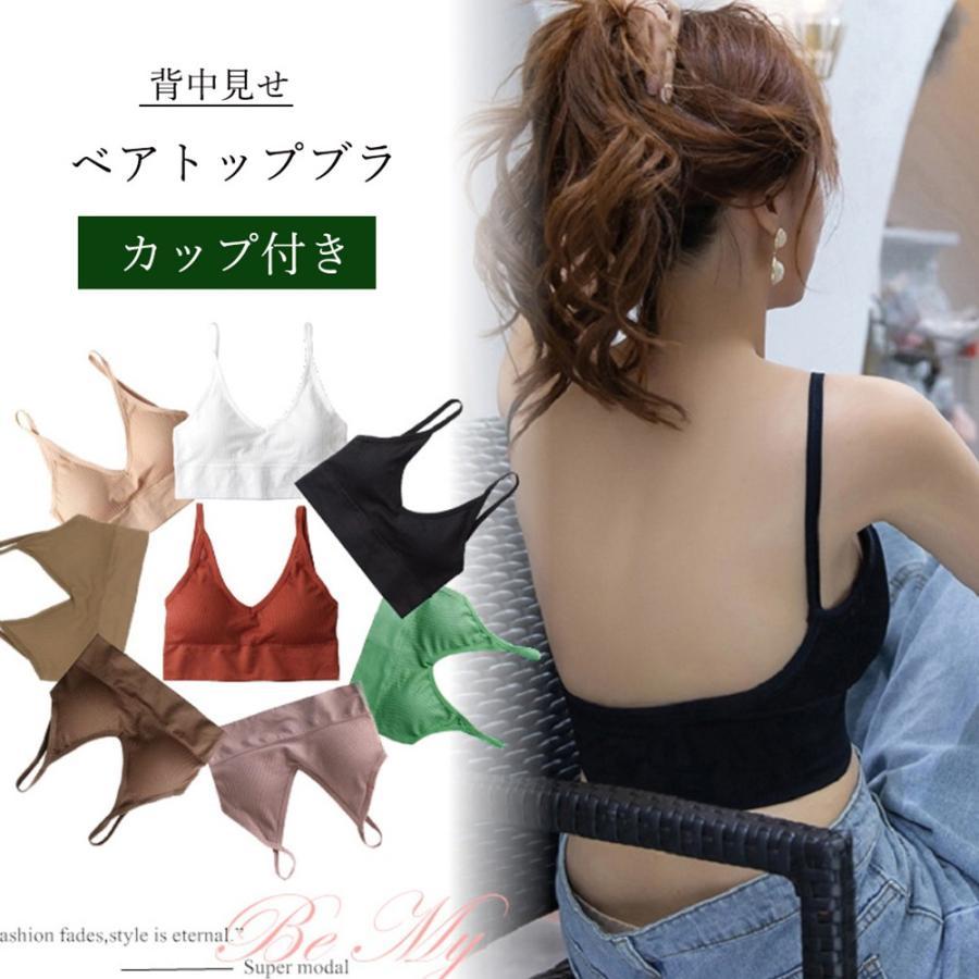 キャミソール | Vネック リブ ショート丈 ベアトップブラ カップ付き おしゃれ ビスチェ インナー キャミ