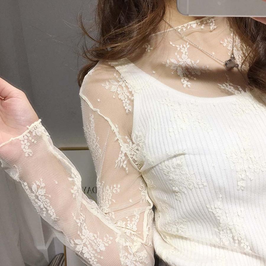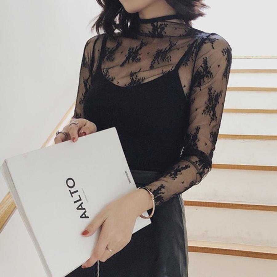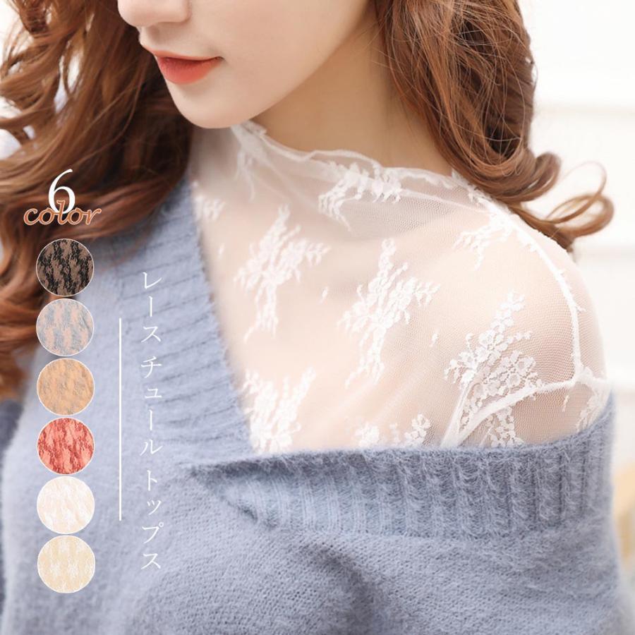 シャツ・ブラウス | トップス レディース チュール ハイネック 長袖 レース レースインナー トップス シースルー