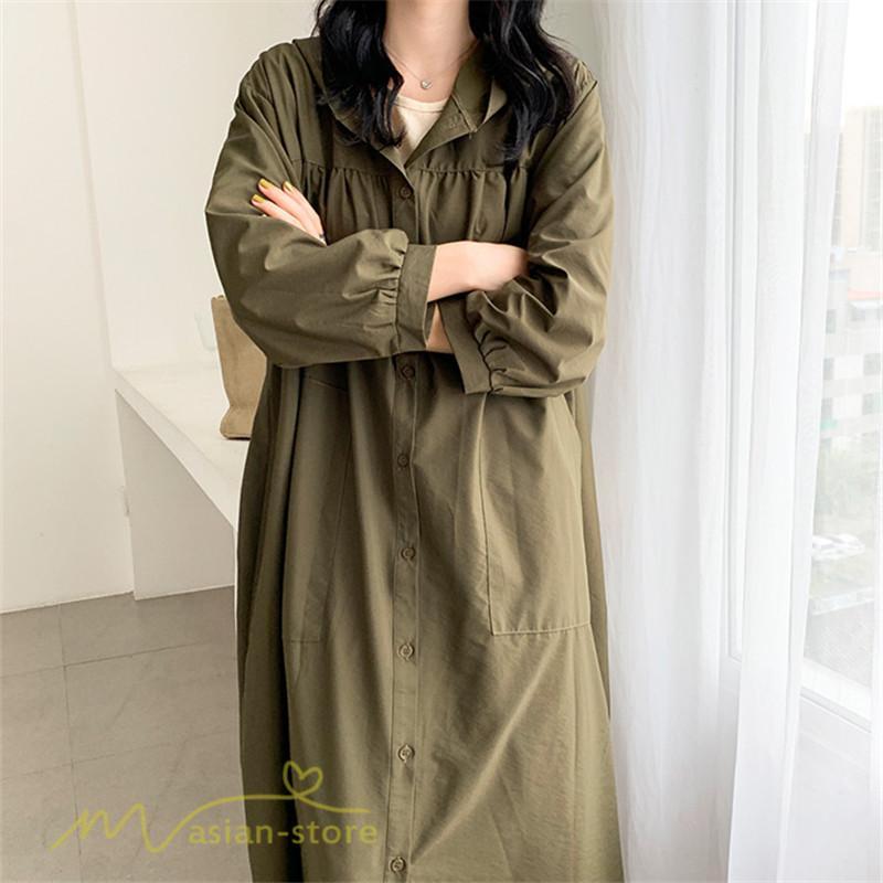 シャツワンピース レディース 長袖 きれいめ カジュアル ゆったり 着痩せ 韓国風 お出かけ