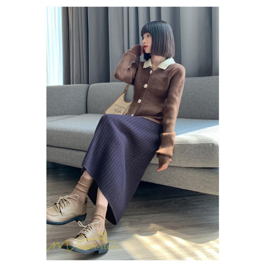 秋 冬 コーデ 2022新作 ニット カジュアルスカート Aライン きれいめ おしゃれ 上品 ファッション シンプル