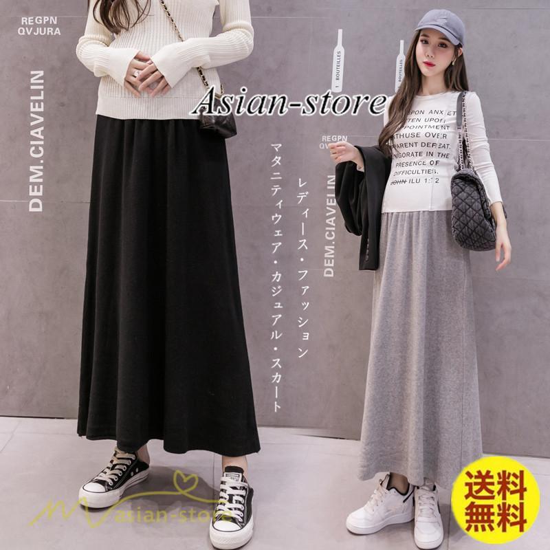 マタニティスカート 妊婦スカート ロング丈スカート 産前産後 マタニティウエア マタニティ用 ハイウエスト